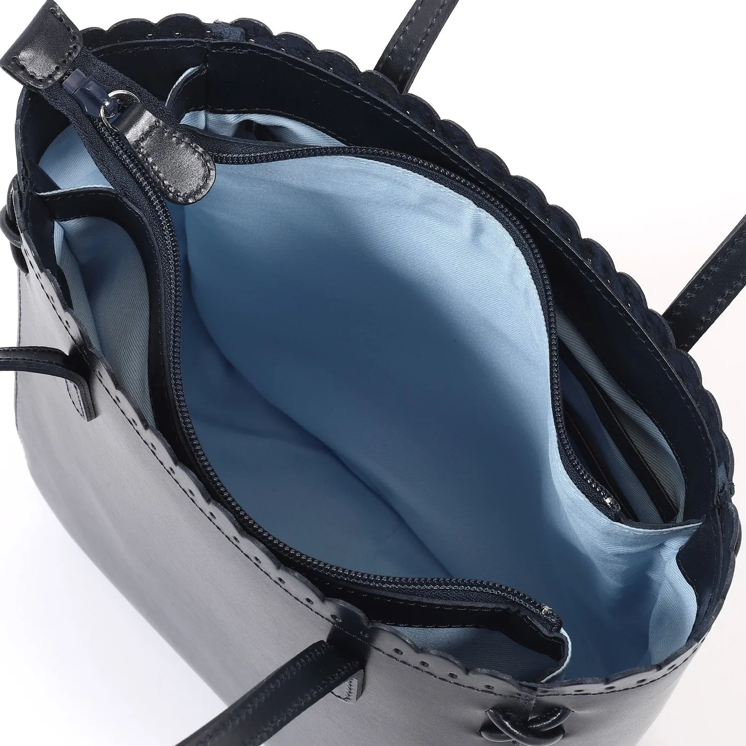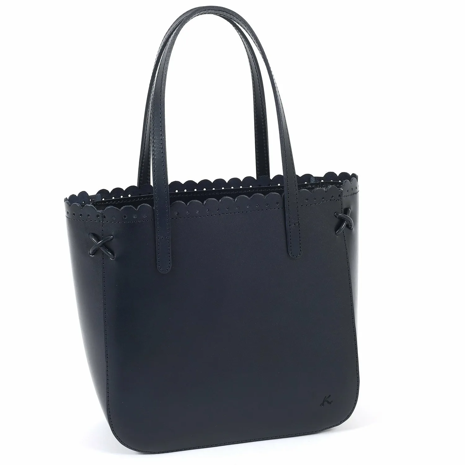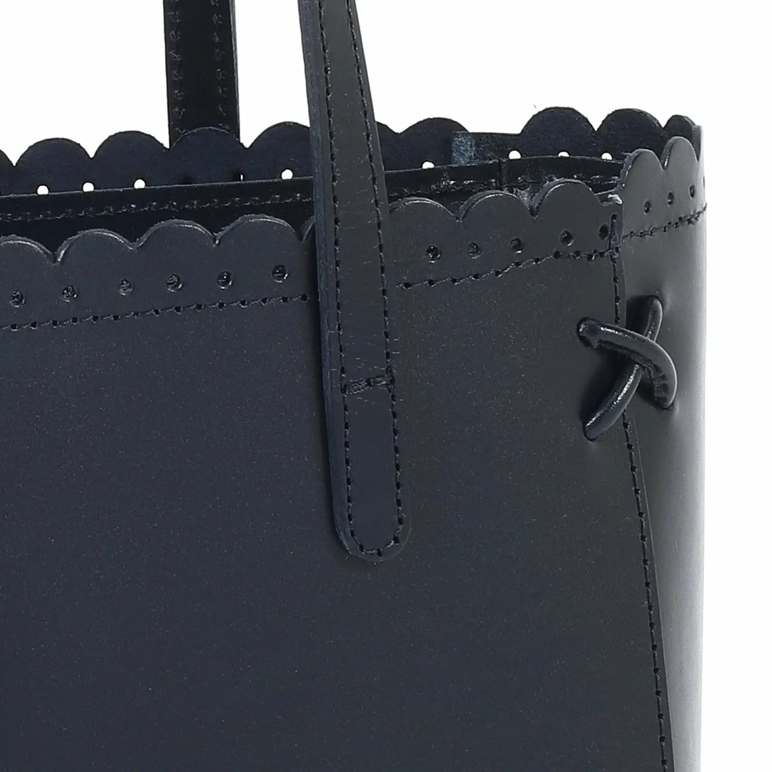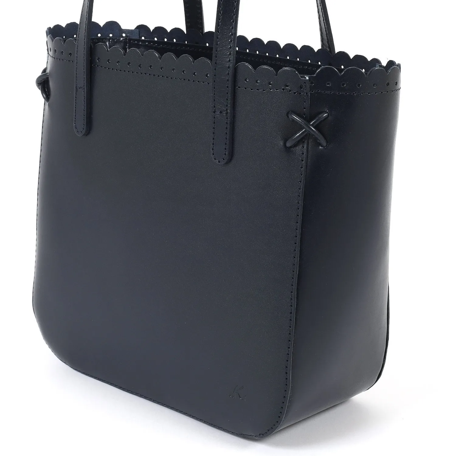 Эта сумочка отличается изящным фестончатым срезом на отверстии, создающим утонченный вид. Углы украшены тонкой декоративной крестообразной строчкой, а тонкие ремешки придают ей элегантный завершающий штрих. Гладкая коровья кожа с умеренным блеском создает изысканный образ. Она подойдет для самых разных ситуаций, от особых случаев до прогулок.