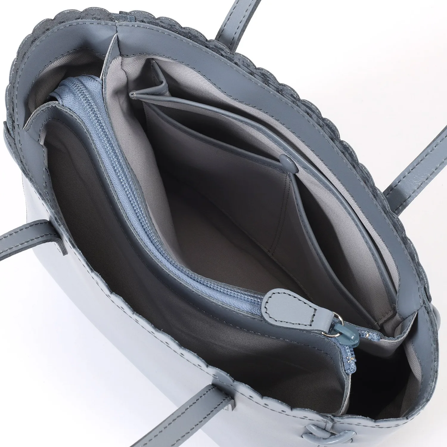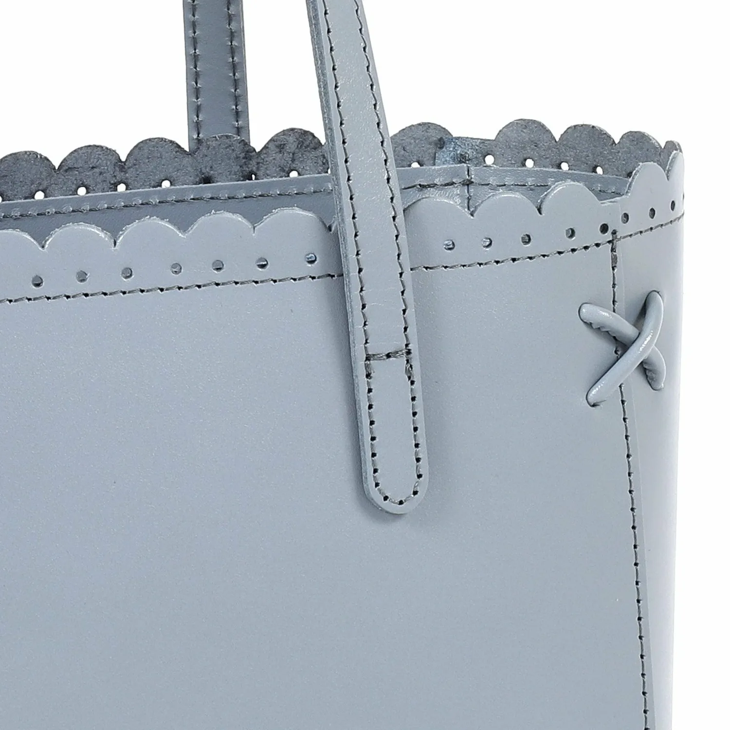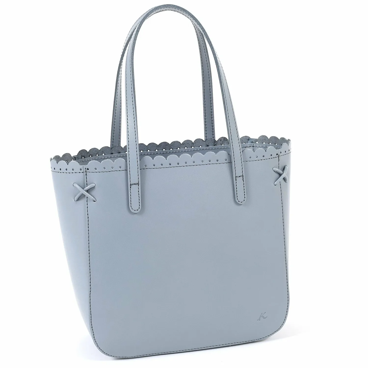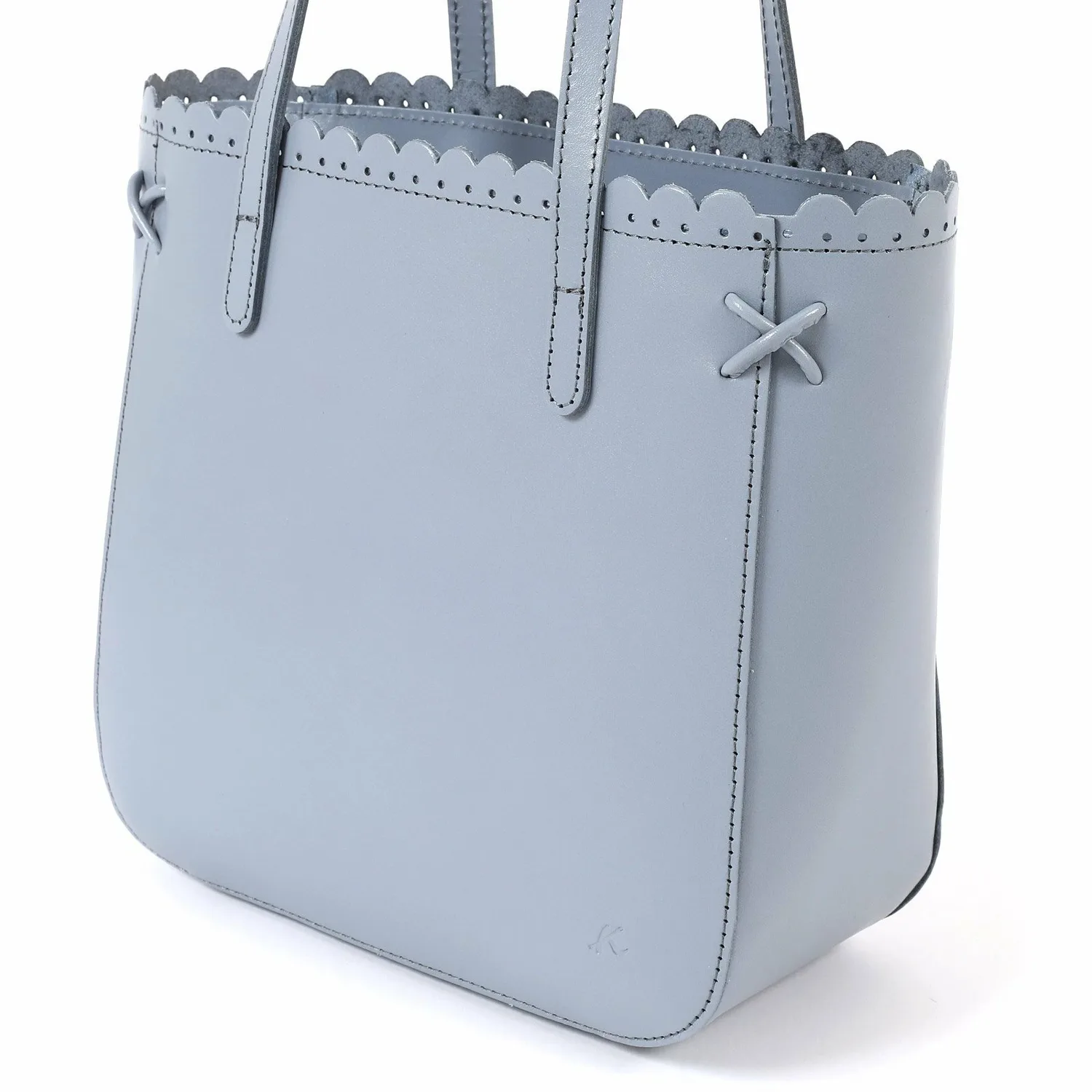Эта сумочка отличается изящным фестончатым срезом на отверстии, создающим утонченный вид. Углы украшены тонкой декоративной крестообразной строчкой, а тонкие ремешки придают ей элегантный завершающий штрих. Гладкая коровья кожа с умеренным блеском создает изысканный образ. Она подойдет для самых разных ситуаций, от особых случаев до прогулок.