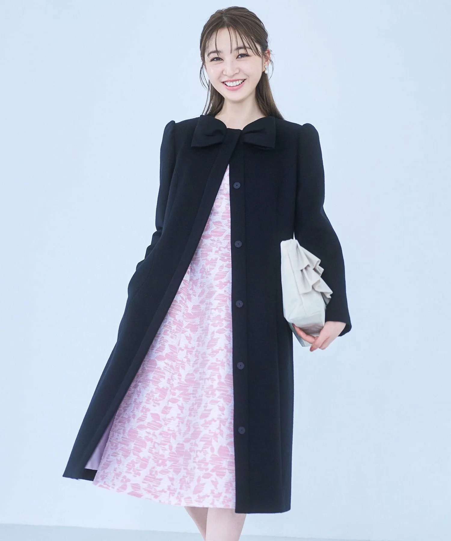 Модные сборки на плечах добавляют стильный штрих, создавая стройный силуэт. [Материал] Материал этого пальто изготовлен из высококачественной шерсти и кашемира с плотной отделкой. Он отлично сохраняет тепло. Также обладает элегантным блеском и высокой ветрозащитой.