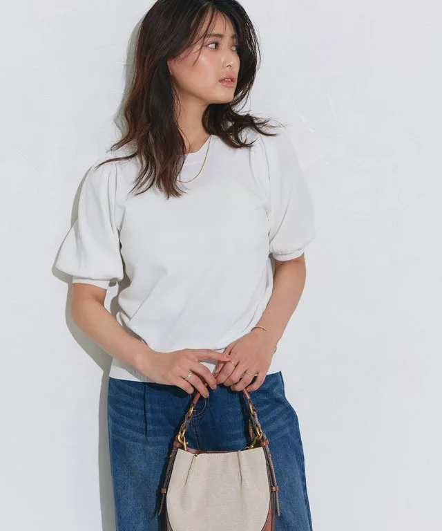Трикотажное изделие с пышными рукавами, приятное на ощупь, обладает привлекательным женственным силуэтом.