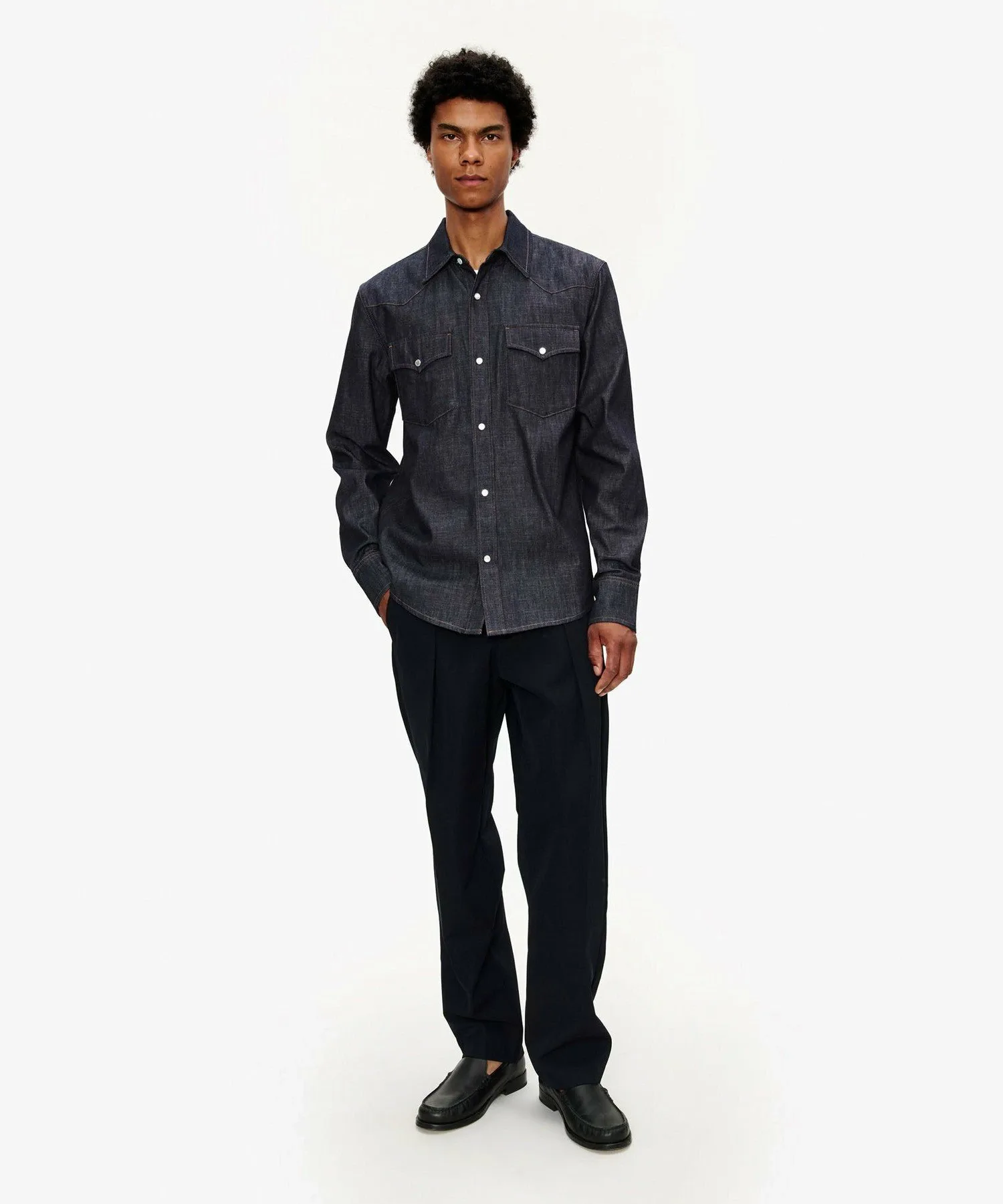 *Два заостренных накладных кармана с клапанами и застежкой на пуговицы на груди.