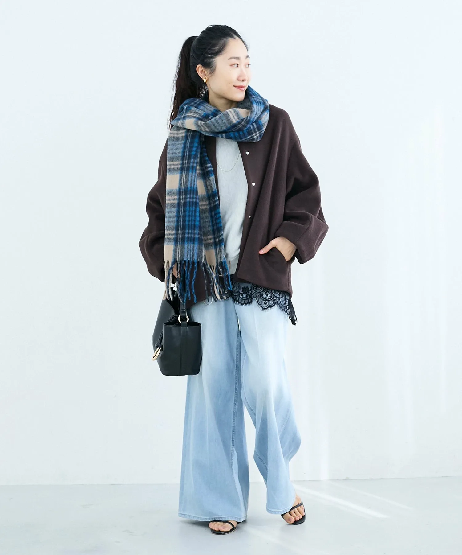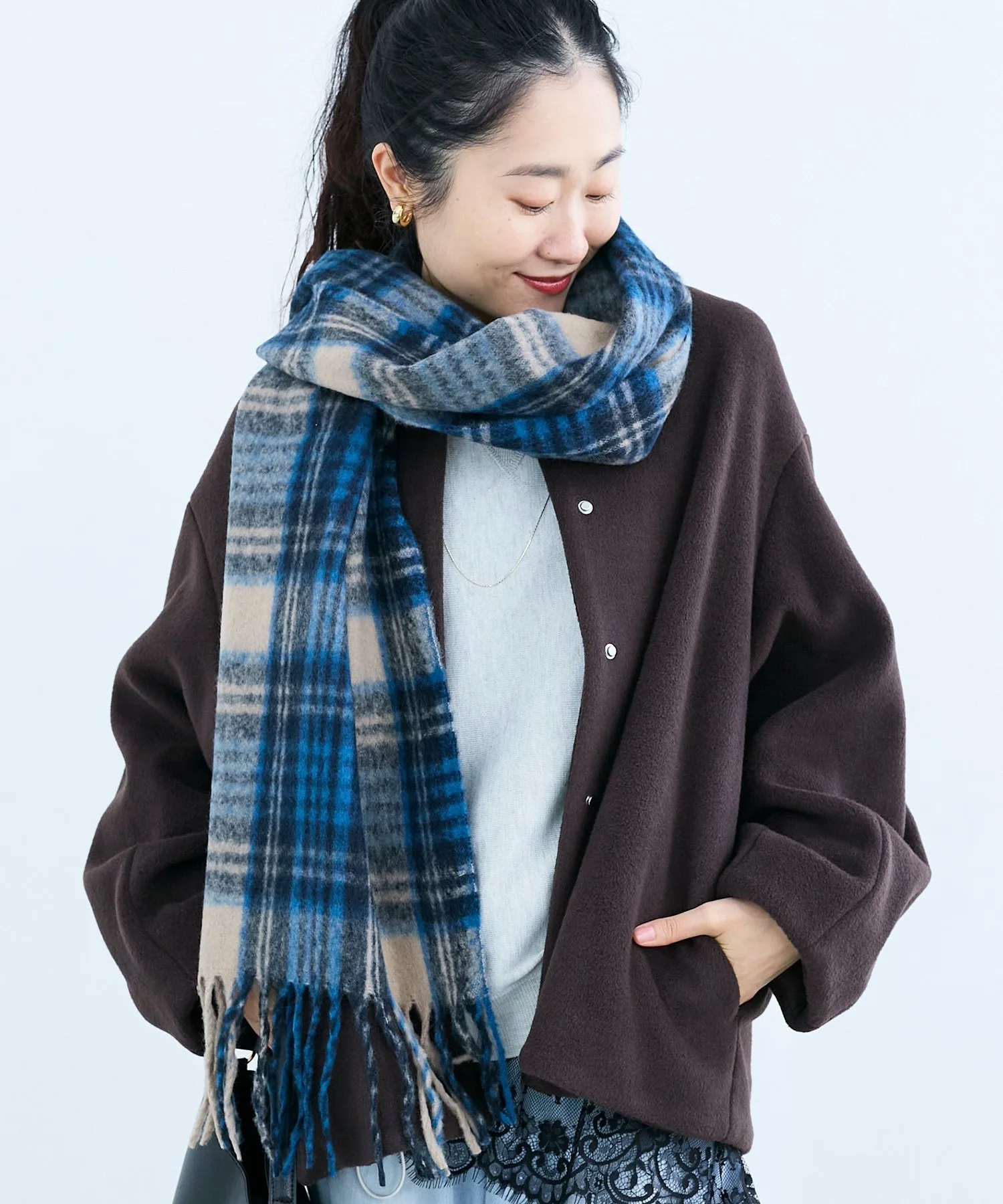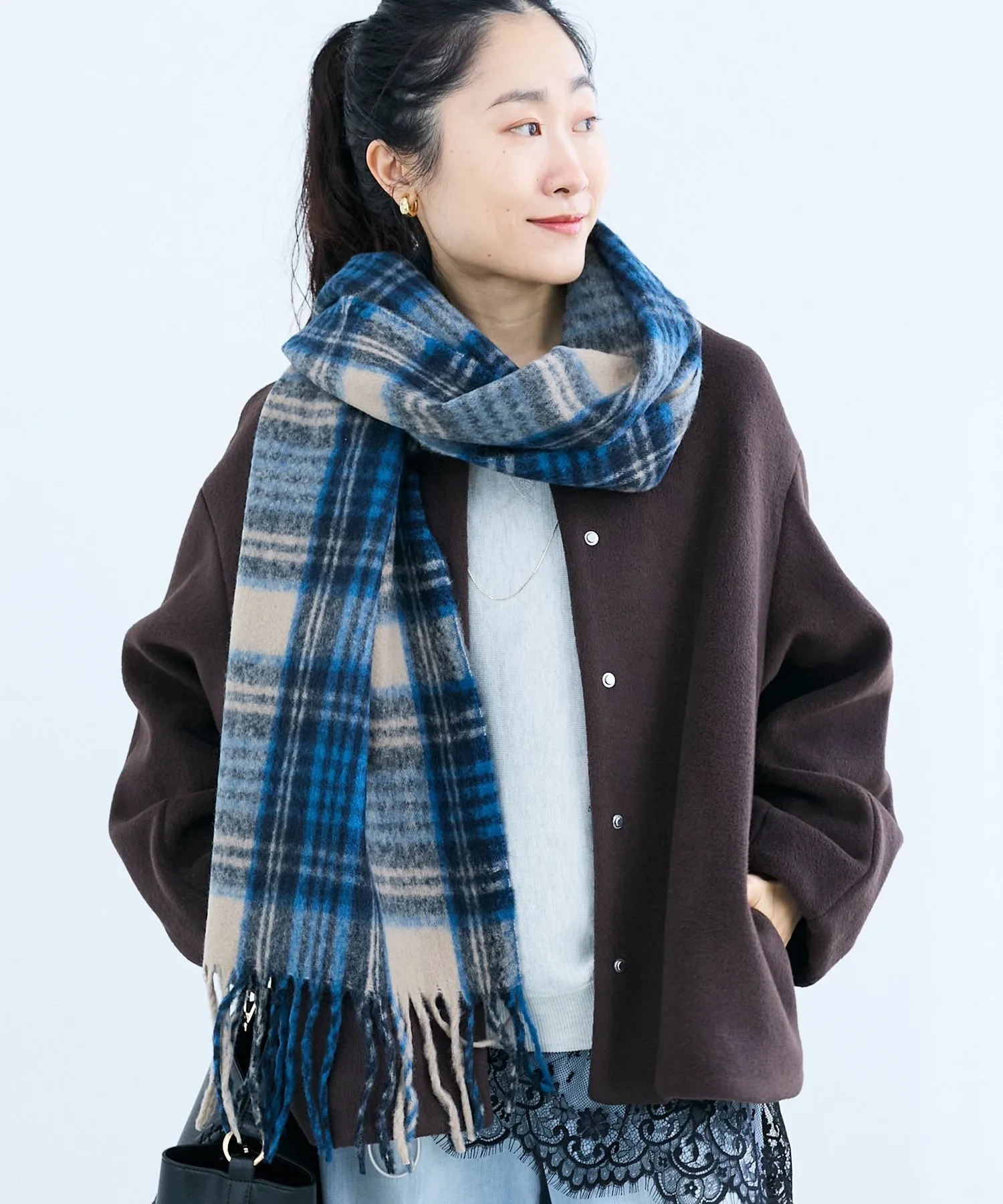 Сдержанный клетчатый узор элегантно вписывается в ваш образ, делая шарф универсальным аксессуаром, который можно носить в самых разных случаях, от повседневной носки до поездок на работу.