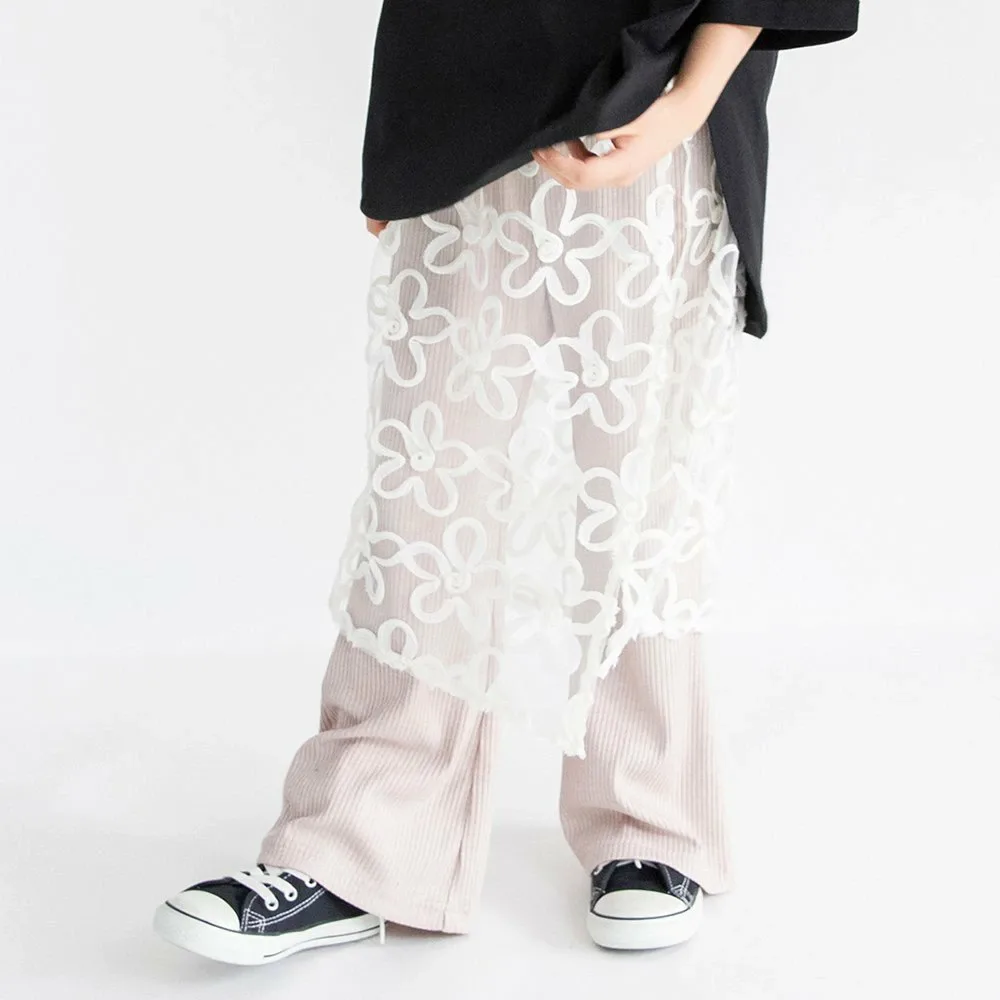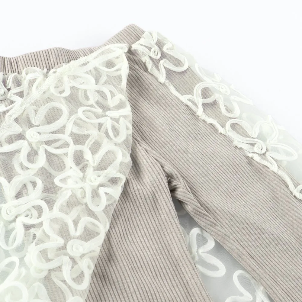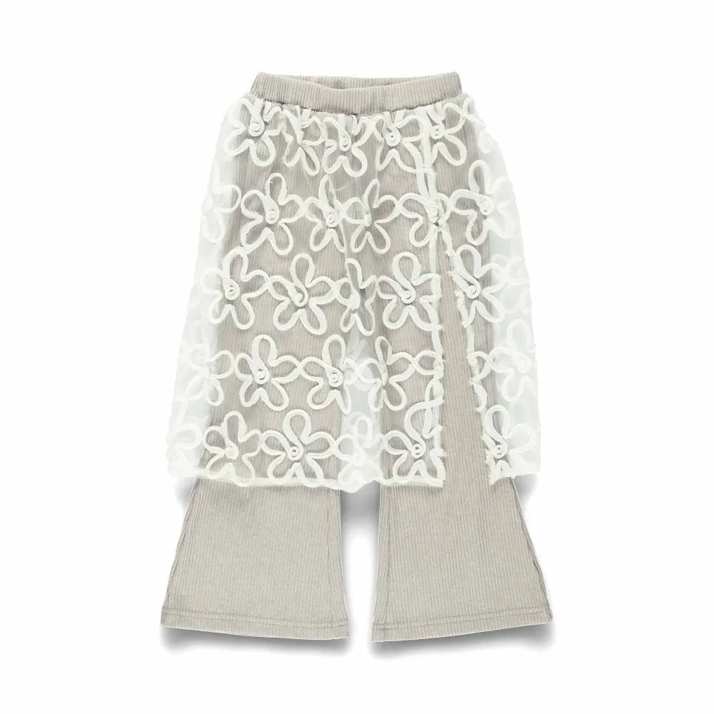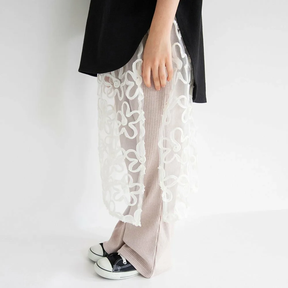 Трехмерная кружевная юбка с вышивкой из шнура, соединенная с ребристыми брюками,