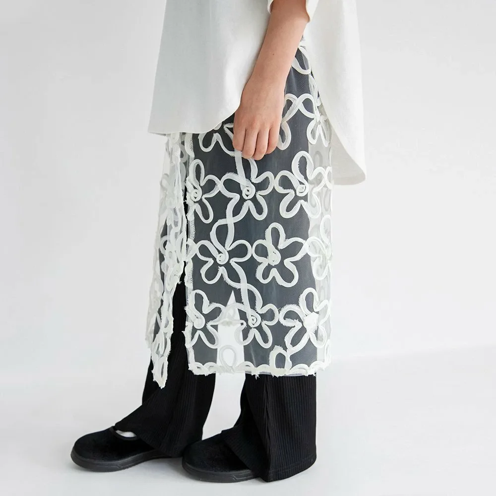 Трехмерная кружевная юбка с вышивкой из шнура, соединенная с ребристыми брюками,