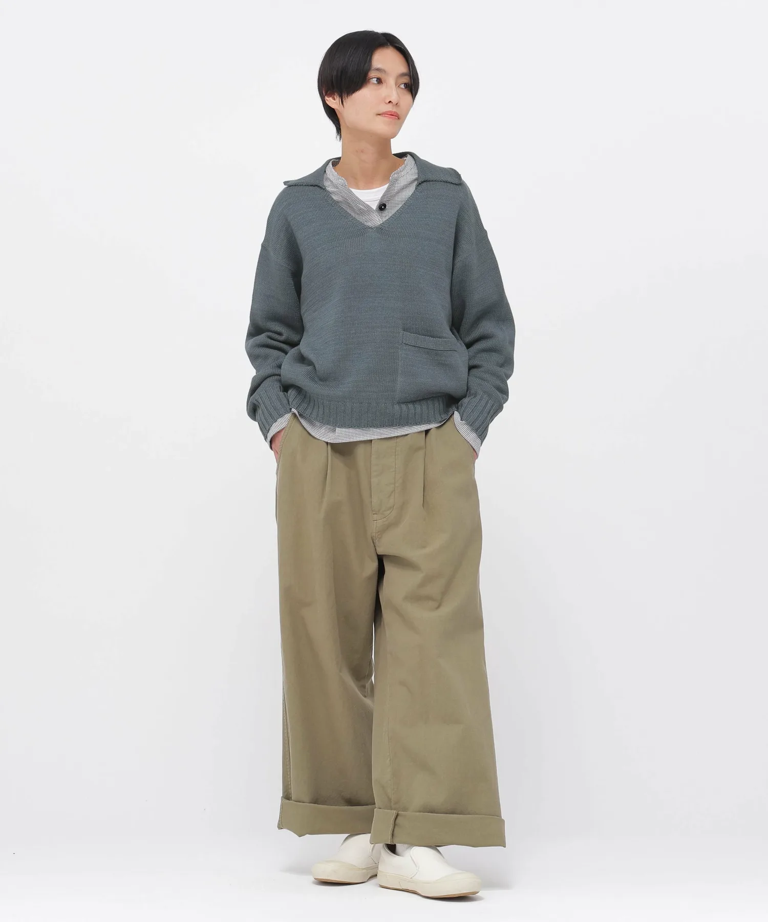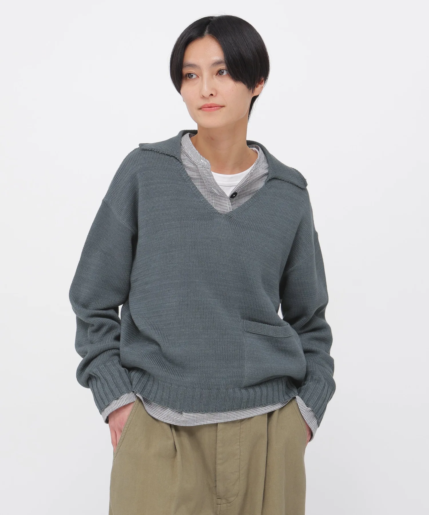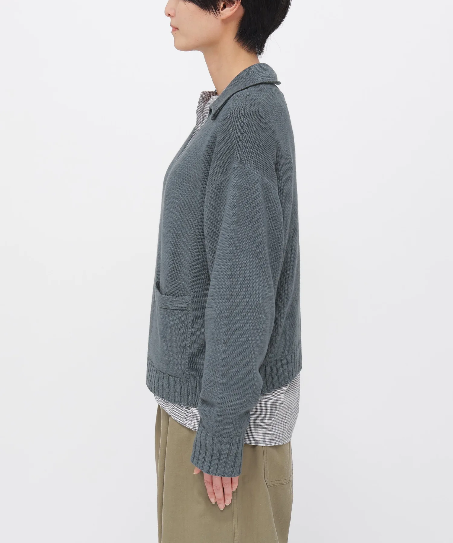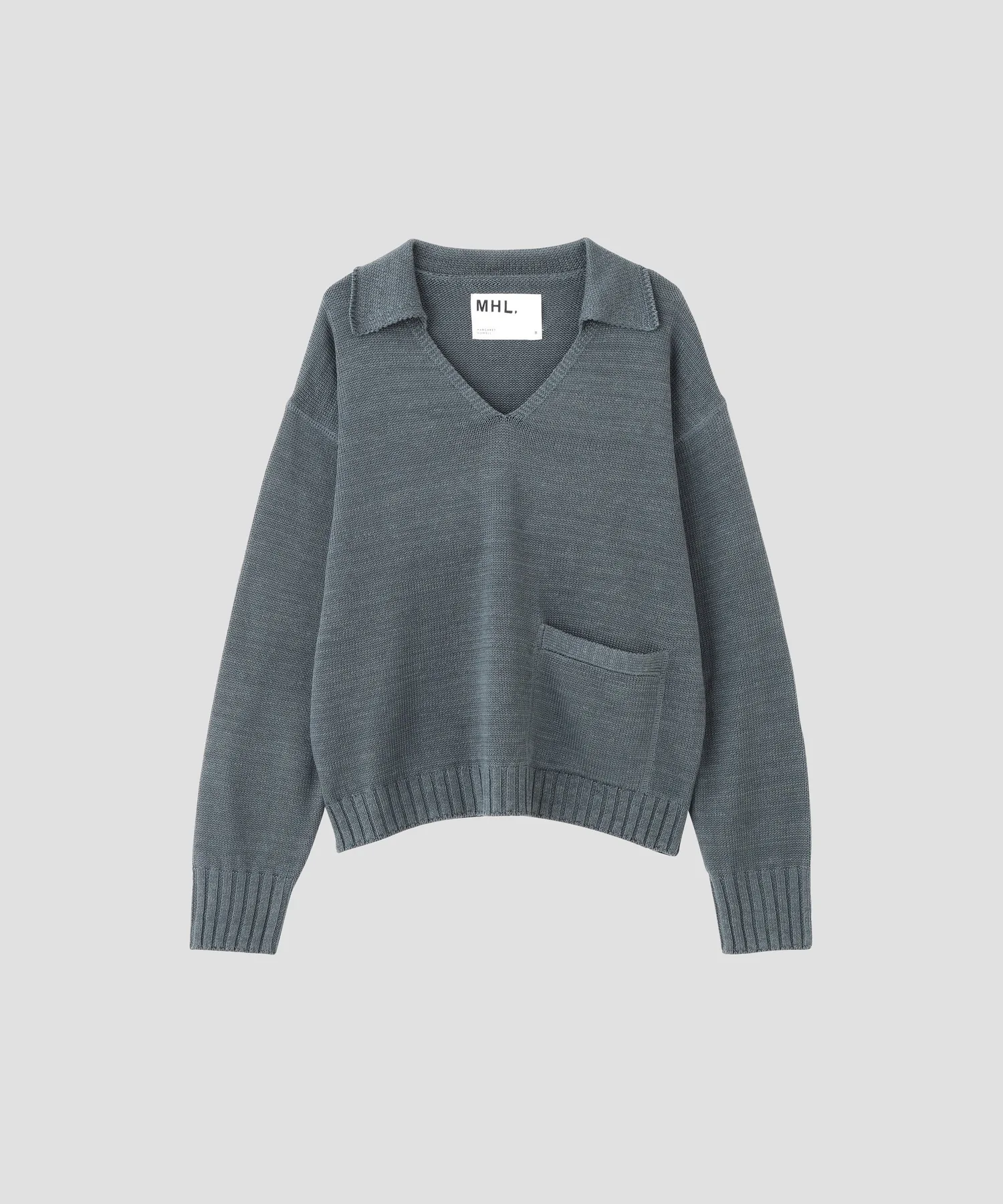 Трикотаж с воротником и дизайном «скиппер». Однослойный вязаный воротник добавляет непринужденности и расслабленности, придавая изделию простой, но запоминающийся вид. Это изделие создает ощущение винтажного трикотажа благодаря текстуре материала.