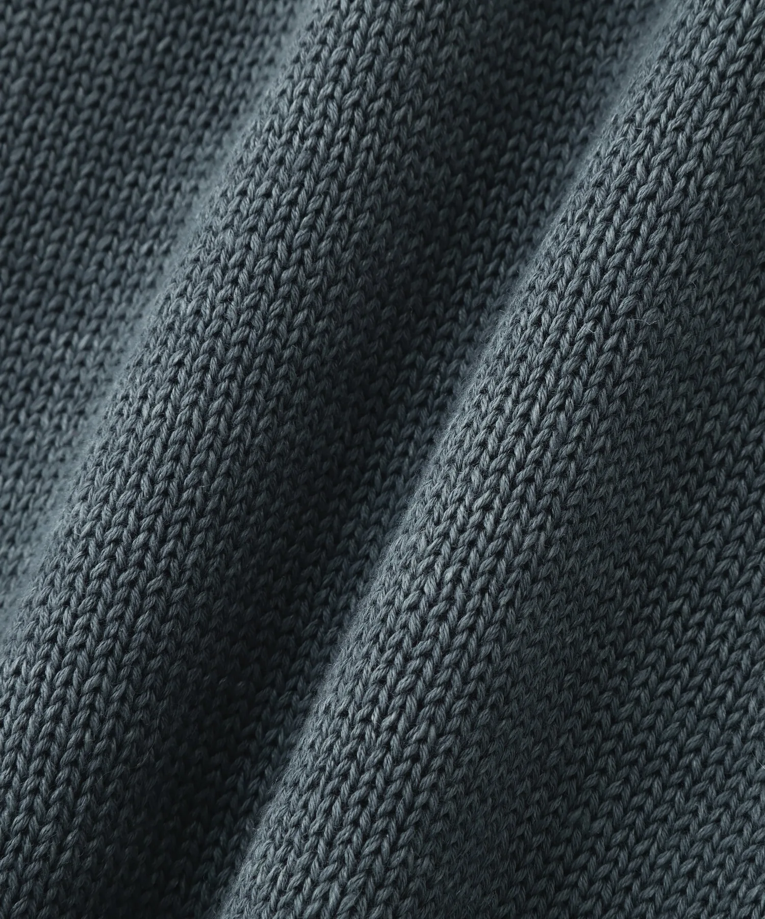 Этот трикотаж имеет глубокий, насыщенный вид, связан из хлопковых и льняных нитей разных оттенков. Тени, создаваемые в вязаном полотне, придают ему винтажный, выцветший вид, создавая характерный нюанс цвета. Материал обладает сбалансированной текстурой, сочетающей умеренную плотность льна с мягкостью хлопка.