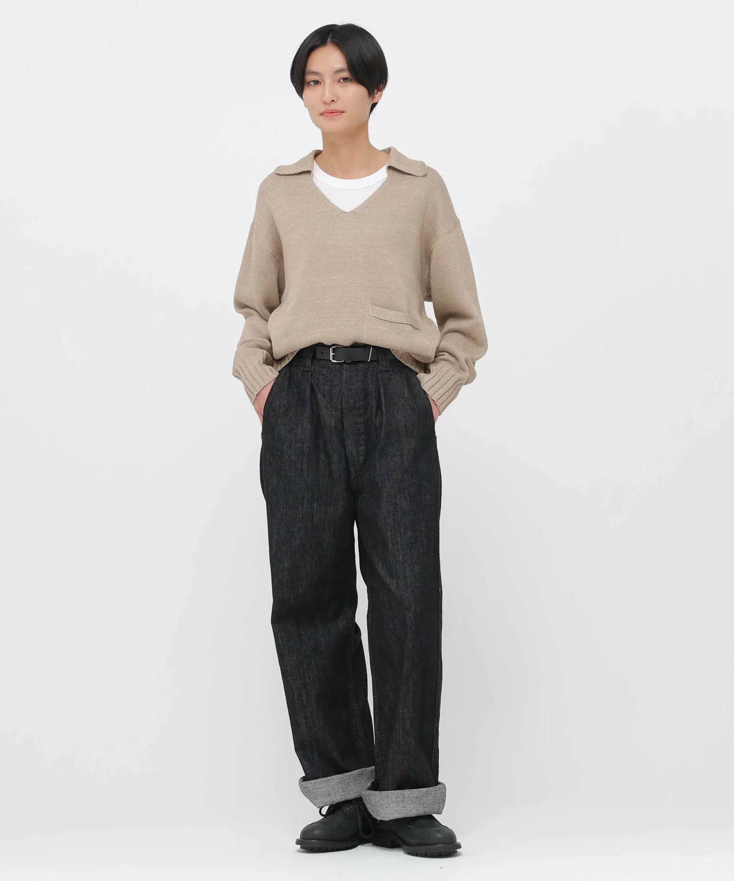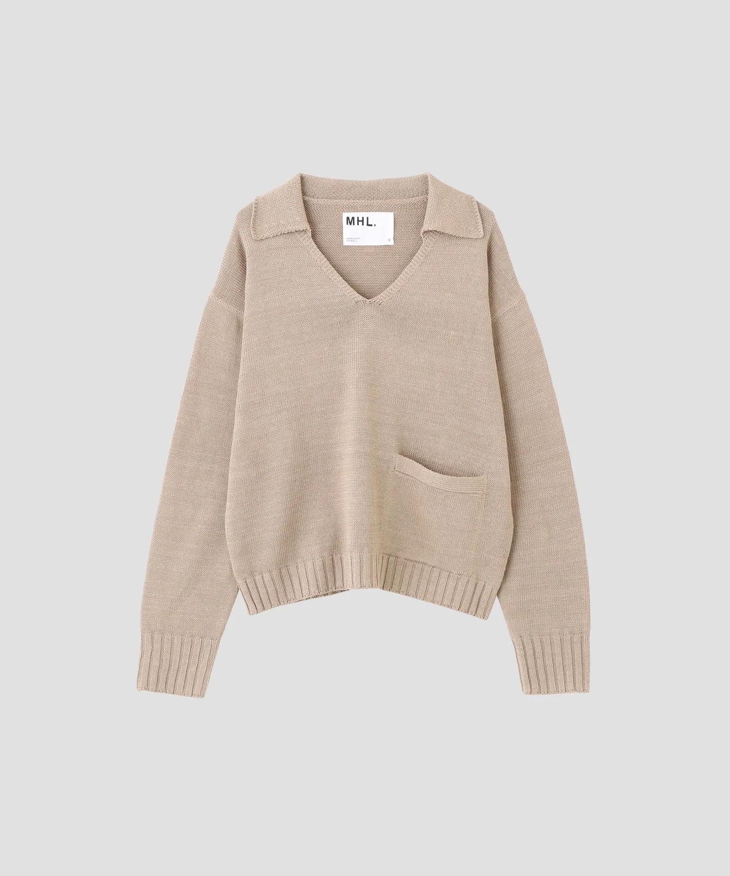 Трикотаж с воротником и дизайном «скиппер». Однослойный вязаный воротник добавляет непринужденности и расслабленности, придавая изделию простой, но запоминающийся вид. Это изделие создает ощущение винтажного трикотажа благодаря текстуре материала.