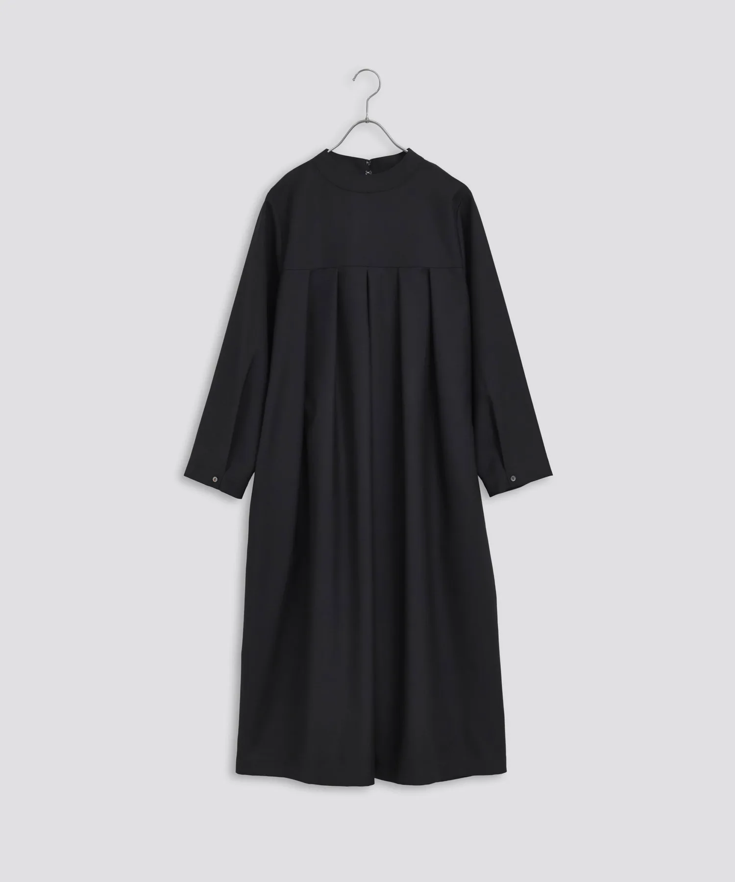 Воротник-стойка придает платью элегантный вид, скрывая шею.