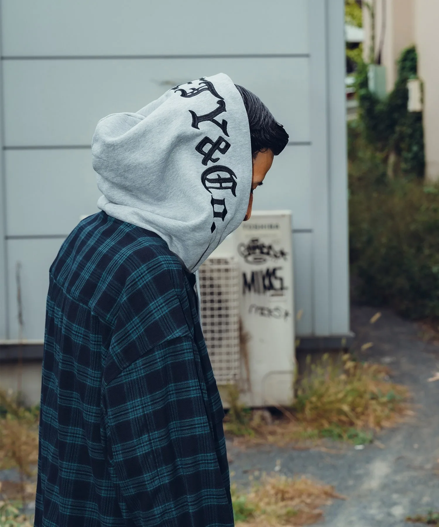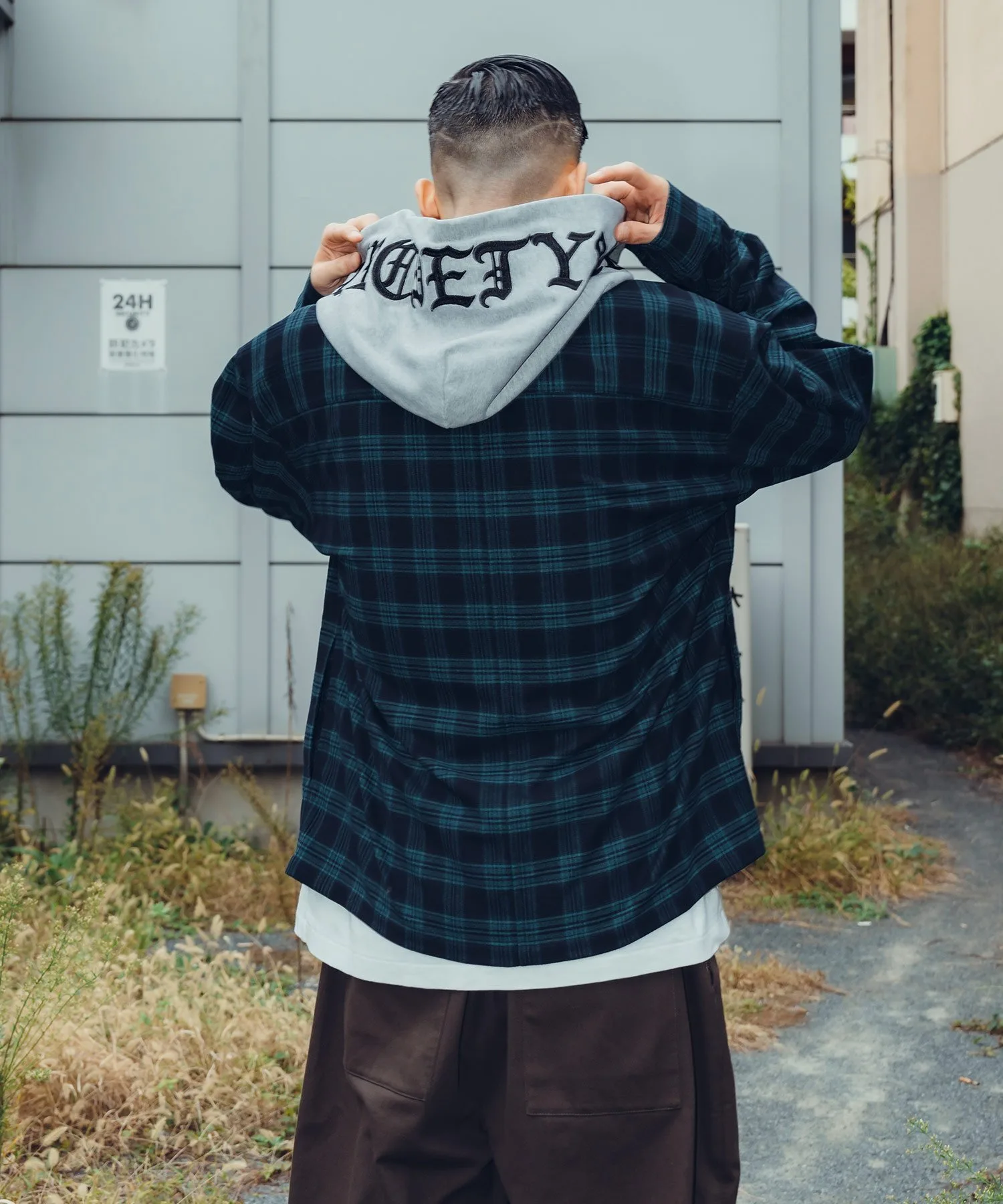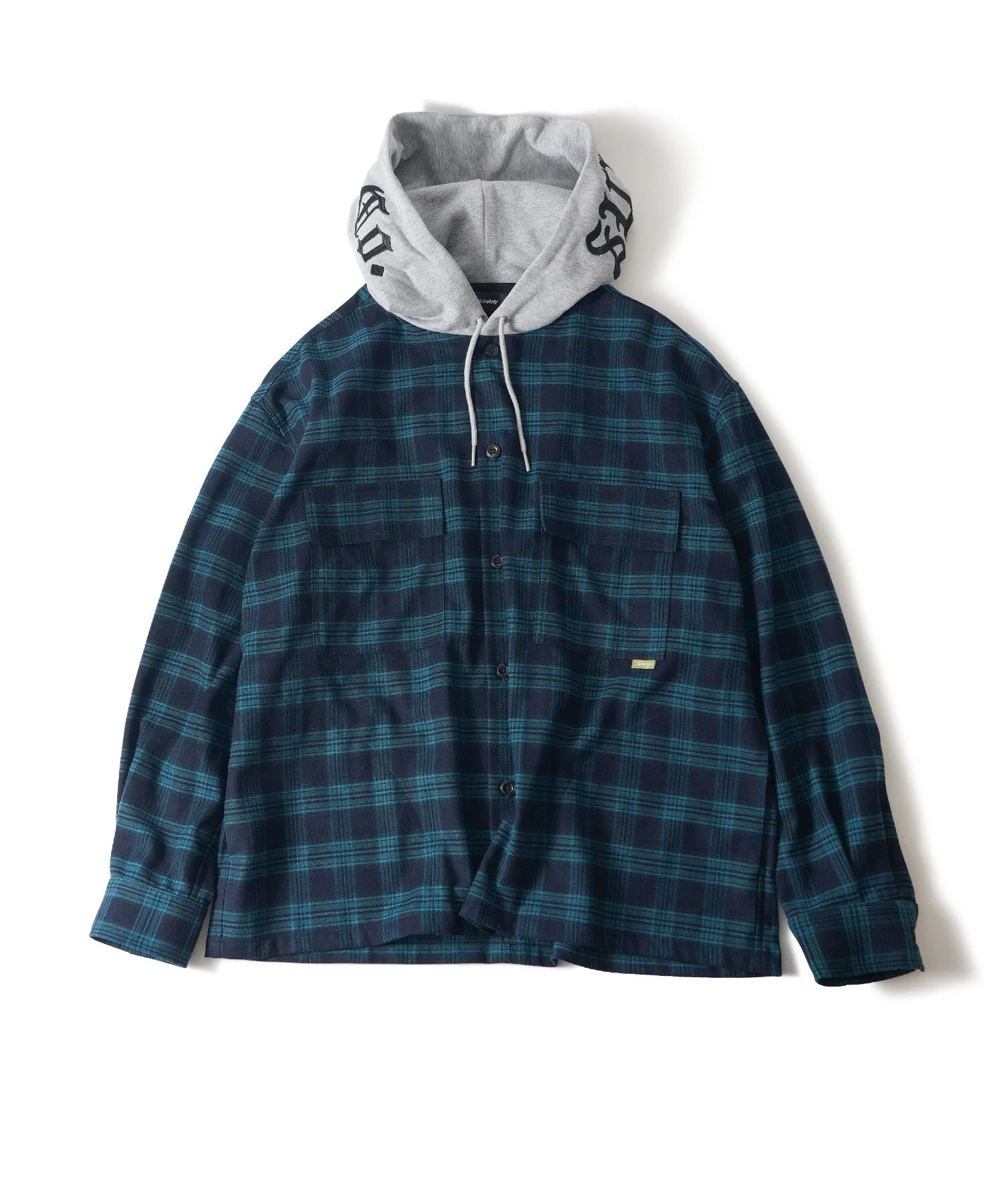 Клетчатая куртка с капюшоном, созданная по образцу военной формы.
