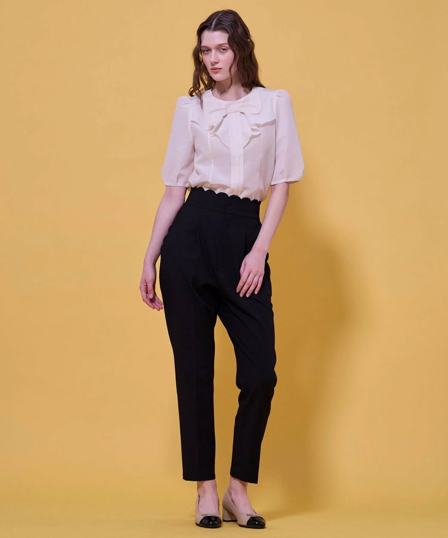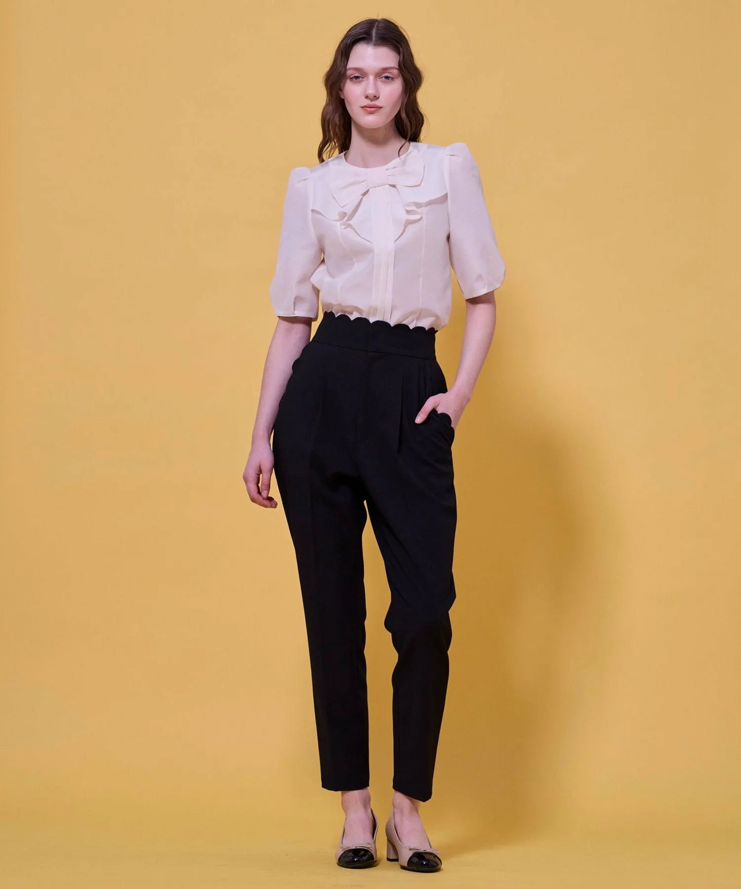 Женственная и гламурная блузка с большой, привлекательной лентой. Изготовленная из плотной органзы, лента и передняя складка создают трехмерный эффект, придавая изделию элегантный вид.