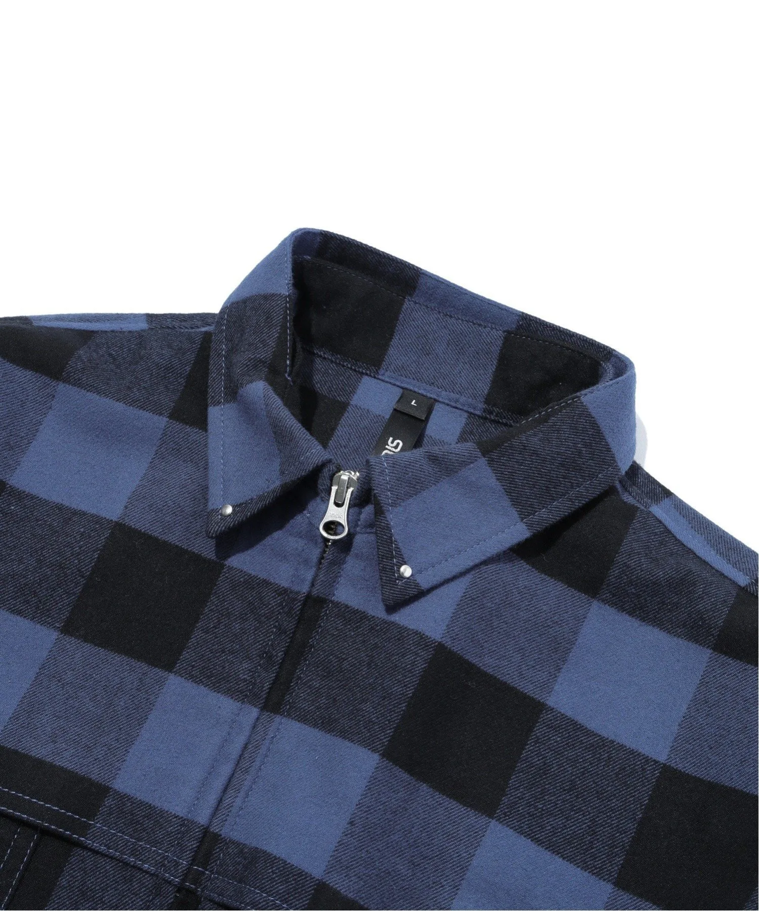 ・Рубашка в клетку с оригинальным дизайном воротника и заклепками