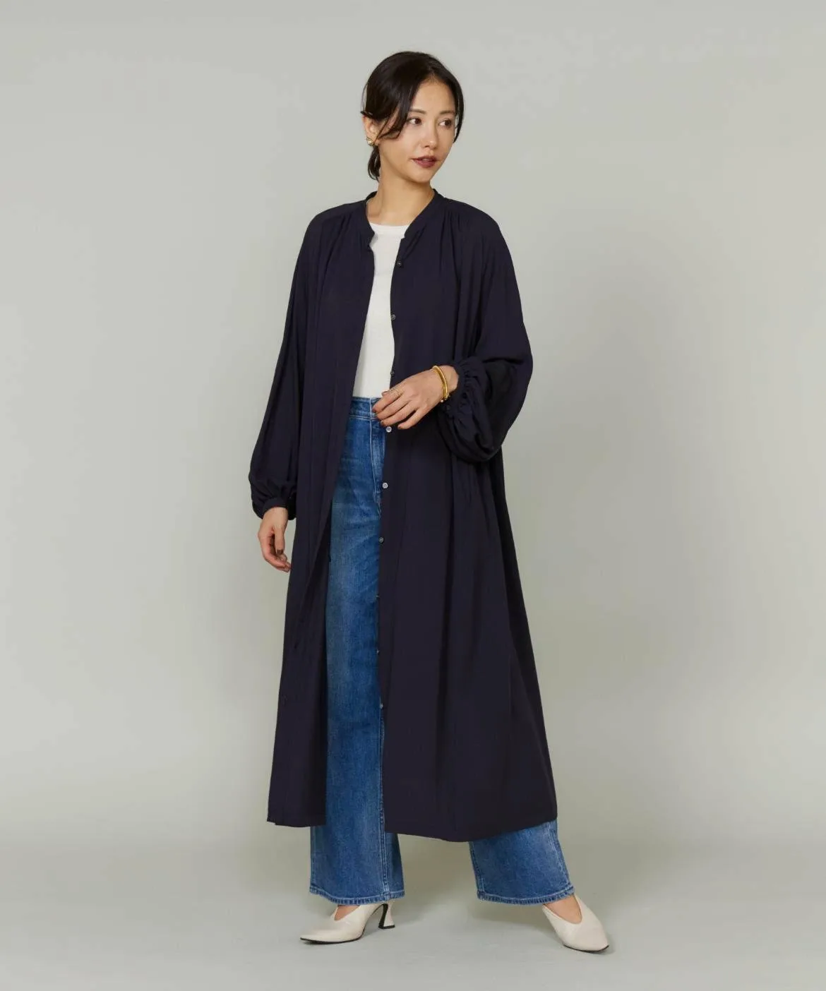Это платье-рубашка украшено сборками. Боковые сборки, выполненные с использованием линий панелей, добавляют акцент. Передняя часть имеет обтекаемый силуэт с изящным воротником-стойкой и дизайнерской застежкой-молнией, а длинная длина придает современный вид. Это платье стильное и одновременно простое в ношении. Изготовленное из струящейся ткани, оно обеспечивает свободный крой, несмотря на свой объем. Сочетайте его с брюками для более легкого образа.