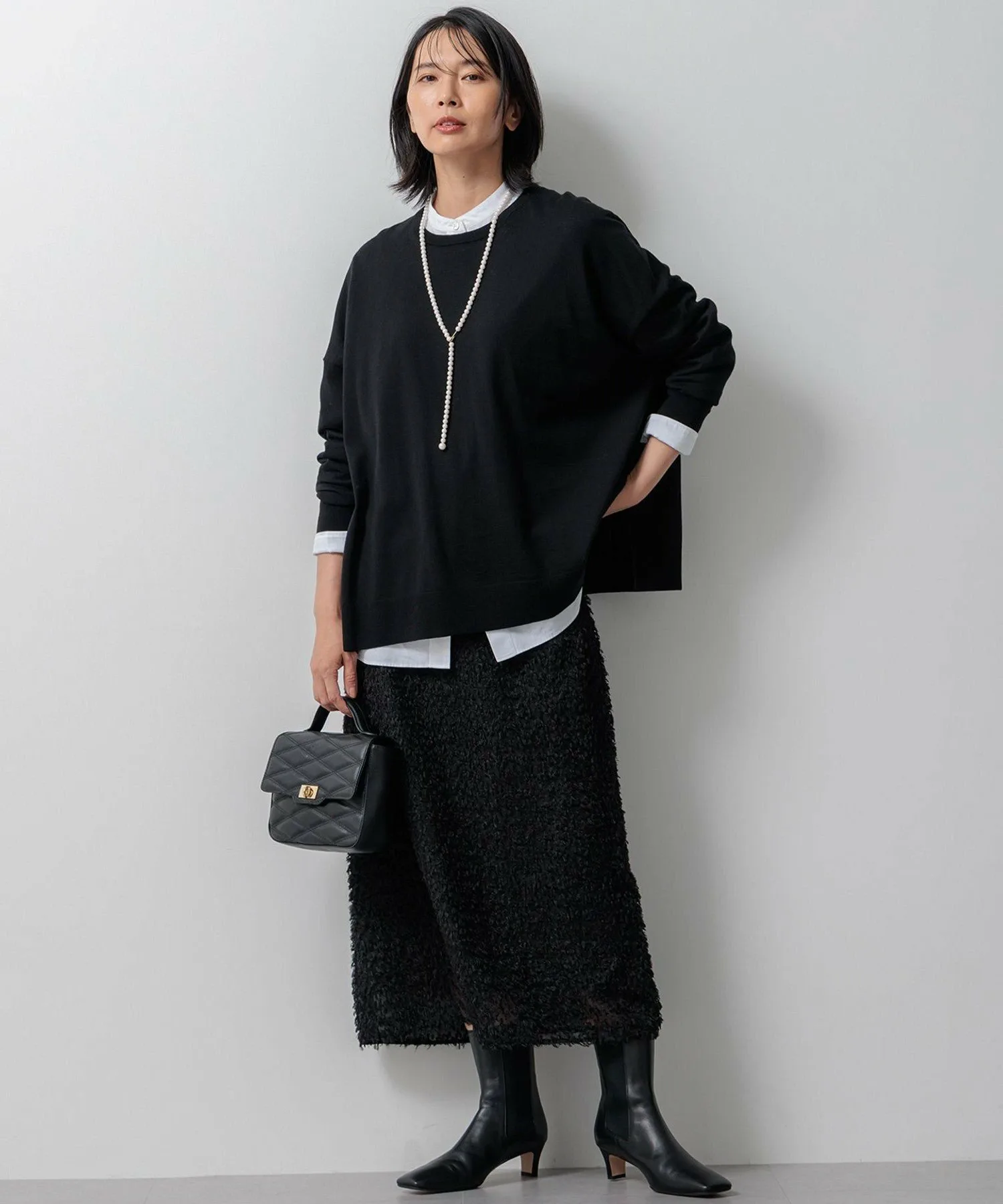 Пуловер из трикотажа широкого кроя, классический стиль 23ku. Широкий силуэт выделяет его, а умеренная драпировка придаёт ему чистый, элегантный вид, сохраняя при этом аккуратность и опрятность. Удобная вещь для повседневной взрослой моды. Универсальный дизайн позволяет носить его как самостоятельно, так и в сочетании с рубашкой или блузкой для создания многослойного образа. Он имеет оптимальную толщину, поэтому его можно носить под верхней одеждой, не создавая ощущения громоздкости. Комфортная текстура делает его идеальным для повседневной носки. Однотонная версия имеет полоску на спине. Доступна в девяти цветах: сплошной черный (#005), красно-оранжевый (#020), синий (#070) и светло-зеленый (#062), а также двухцветный бежевый и кремовый (#233) и серый и темно-синий (#204). Три дополнительных цвета, эксклюзивные для интернет-магазина, имеют полосатую расцветку: бежевый и черный (#133), темно-синий и яблочный (#175) и черный и кремовый (#105). Материал: Эта всемирно известная камвольная пряжа производится по специальной технологии, разработанной итальянской компанией Zegna Baruffa Lane Borgosia. Изготовленная из тончайшей австралийской шерсти, она устойчива к усадке, что обеспечивает мягкую, нежную текстуру, сохраняя при этом блеск, пышность и эластичность. Она также обработана для предотвращения образования катышков (образование свободных нитей, похожих на комочки ворса). Несмотря на то, что она изготовлена из 100% шерсти, ее можно стирать вручную, что делает ее отличным вариантом для домашнего ухода.