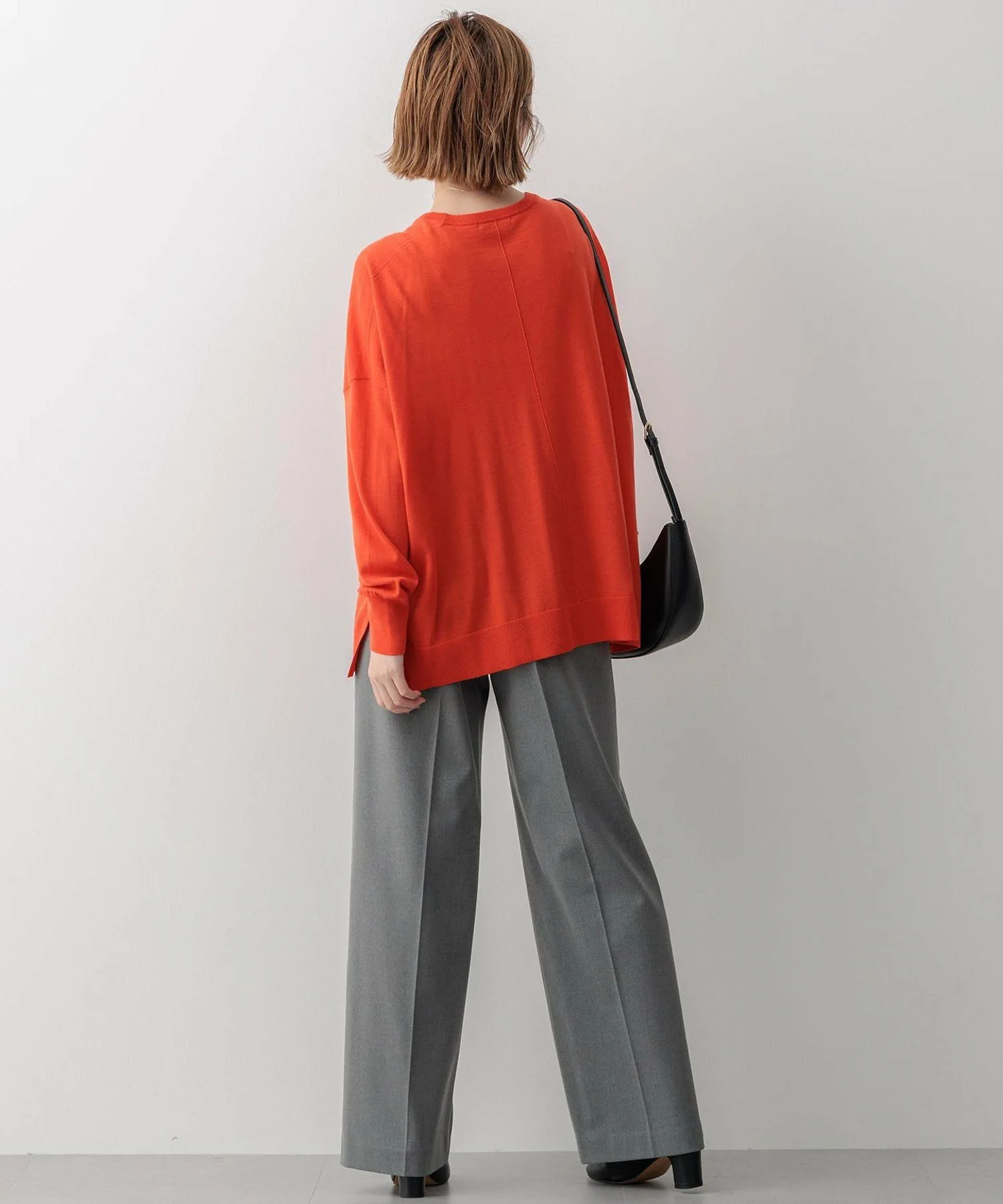Пуловер из трикотажа широкого кроя, классический стиль 23ku. Широкий силуэт выделяет его, а умеренная драпировка придаёт ему чистый, элегантный вид, сохраняя при этом аккуратность и опрятность. Удобная вещь для повседневной взрослой моды. Универсальный дизайн позволяет носить его как самостоятельно, так и в сочетании с рубашкой или блузкой для создания многослойного образа. Он имеет оптимальную толщину, поэтому его можно носить под верхней одеждой, не создавая ощущения громоздкости. Комфортная текстура делает его идеальным для повседневной носки. Однотонная версия имеет полоску на спине. Доступна в девяти цветах: сплошной черный (#005), красно-оранжевый (#020), синий (#070) и светло-зеленый (#062), а также двухцветный бежевый и кремовый (#233) и серый и темно-синий (#204). Три дополнительных цвета, эксклюзивные для интернет-магазина, имеют полосатую расцветку: бежевый и черный (#133), темно-синий и яблочный (#175) и черный и кремовый (#105). Материал: Эта всемирно известная камвольная пряжа производится по специальной технологии, разработанной итальянской компанией Zegna Baruffa Lane Borgosia. Изготовленная из тончайшей австралийской шерсти, она устойчива к усадке, что обеспечивает мягкую, нежную текстуру, сохраняя при этом блеск, пышность и эластичность. Она также обработана для предотвращения образования катышков (образование свободных нитей, похожих на комочки ворса). Несмотря на то, что она изготовлена из 100% шерсти, ее можно стирать вручную, что делает ее отличным вариантом для домашнего ухода.