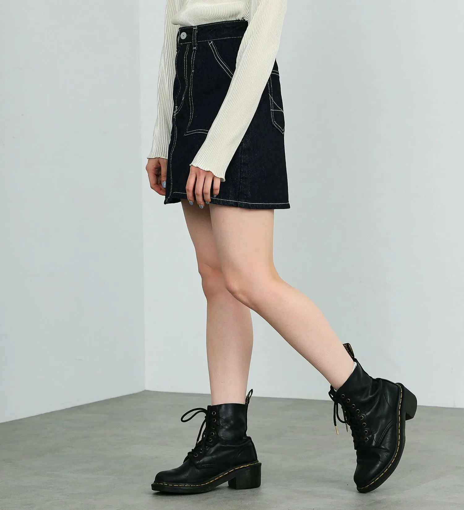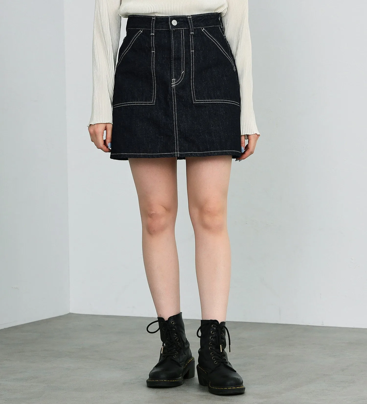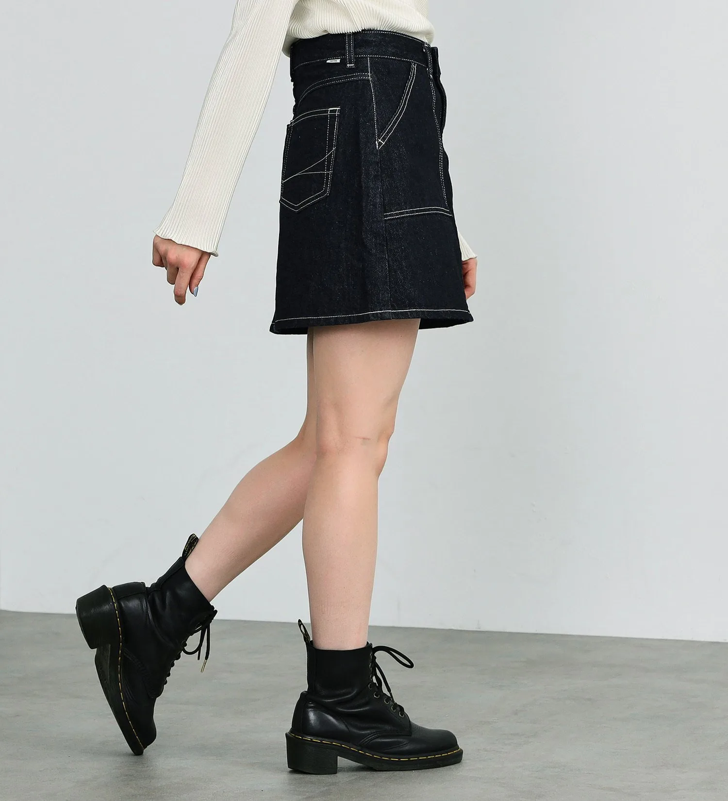 Джинсовая юбка-брюки с внутренними джинсовыми штанами. Внешний слой изготовлен из 100% хлопкового денима, который отлично выглядит после обработки, а внутренний деним — из высокоэластичного денима. Внутренний деним плотно прилегает, поэтому вы можете носить мини-юбку с уверенностью, не беспокоясь о том, что будет видно ваше нижнее белье.