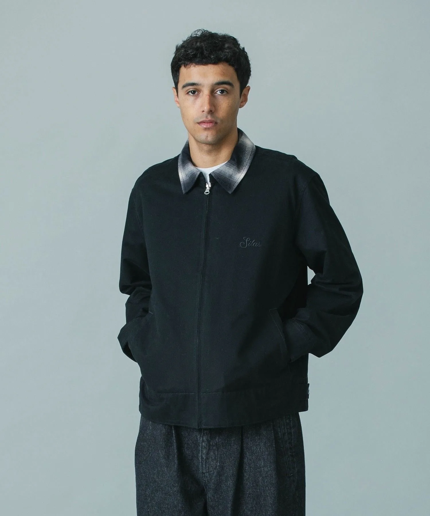 ・Куртка с клетчатым воротником и застежками на манжетах