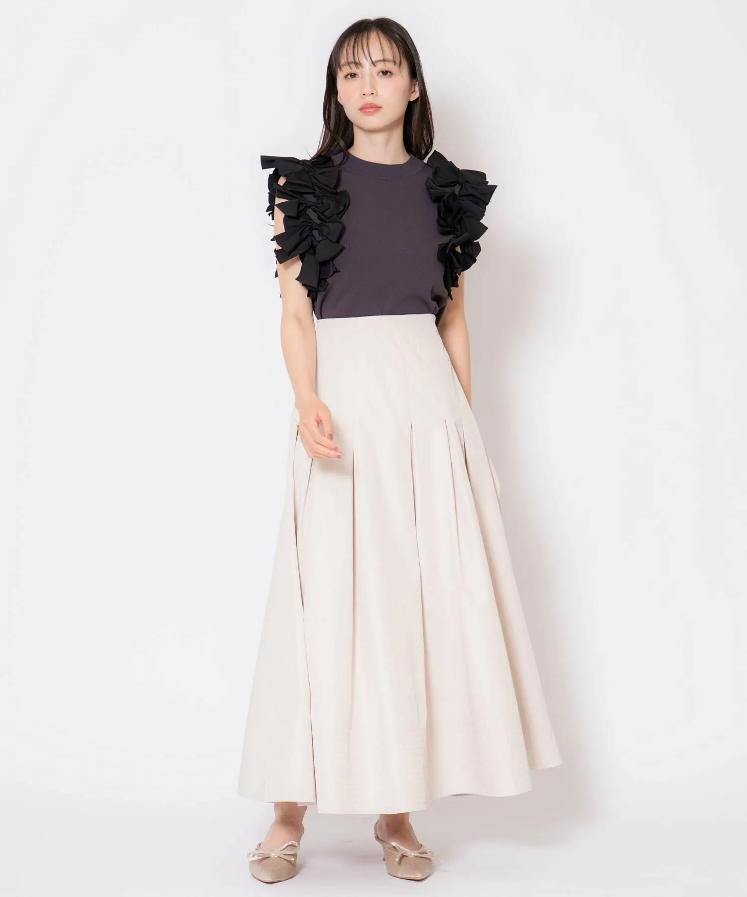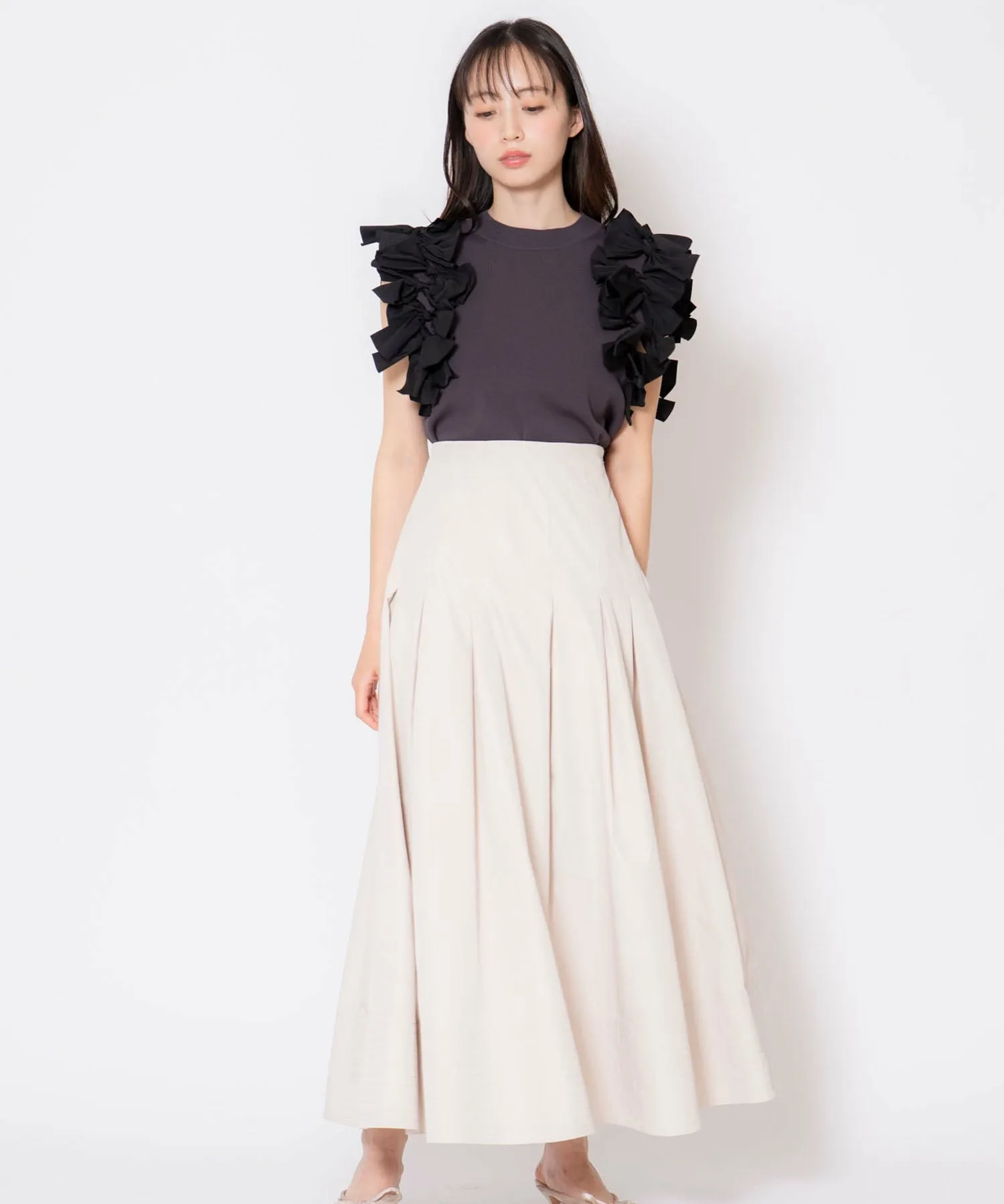 Эта объемная расклешенная юбка изготовлена из тафты, легкого материала, который не мнется.