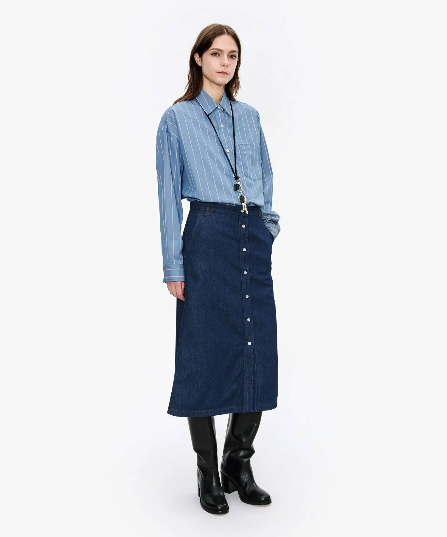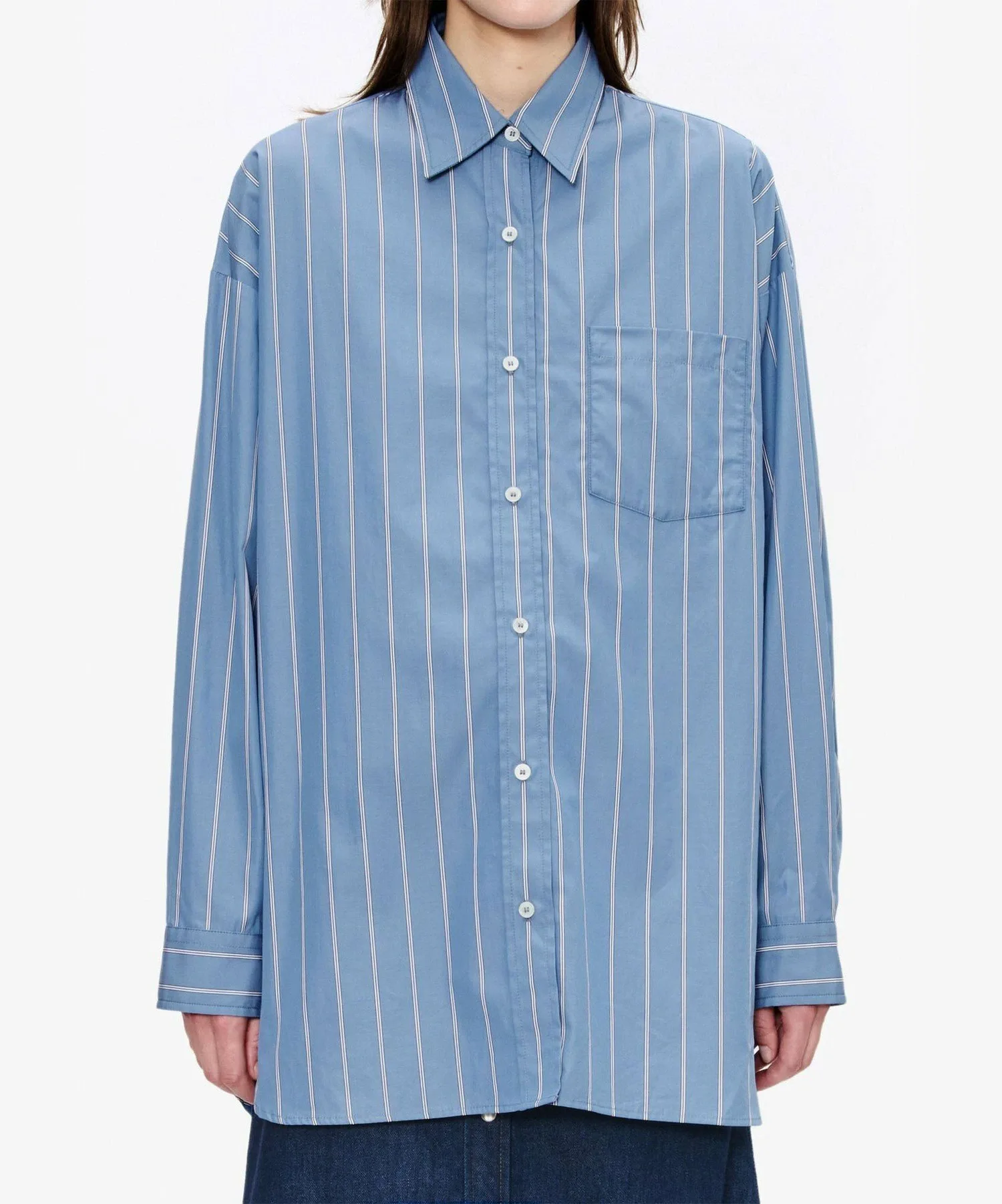 Синяя рубашка из поплина.