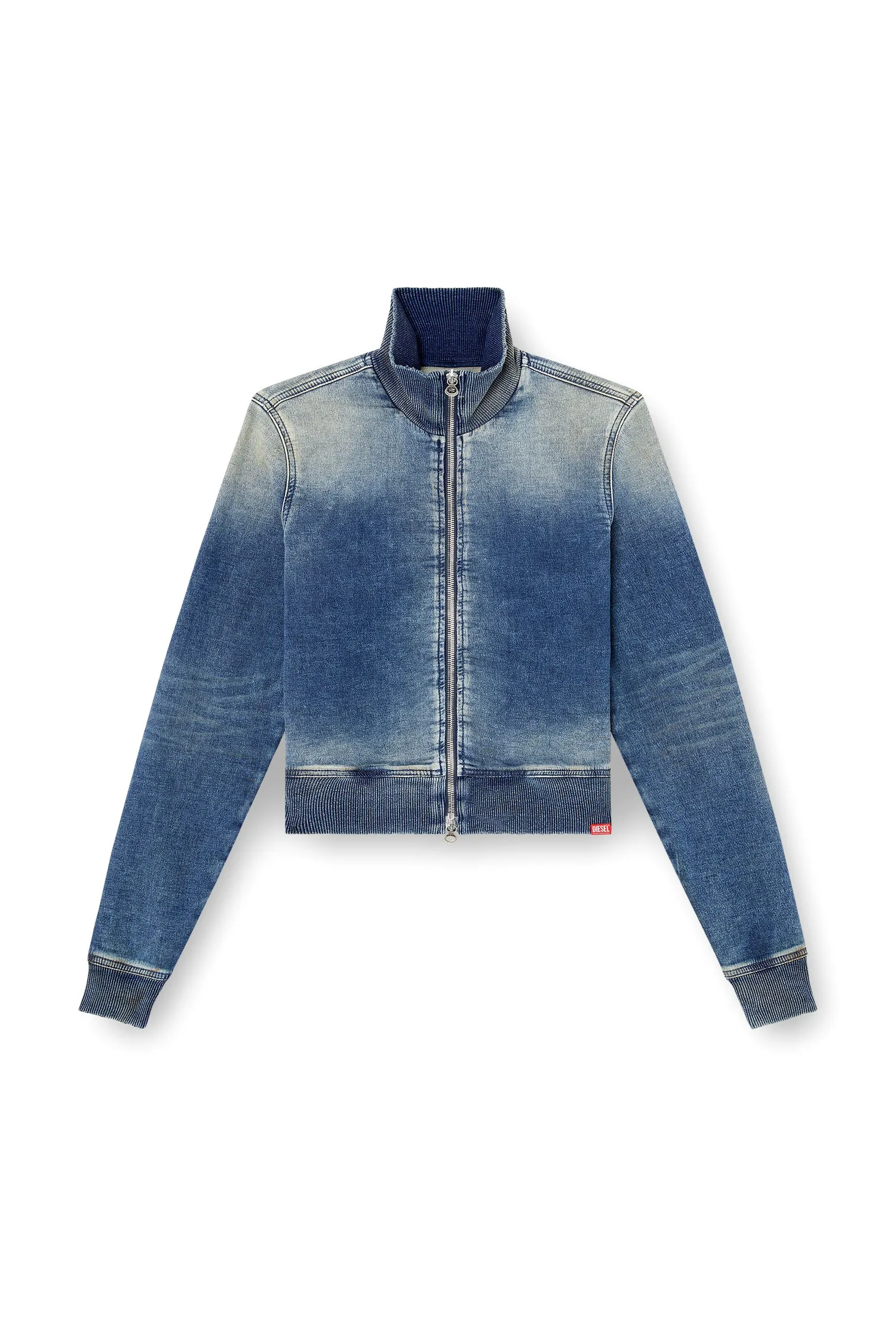 "D-EMYTRACK" — это куртка на молнии из спортивного денима. Ее привлекательность заключается в эластичной ткани, приятной на ощупь, и в эффекте смелой обработки ткани. Компактный силуэт, облегающий фигуру, создает аккуратный образ. Внимание уделено каждой детали, включая овальный D-образный язычок молнии и логотип на левом рукаве.