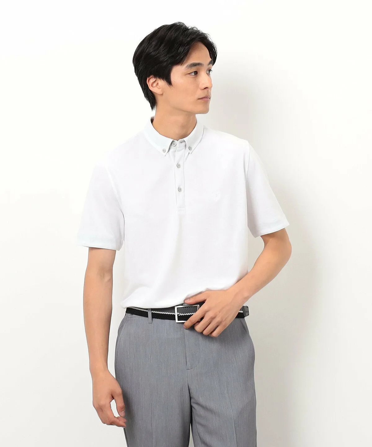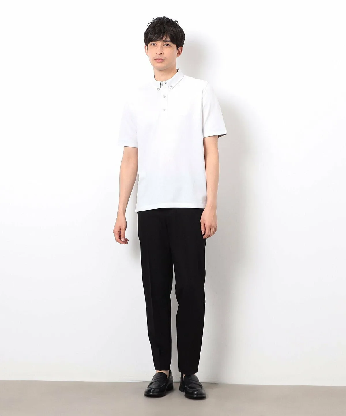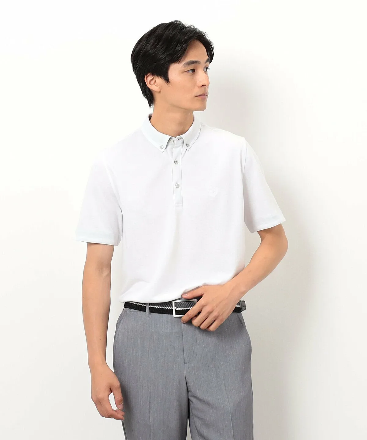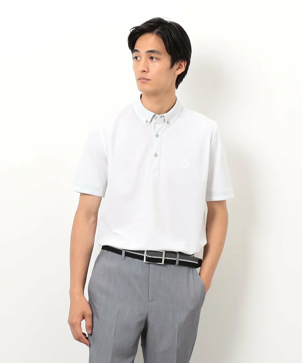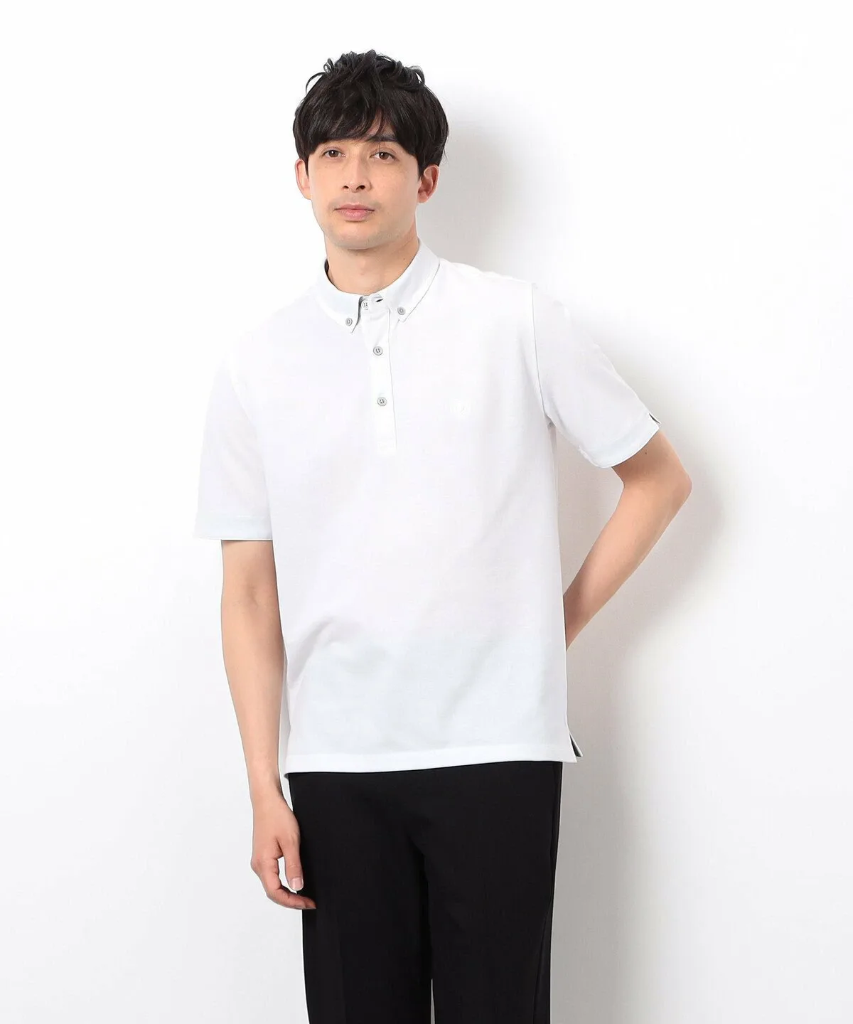 Простая рубашка-поло из пике с небольшим воротником на пуговицах.