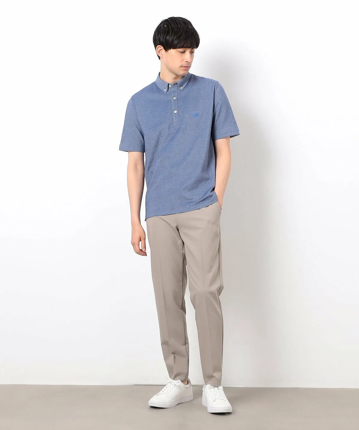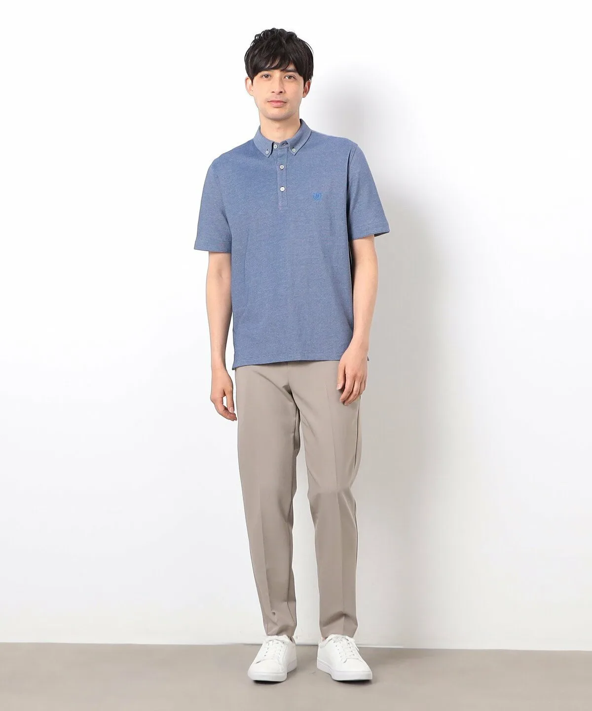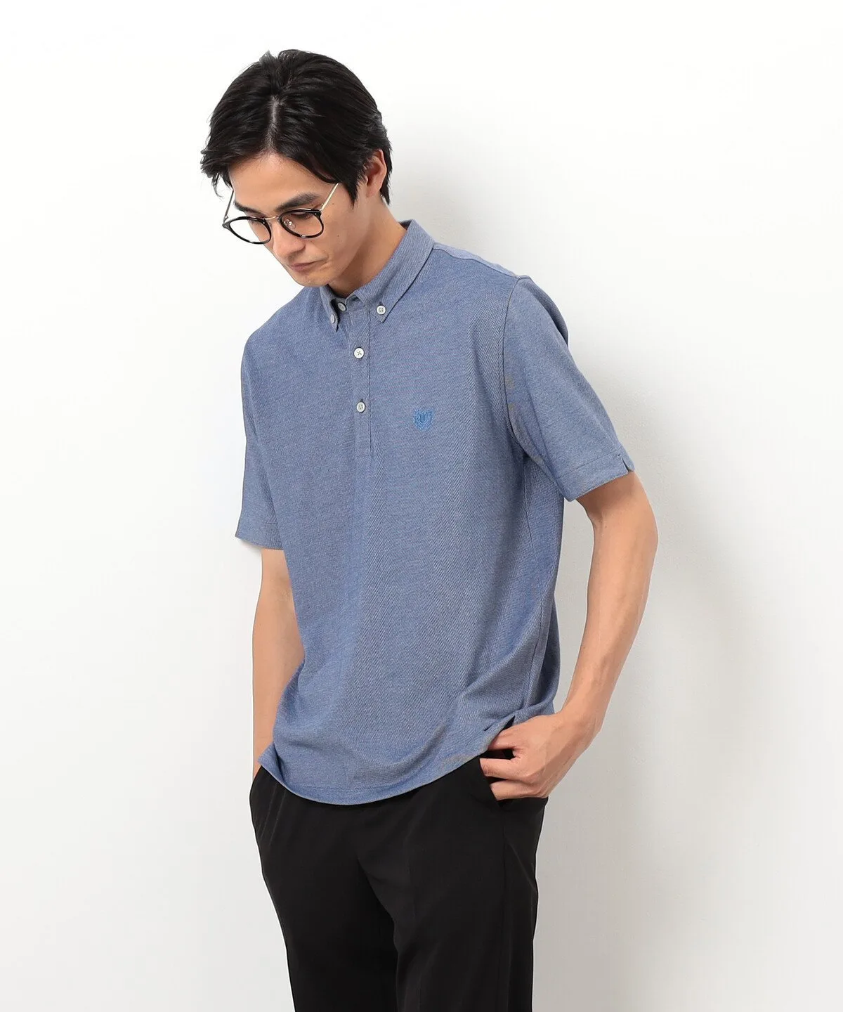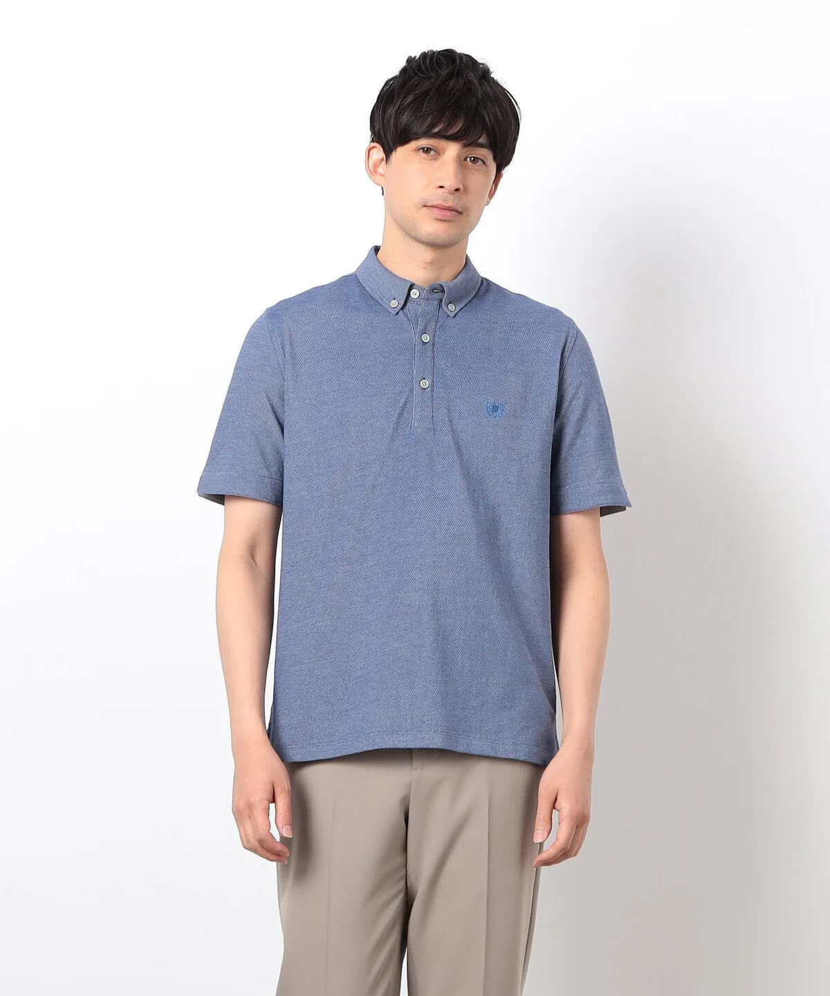 Простая рубашка-поло из пике с небольшим воротником на пуговицах.