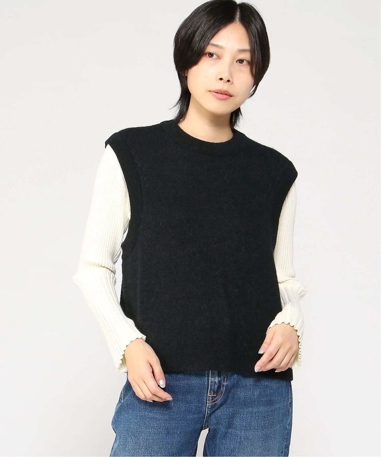 Этот трикотажный топ без рукавов имеет широкие проймы, поэтому он не выглядит громоздким под рукавами и легко сочетается с другой одеждой.