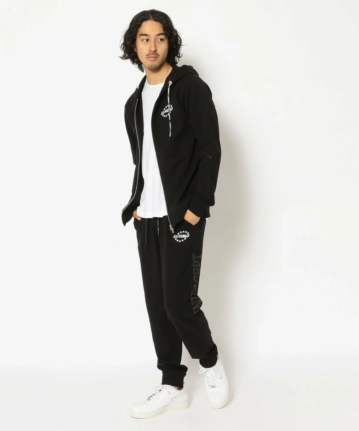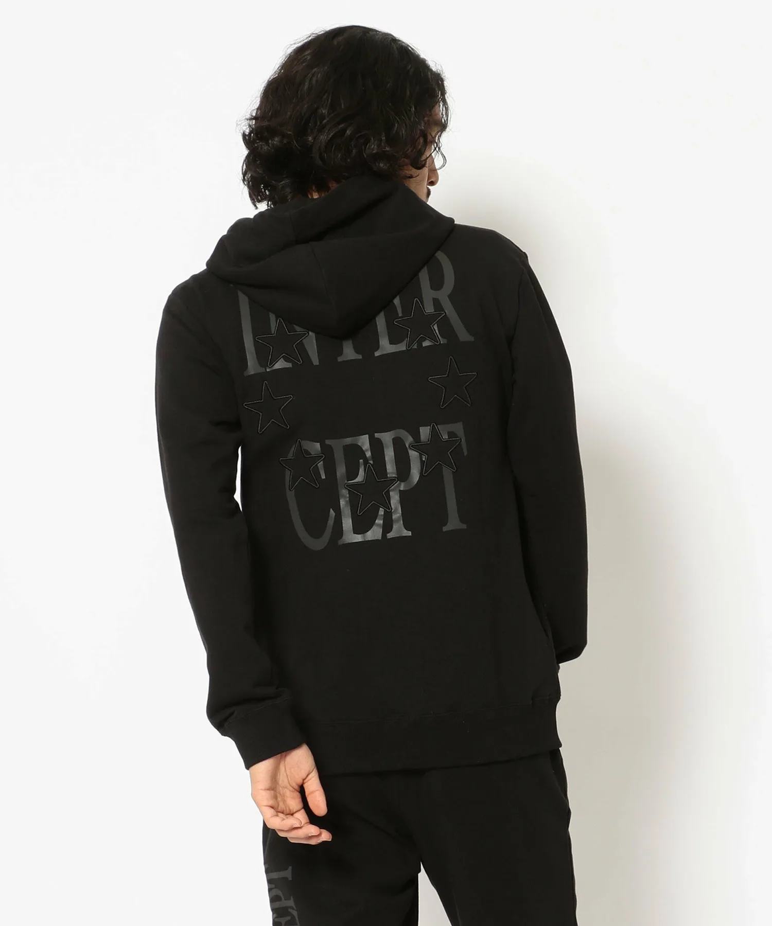 Эффектная парка с ярким логотипом и вышивкой в виде круглой звезды на спине.