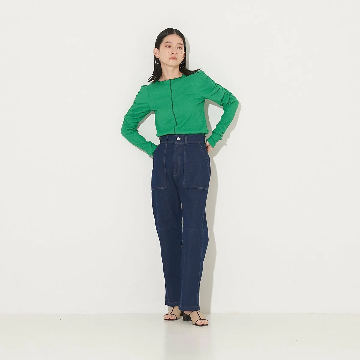 Эта модель имеет тщательно продуманный шов на колене, создающий эффект удлинения ног.