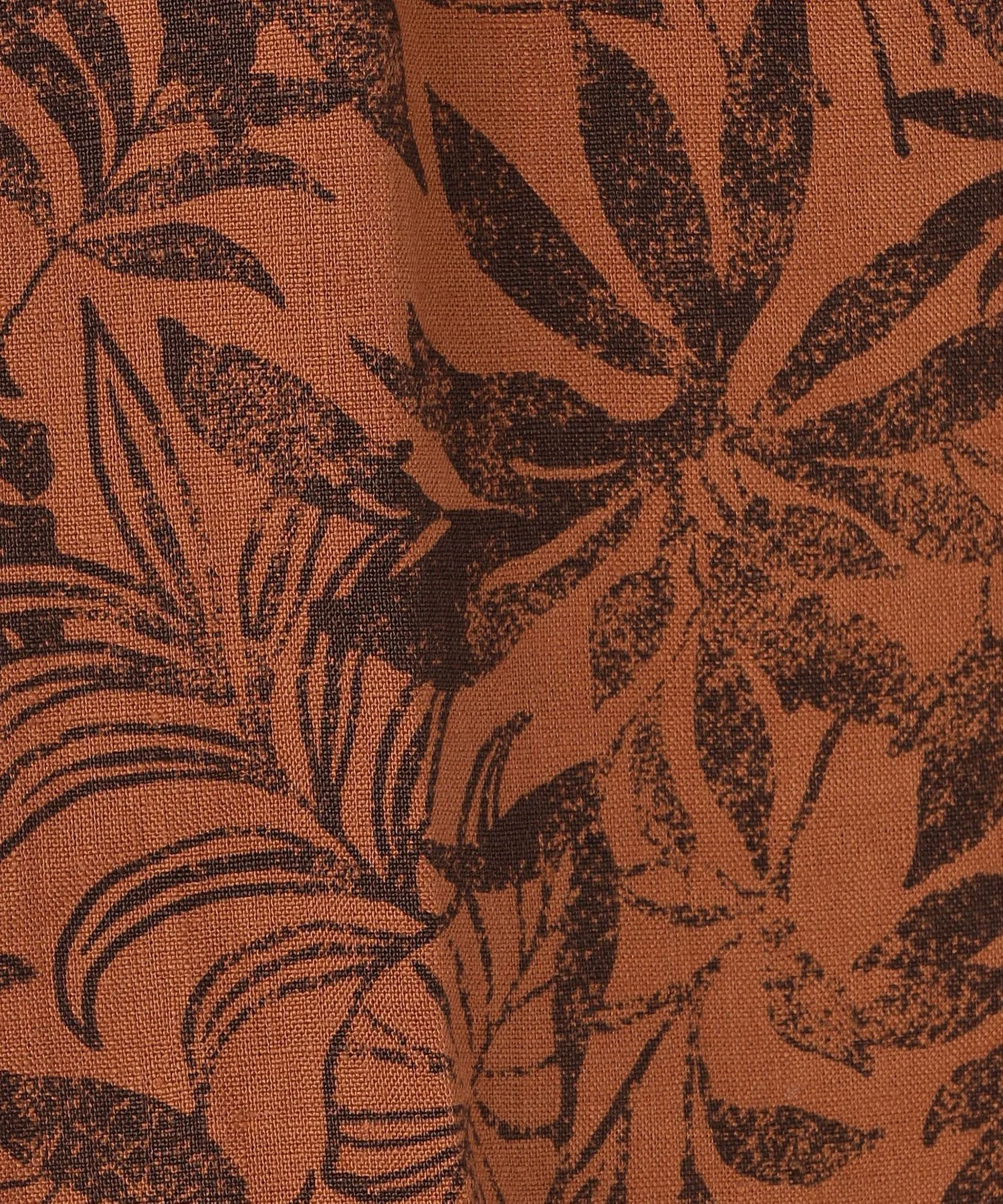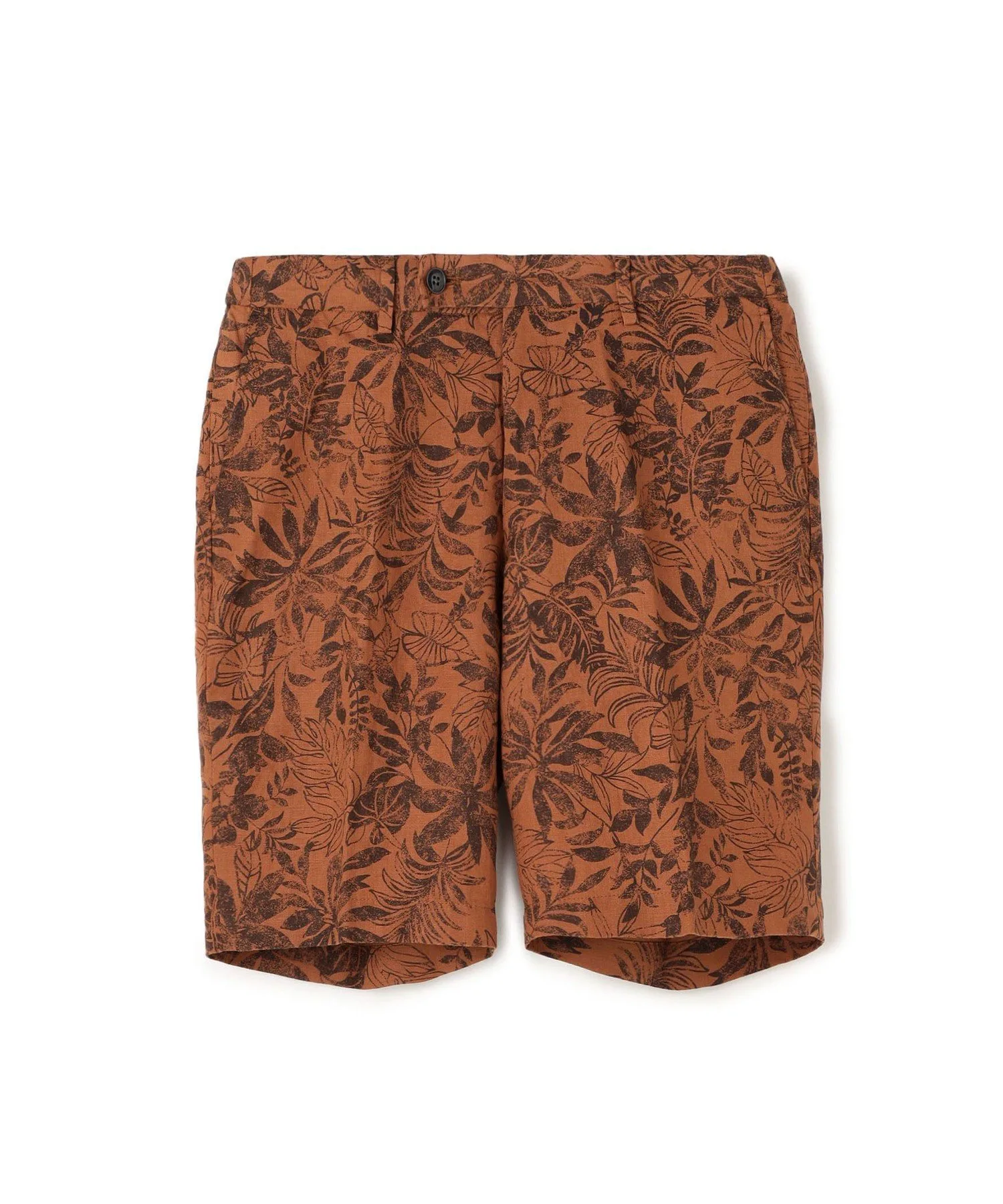 Простые шорты из льняной поплиновой ткани плотностью 60 г/м² с принтом в виде листьев.