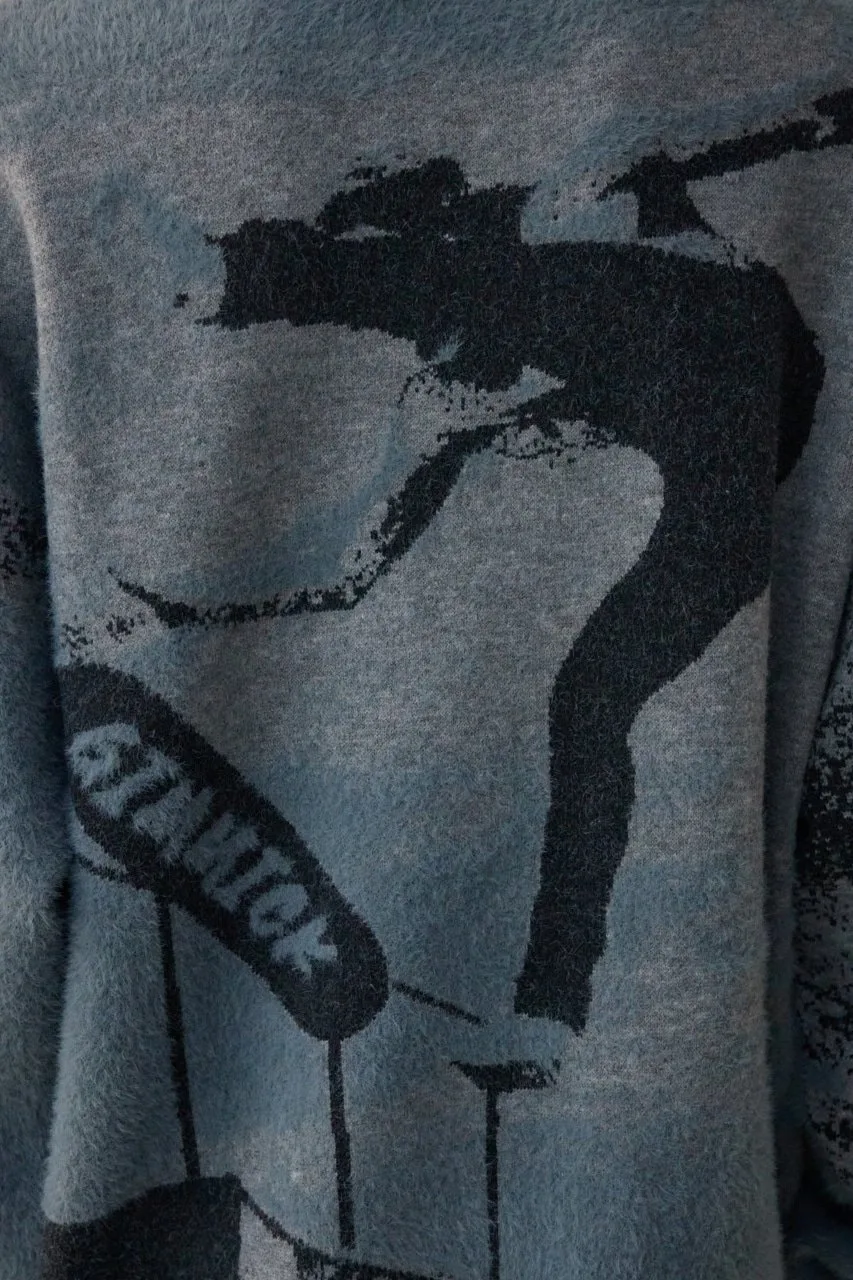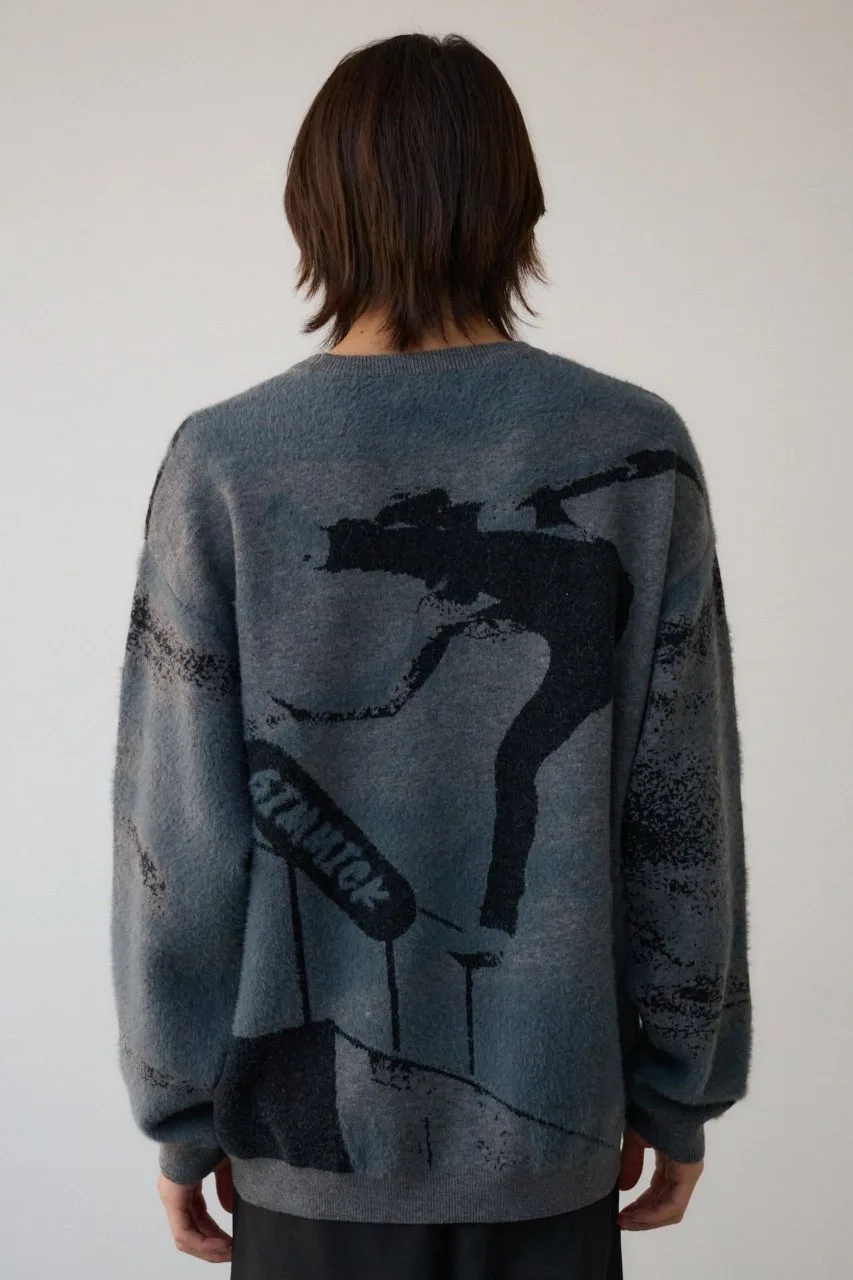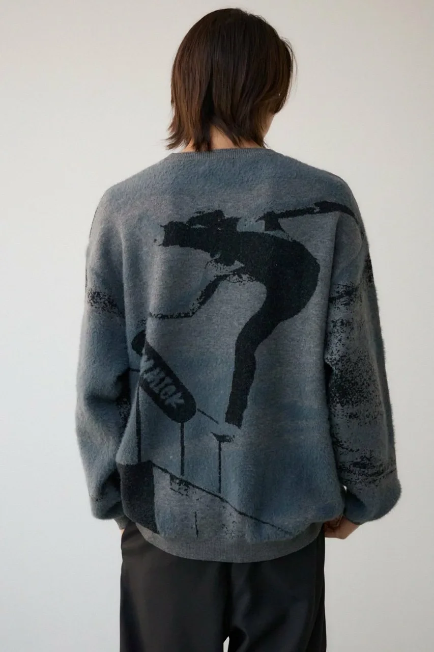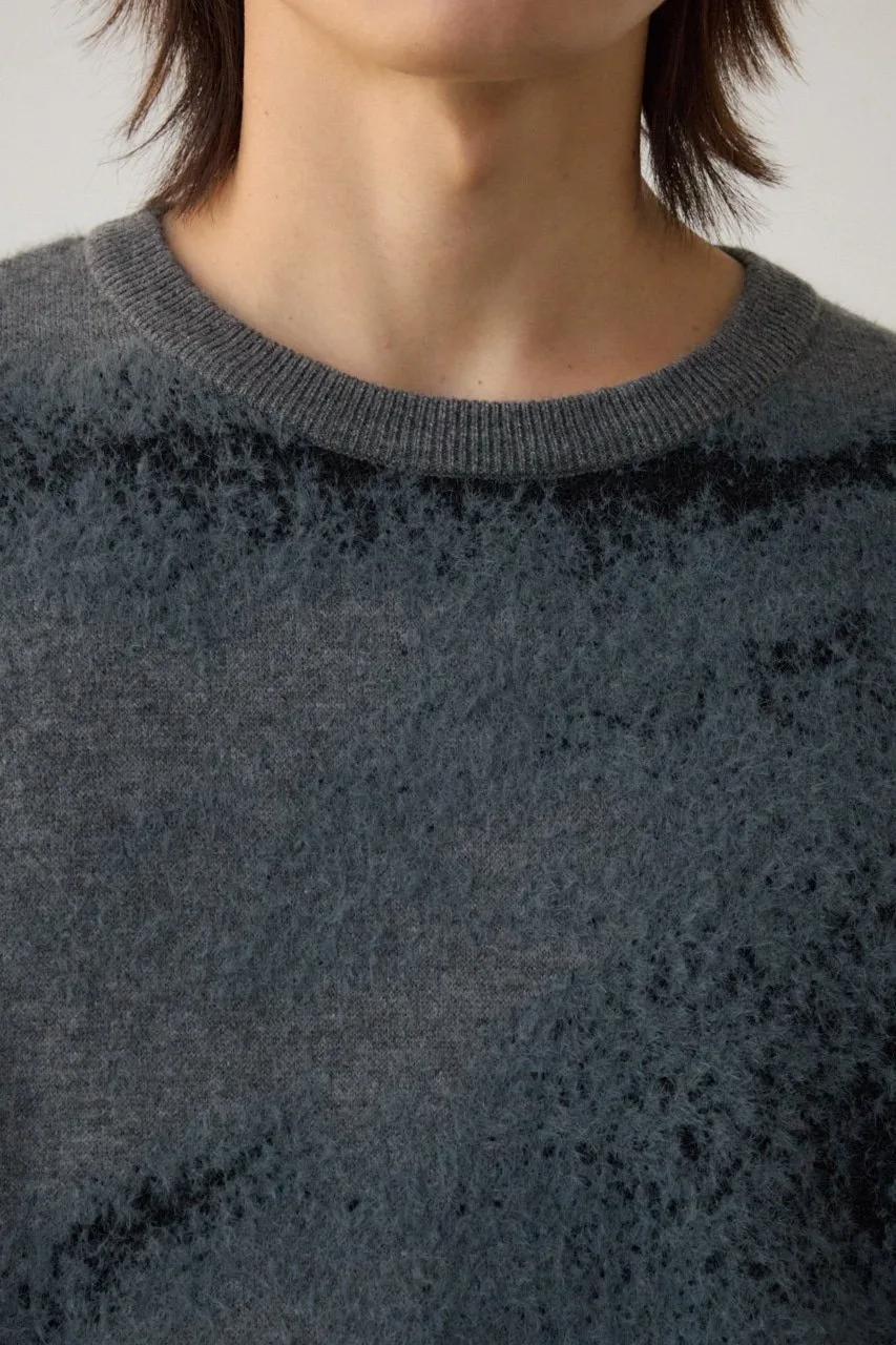 Трикотажный топ, связанный из комбинации нейлонового ворса и прямой пряжи, создающий фотоподобное изображение с тенями.