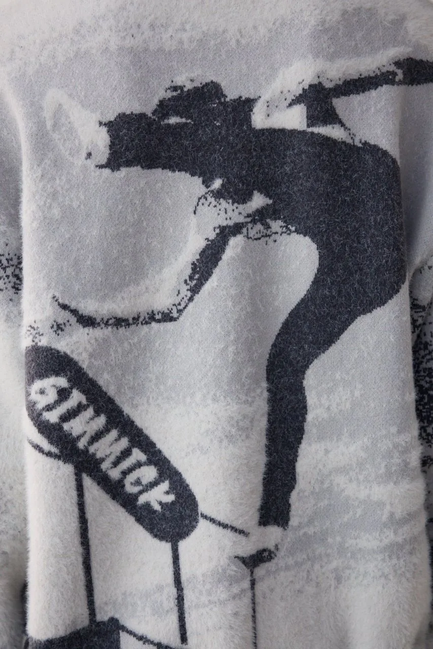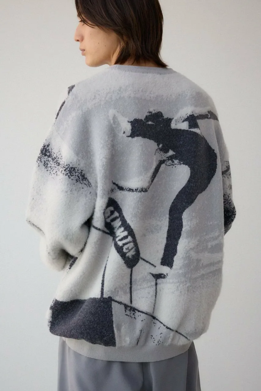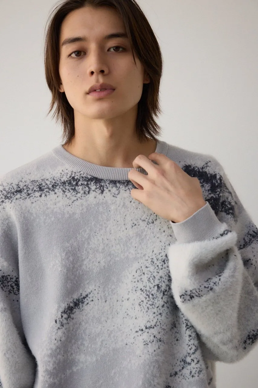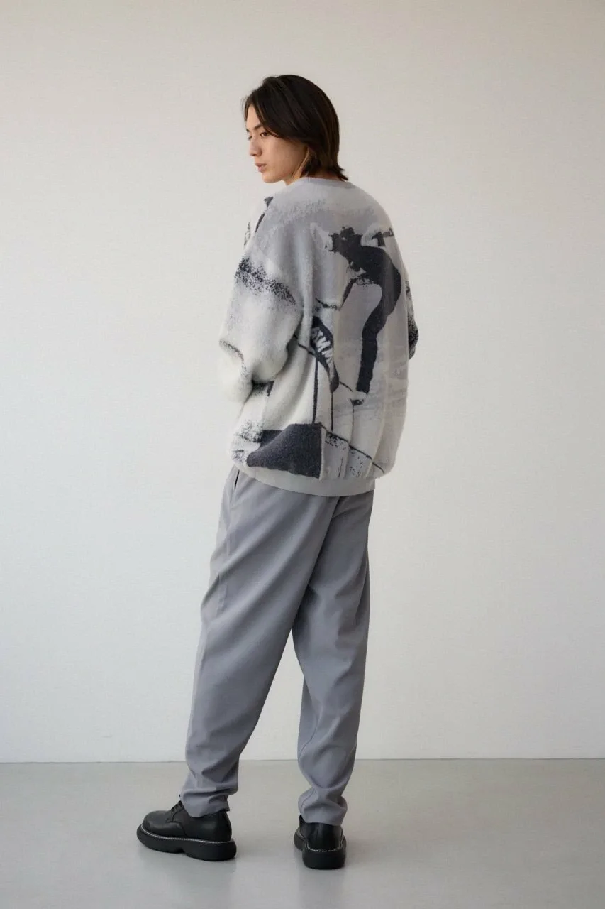 Трикотажный топ, связанный из комбинации нейлонового ворса и прямой пряжи, создающий фотоподобное изображение с тенями.