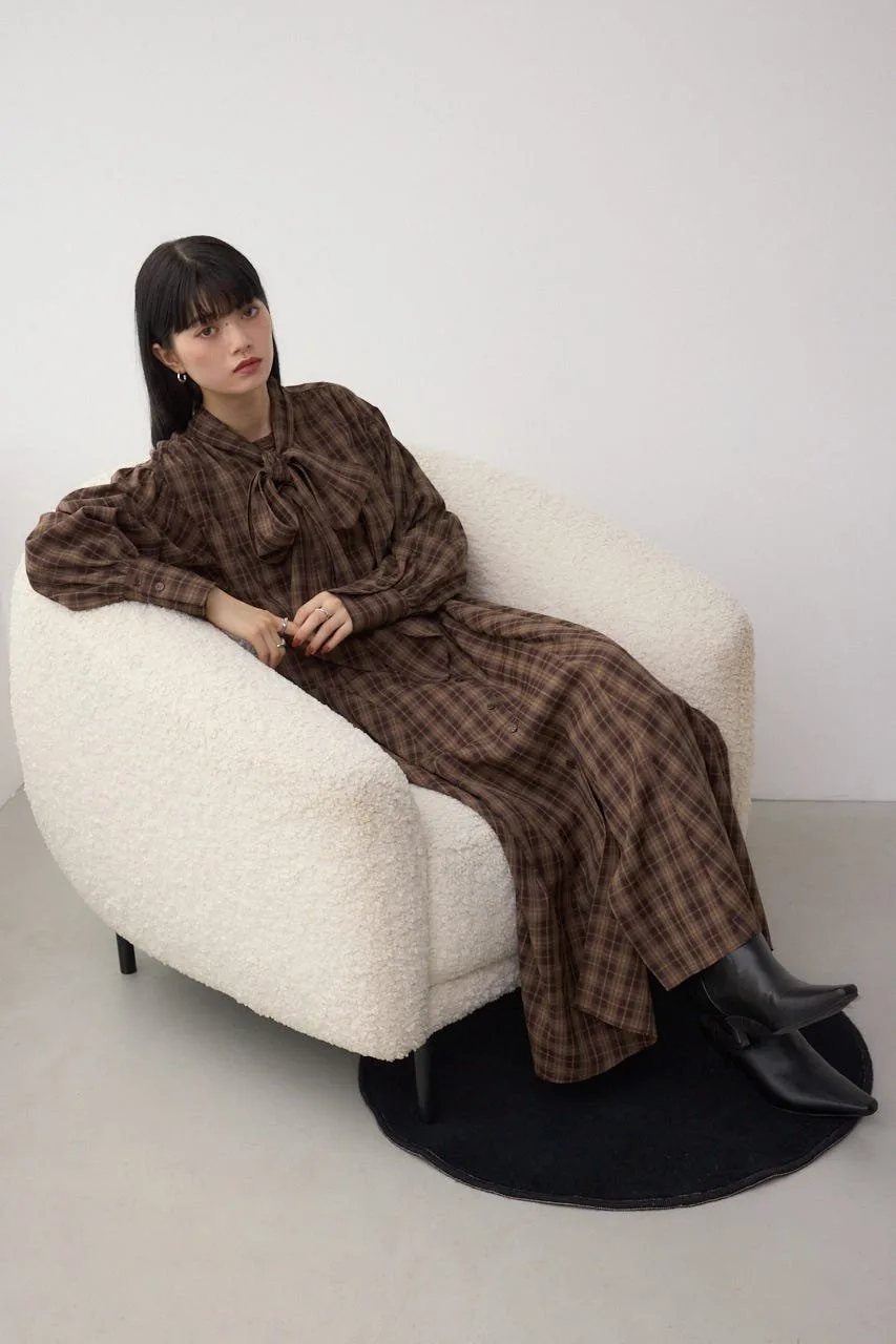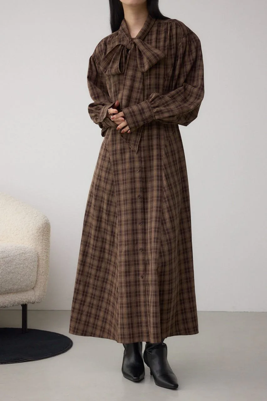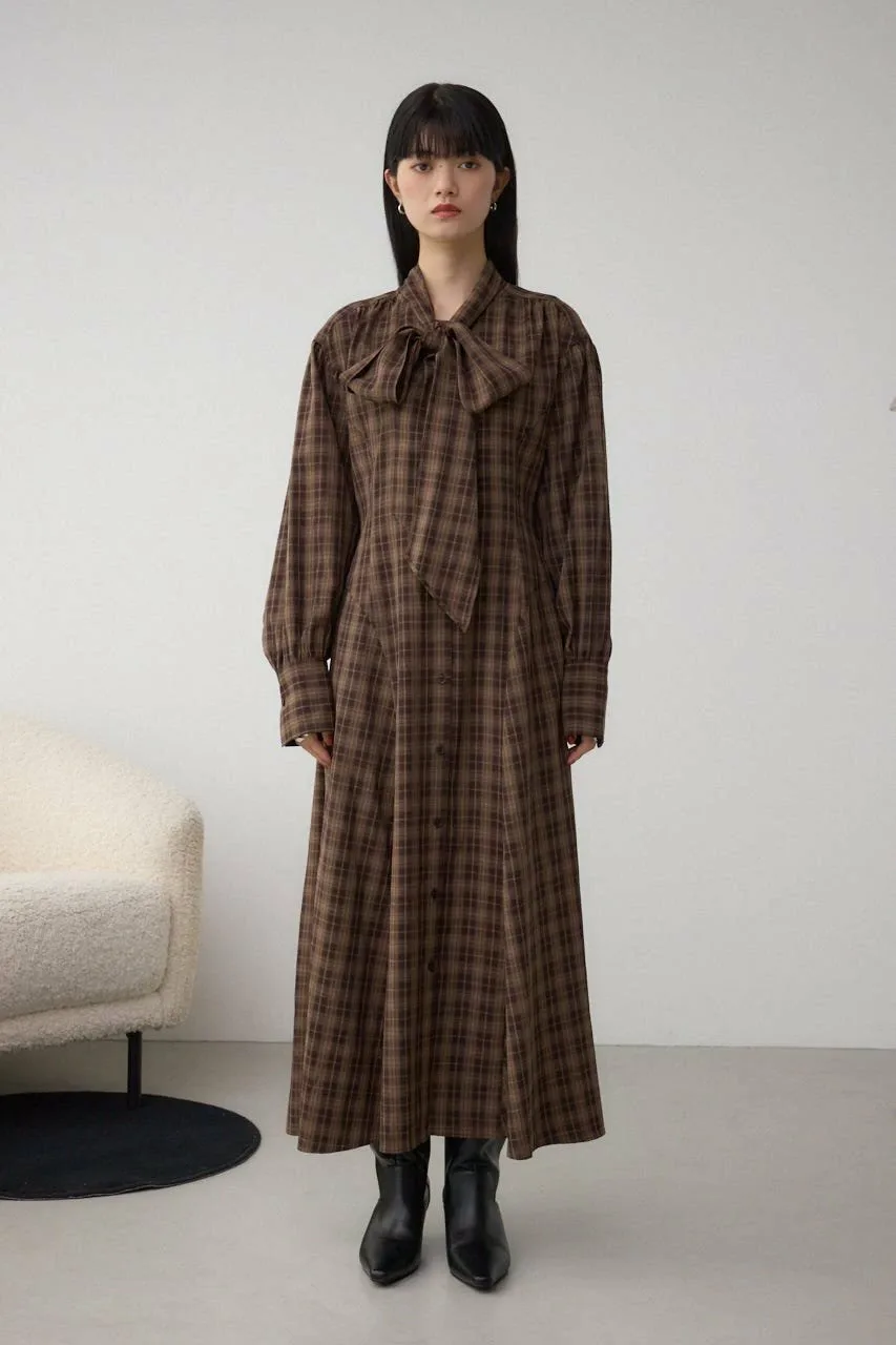 Клетчатое платье с бантом, излучающее классический стиль, — незаменимый элемент осенне-зимнего гардероба.