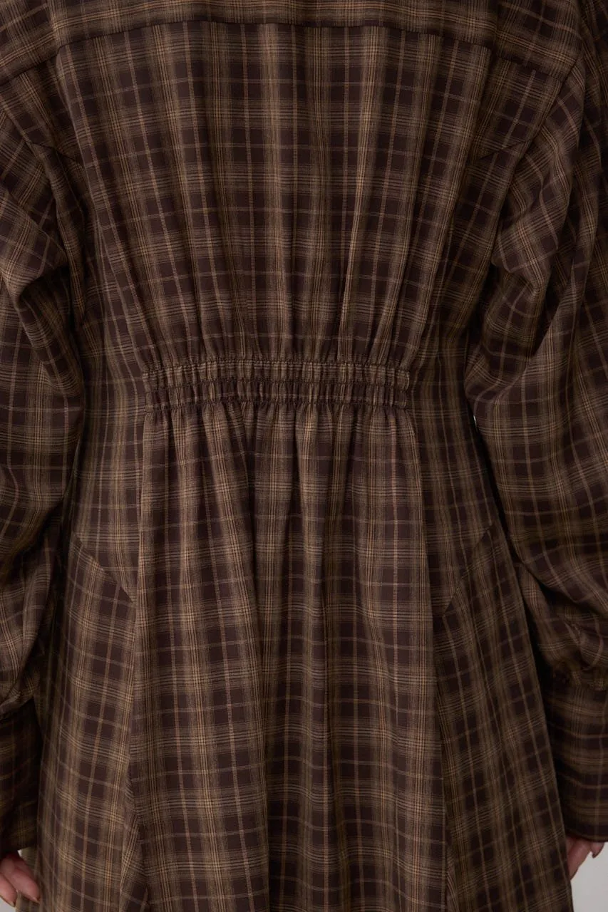 Приглушенный клетчатый узор создает изысканный образ.