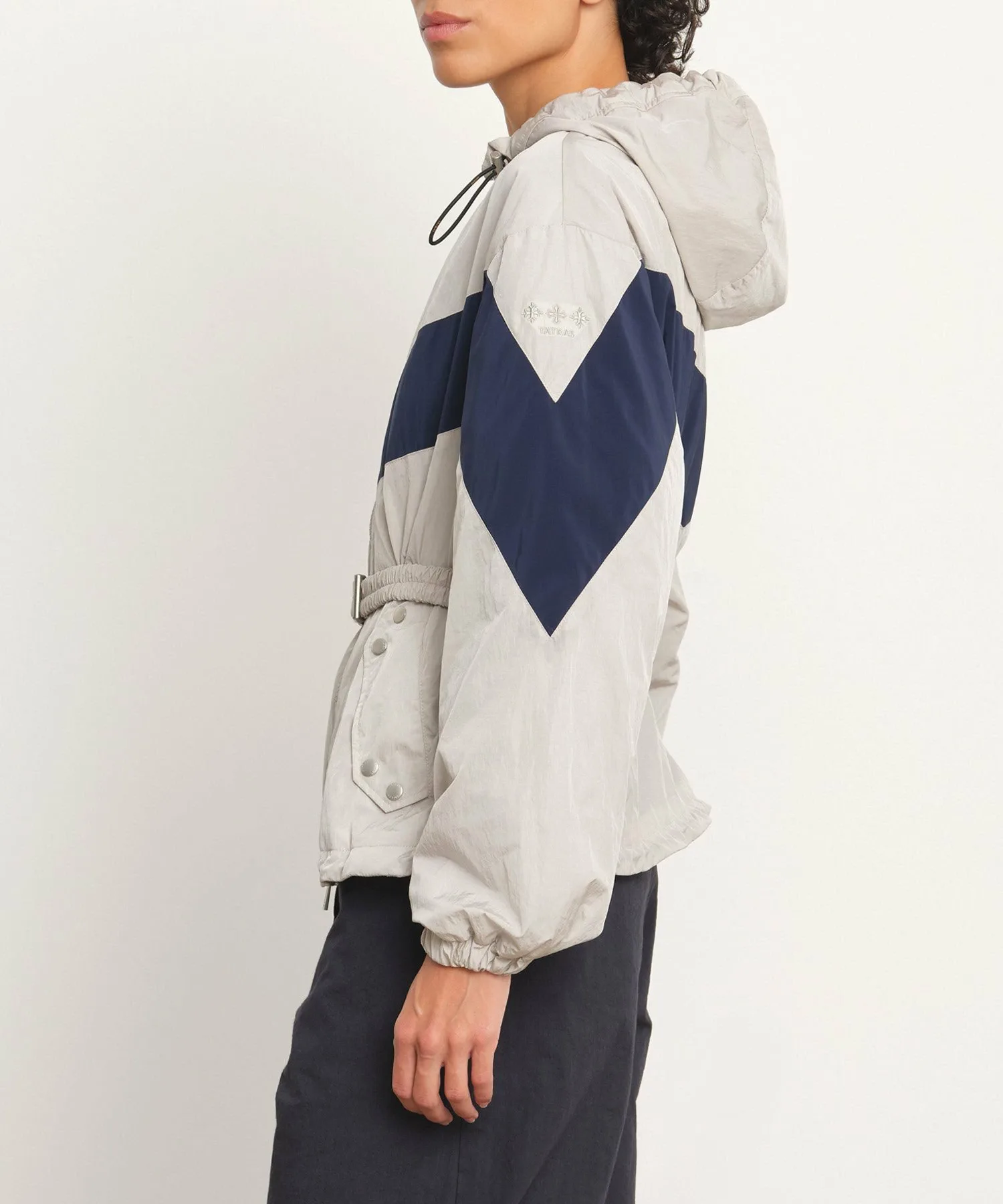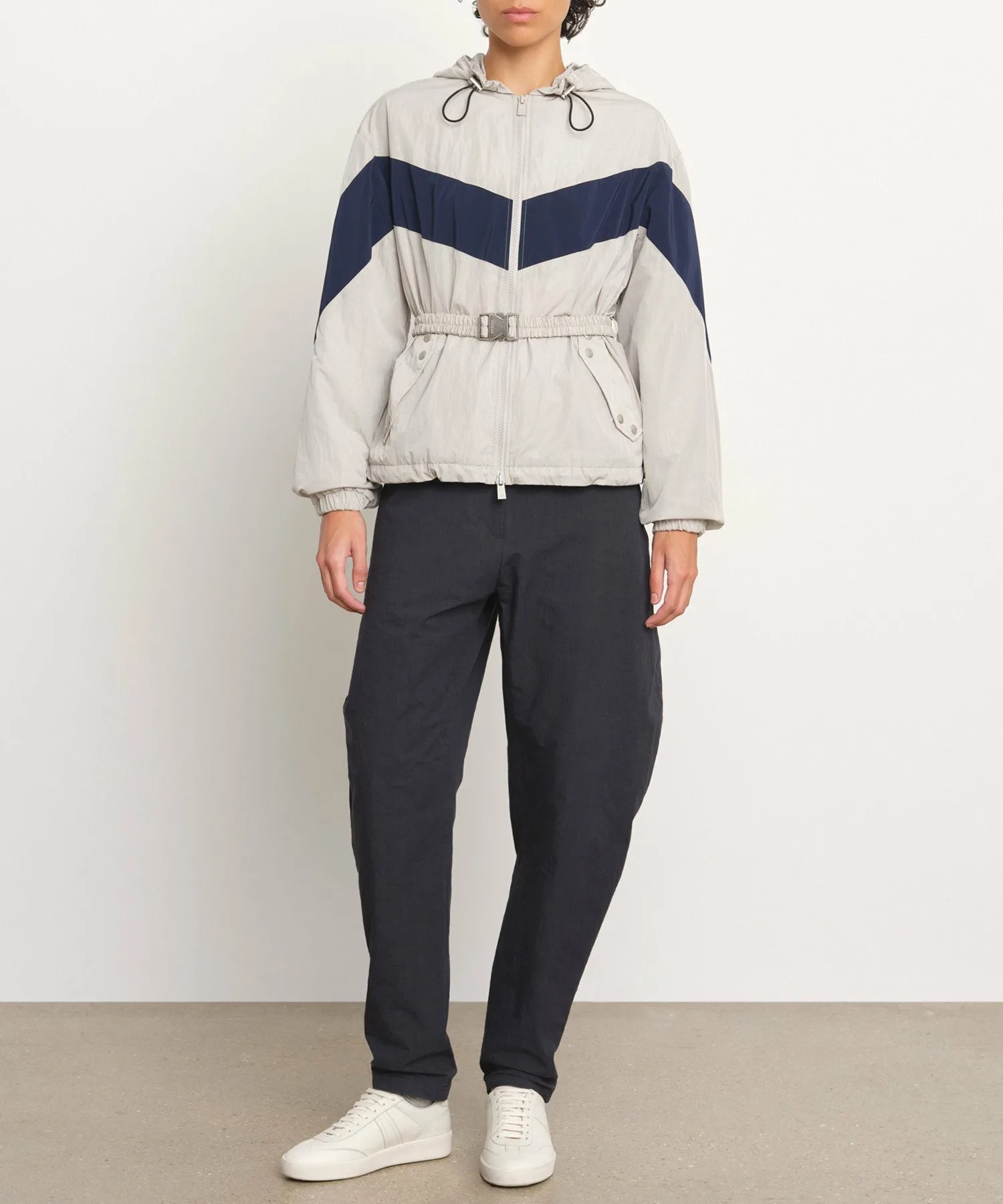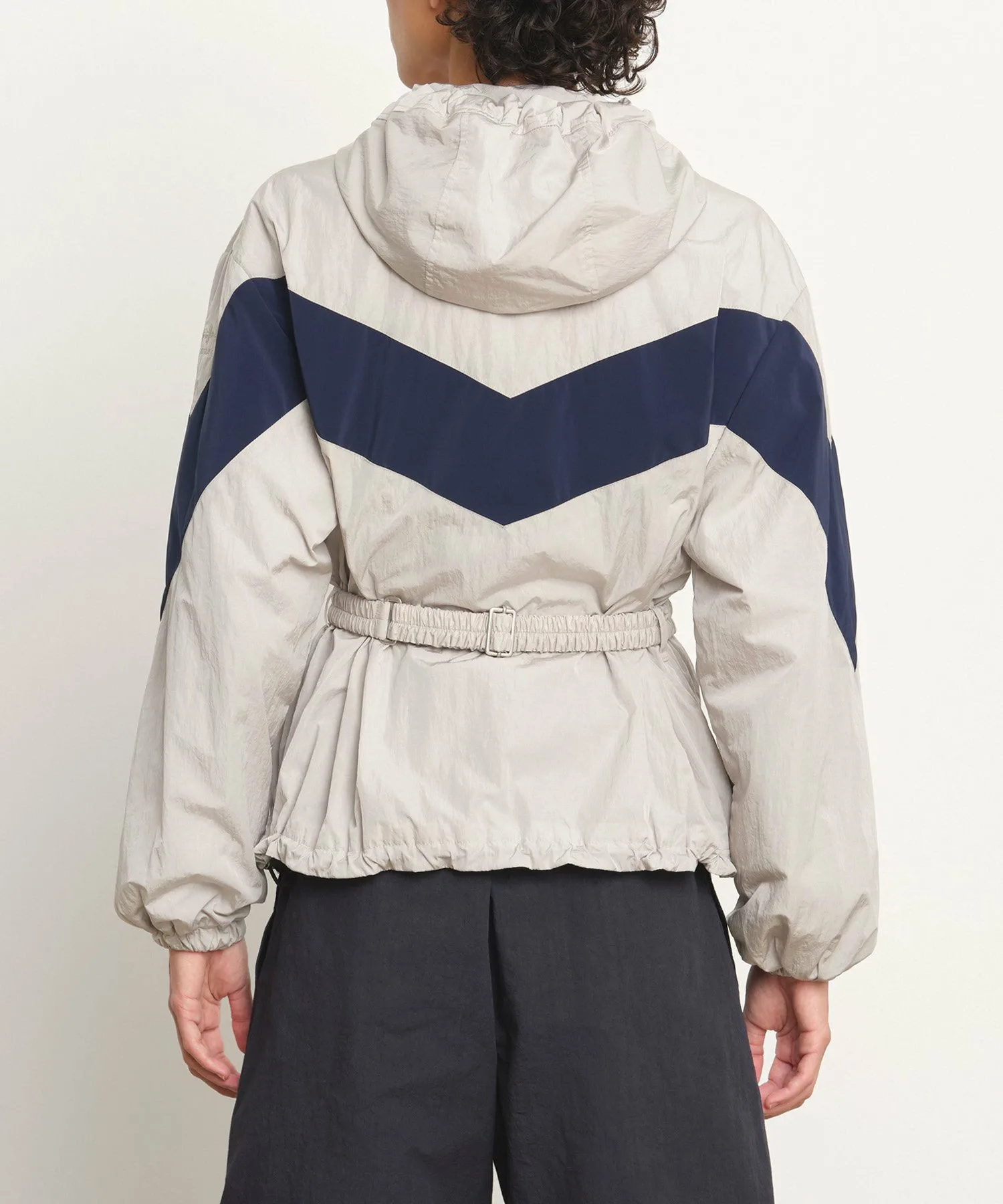 Эта нейлоновая куртка отличается контрастными цветными линиями кроя.