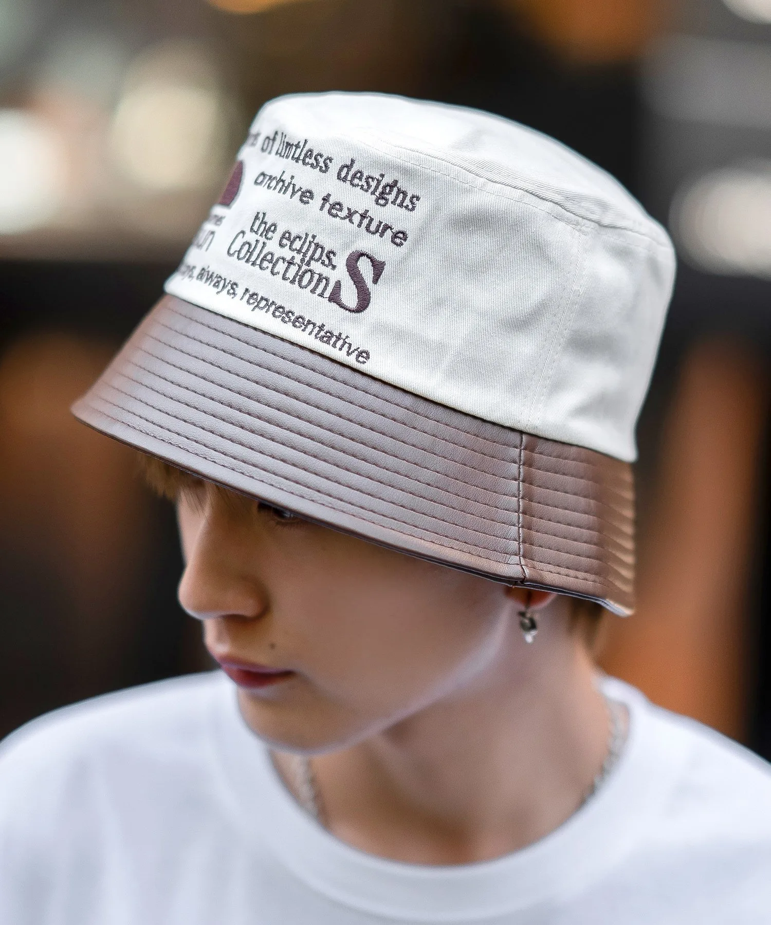 Панирная шляпа с полями из искусственной кожи.