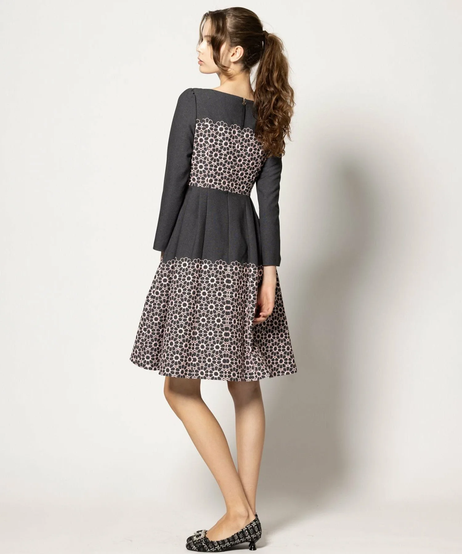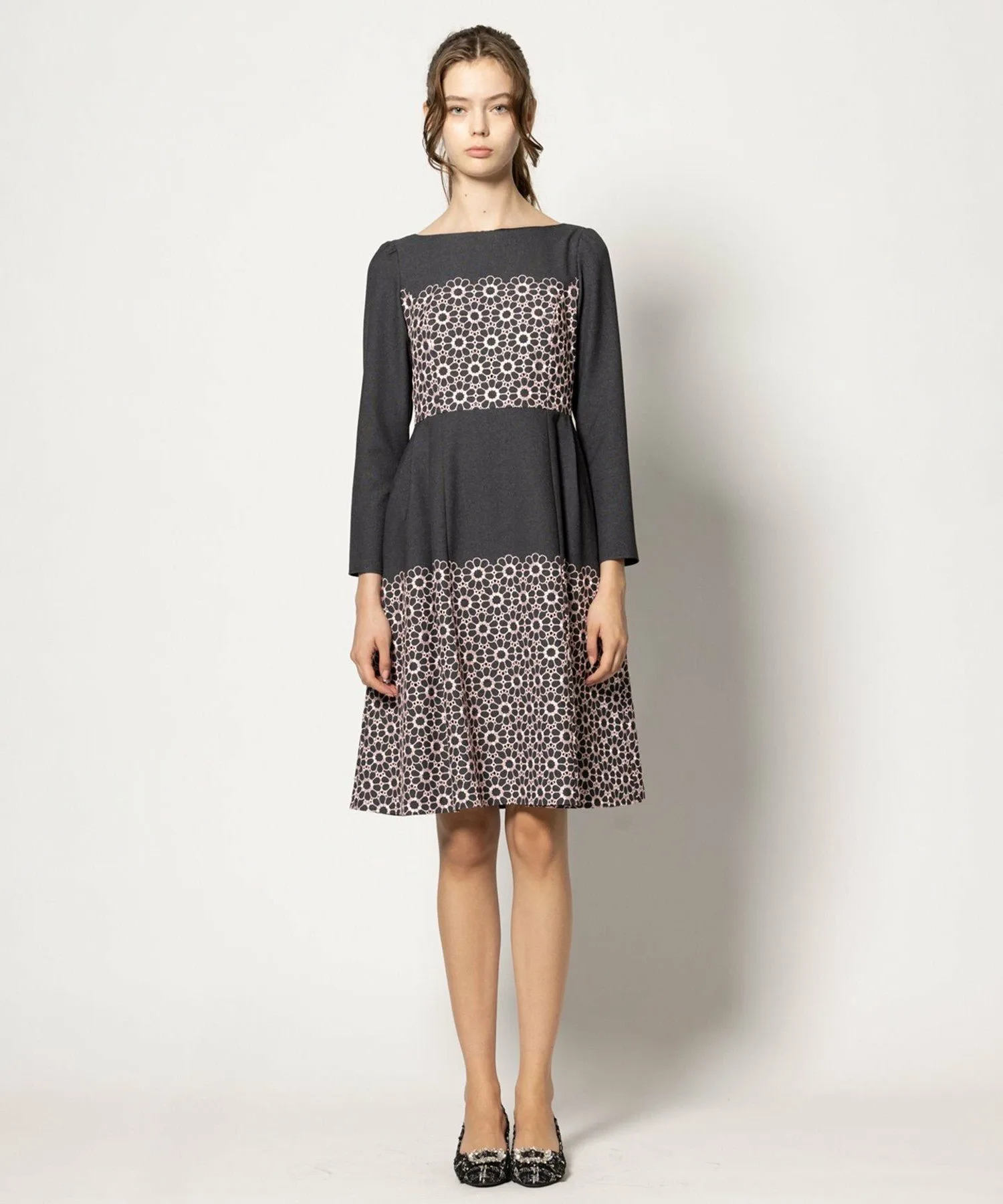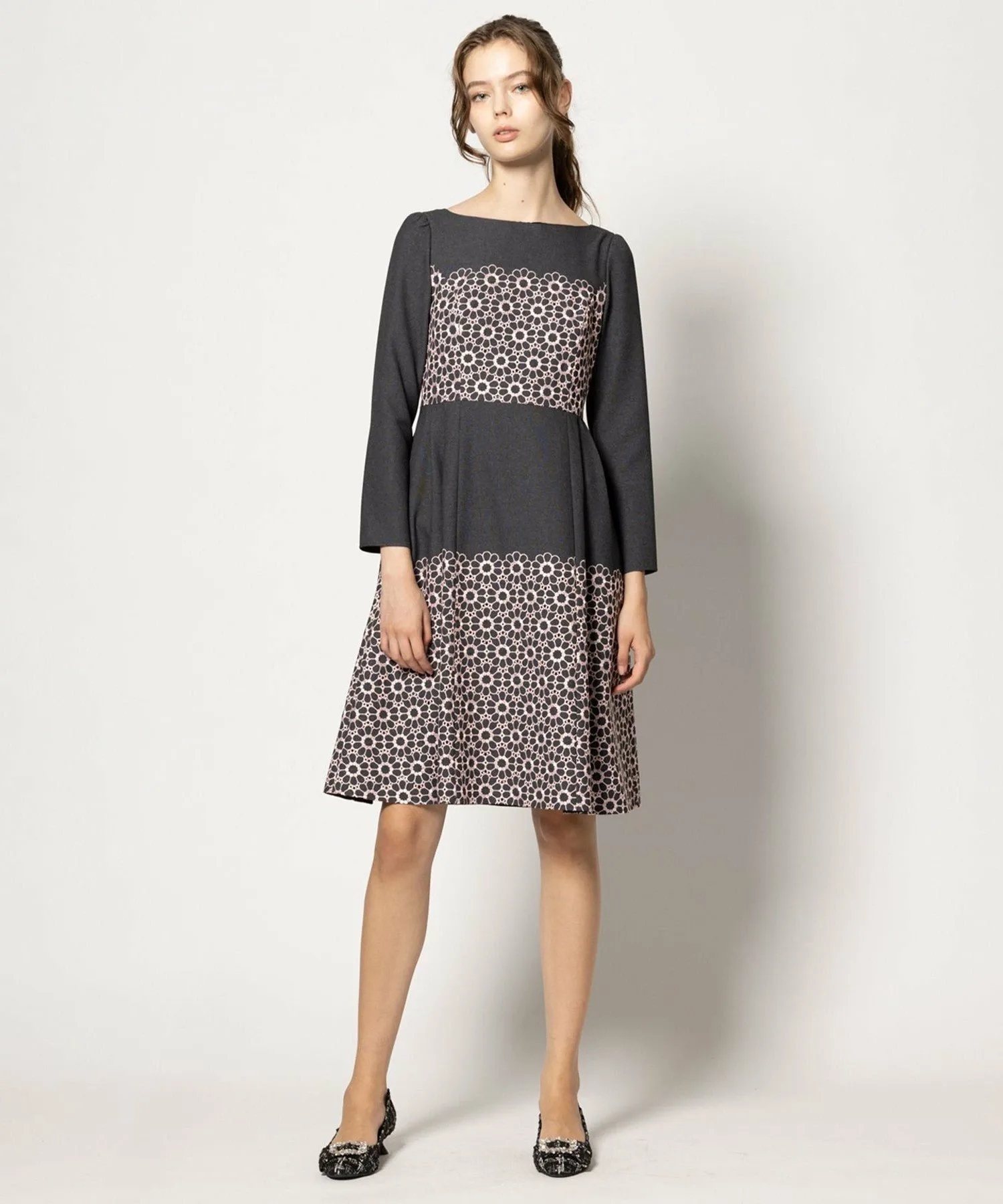 Однотонный цветочный узор не слишком броский, а в сочетании с однотонным цветом создает выразительный и изысканный образ.