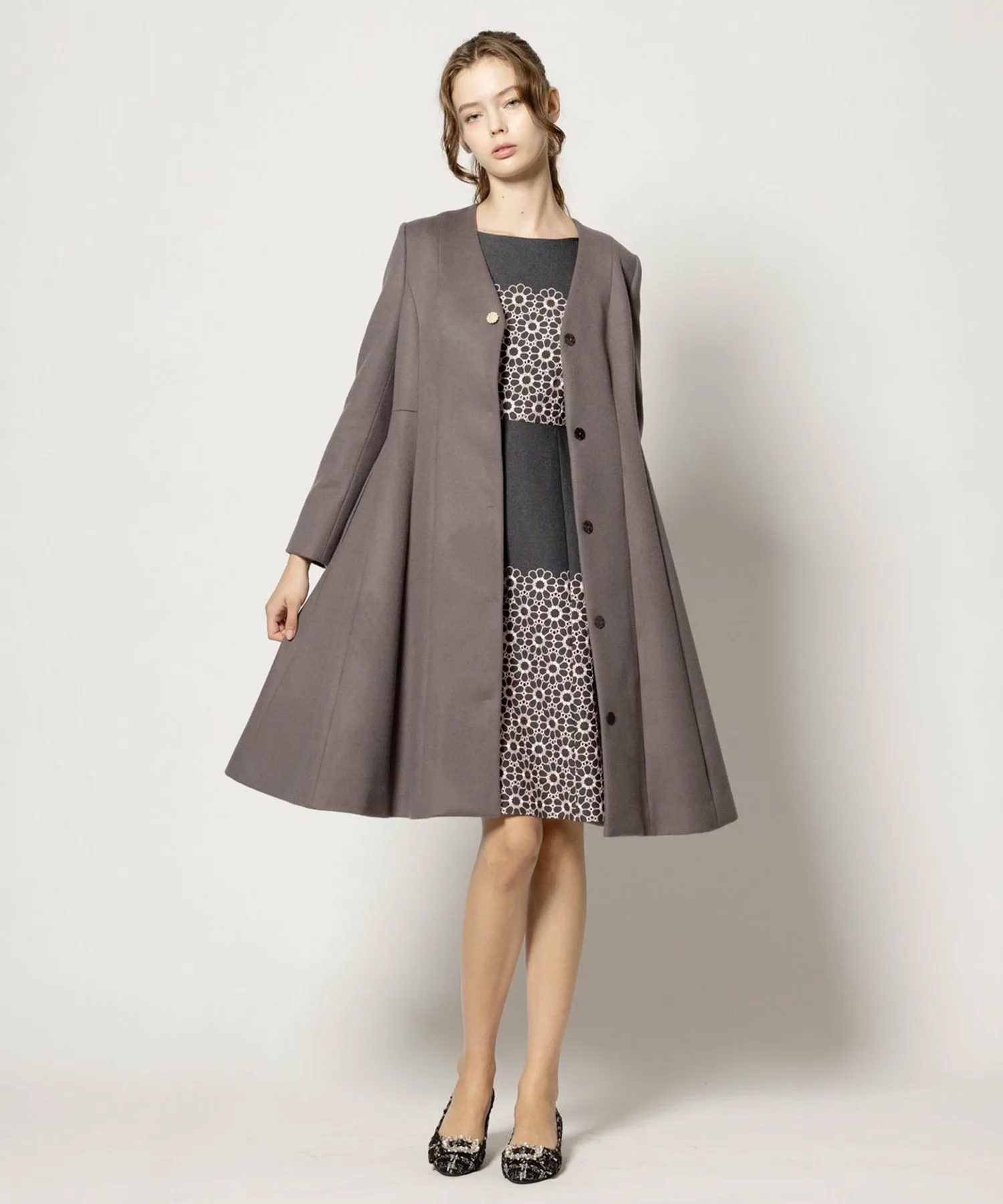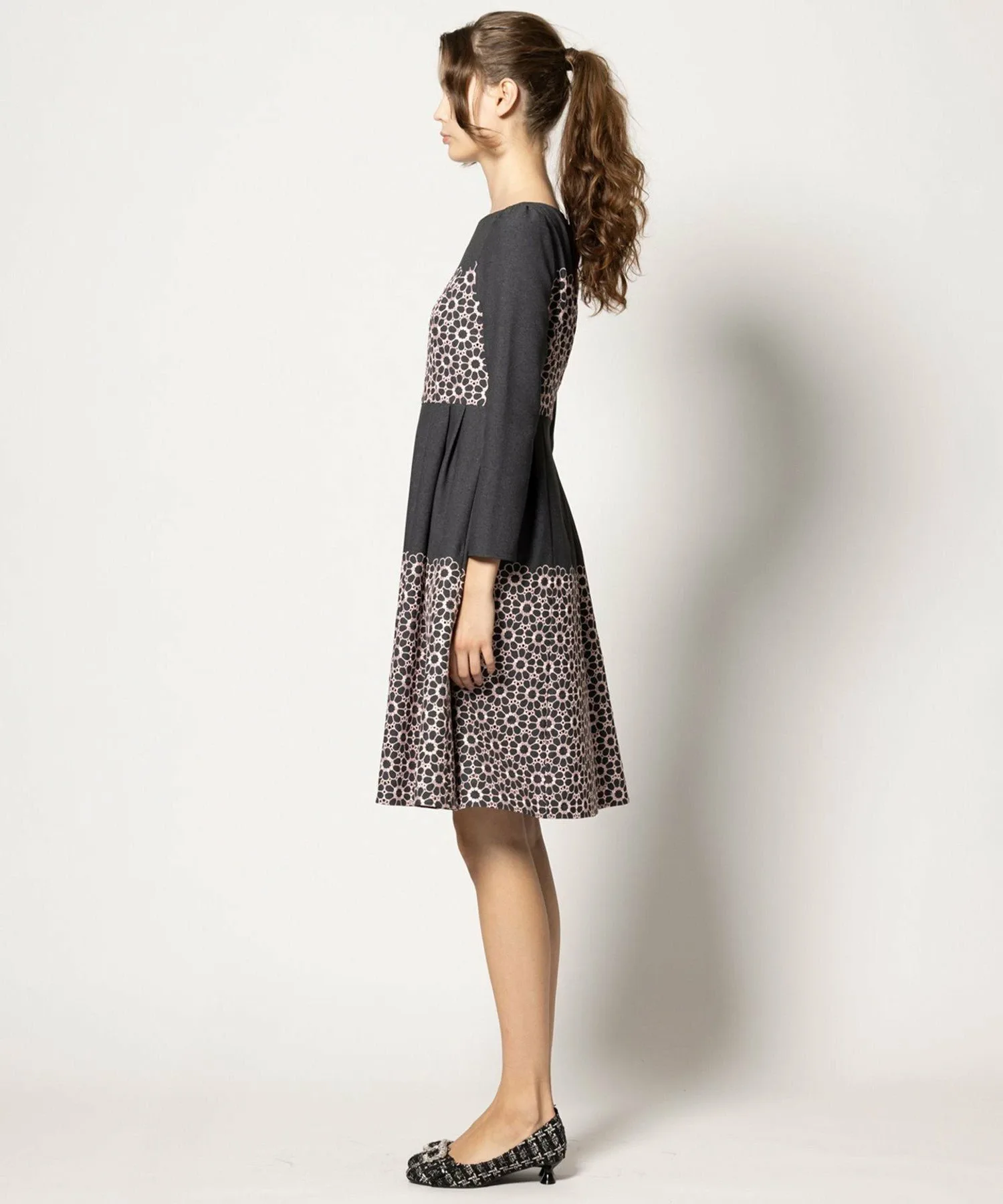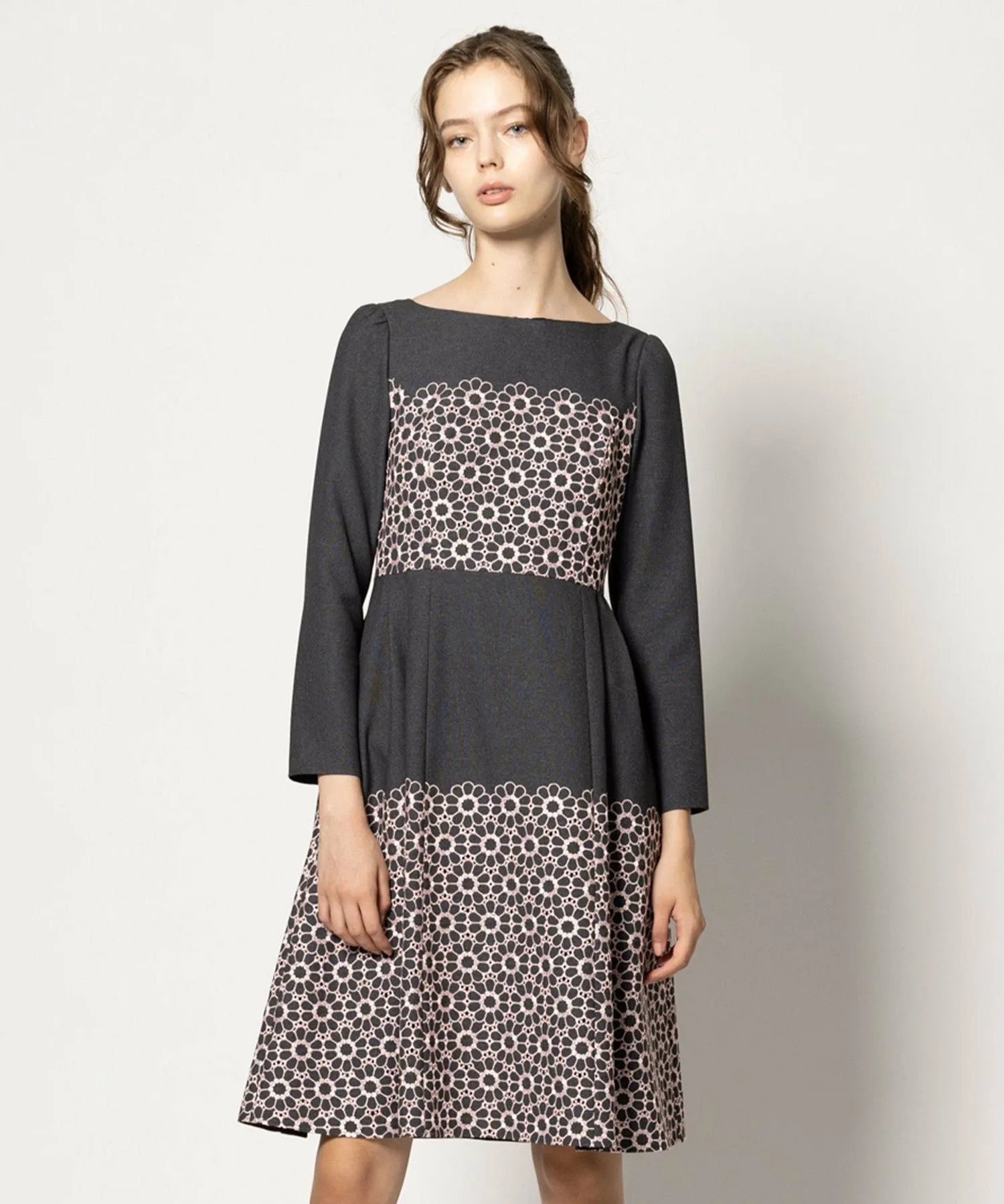 Однотонный цветочный узор не слишком броский, а в сочетании с однотонным цветом создает выразительный и изысканный образ.