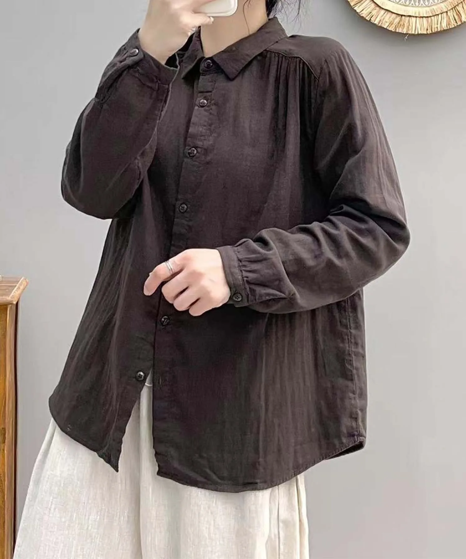 Изготовлена из хлопчатобумажной ткани, мягкой на ощупь и хорошо пропускающей воздух. Ее гладкая текстура делает ее удобной для ношения круглый год.
