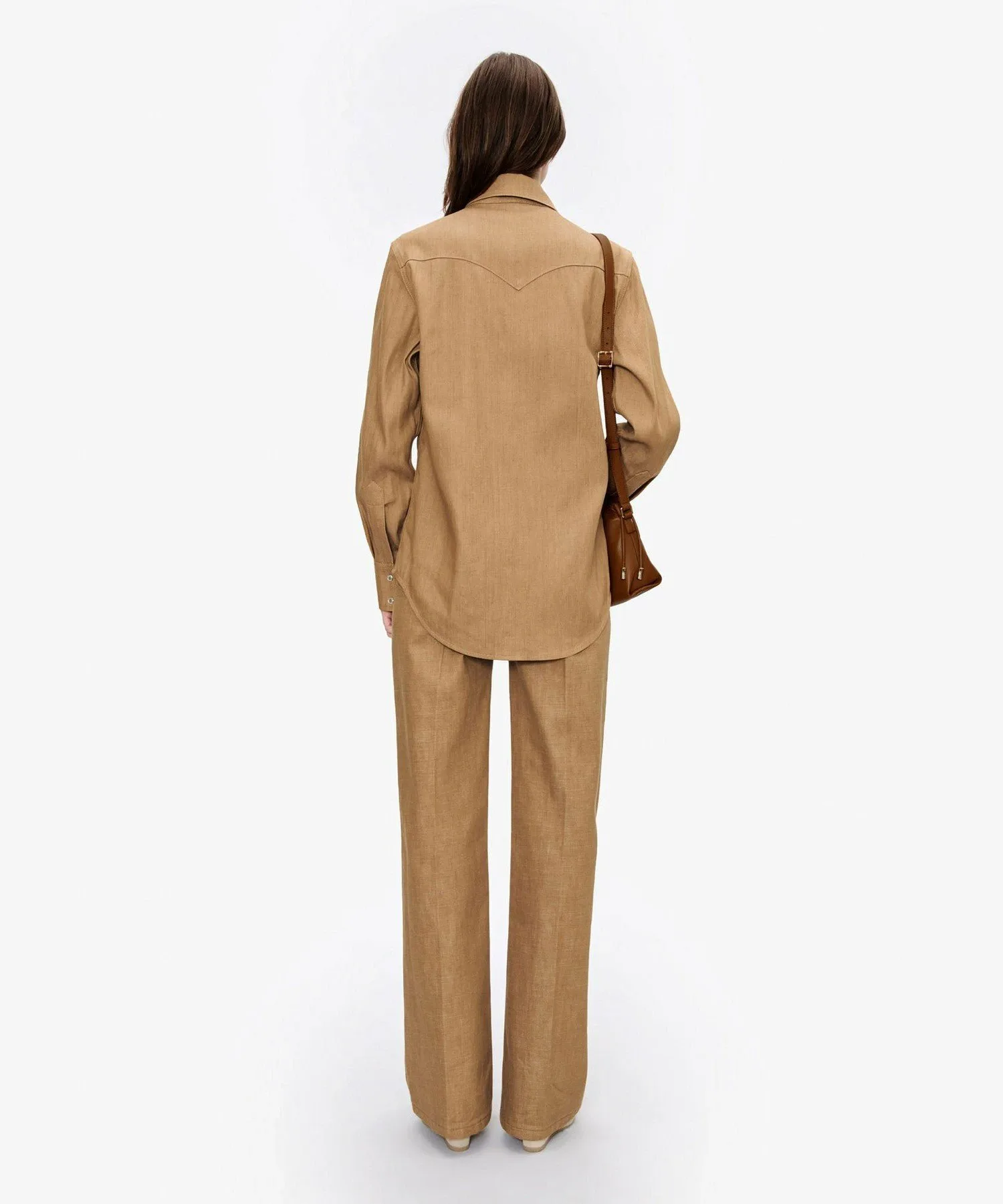 Рубашка из японского денима бордового цвета.