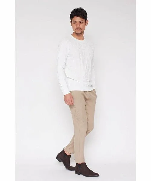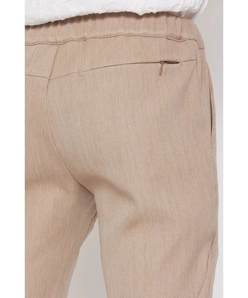 Легкие брюки из меланжевого материала двойного плетения.