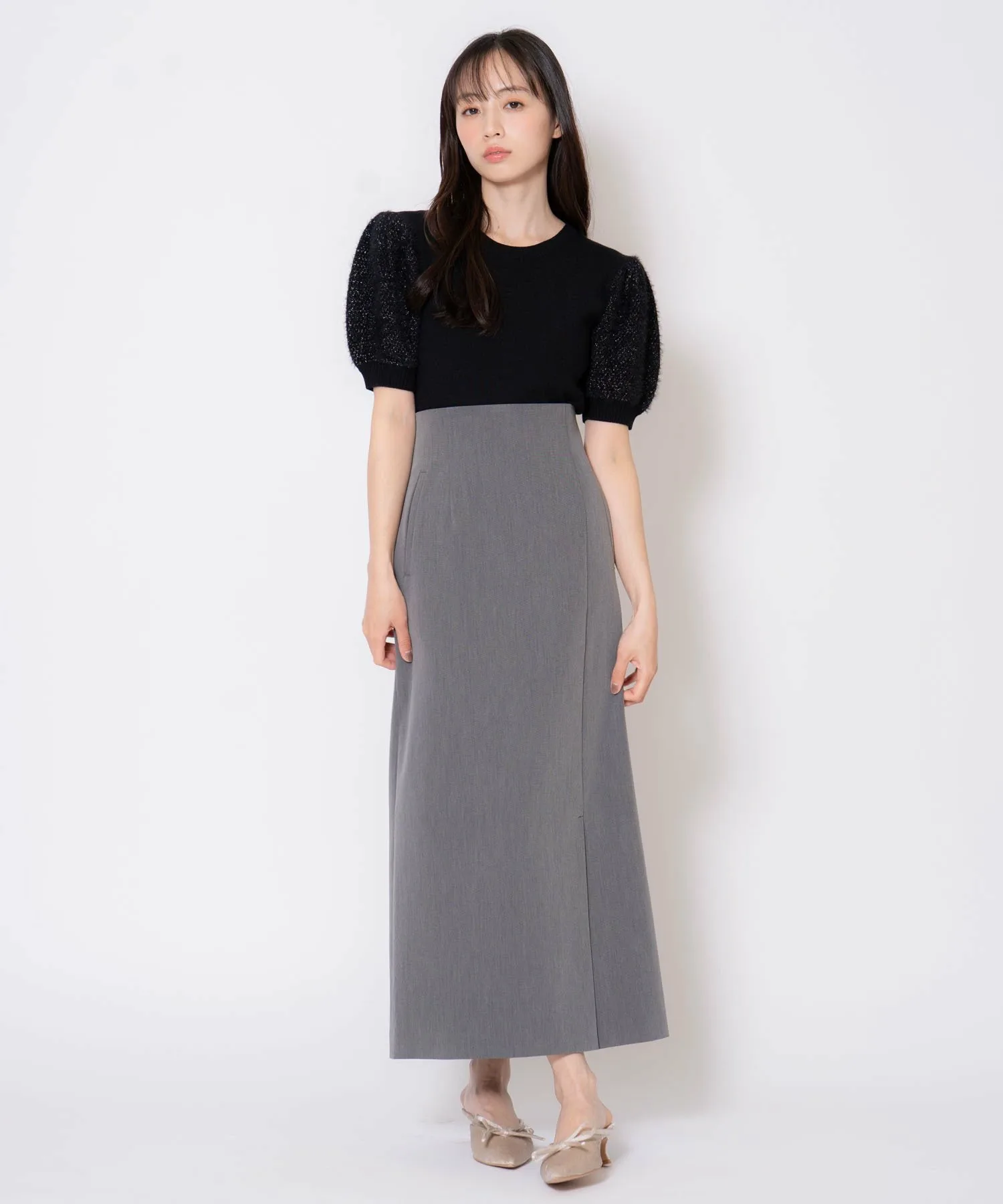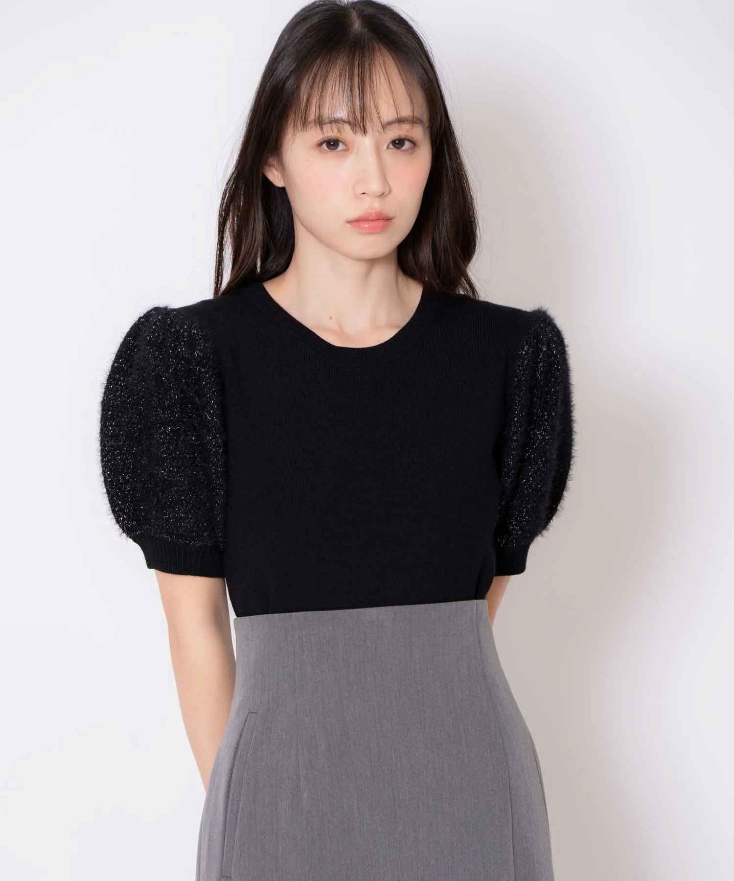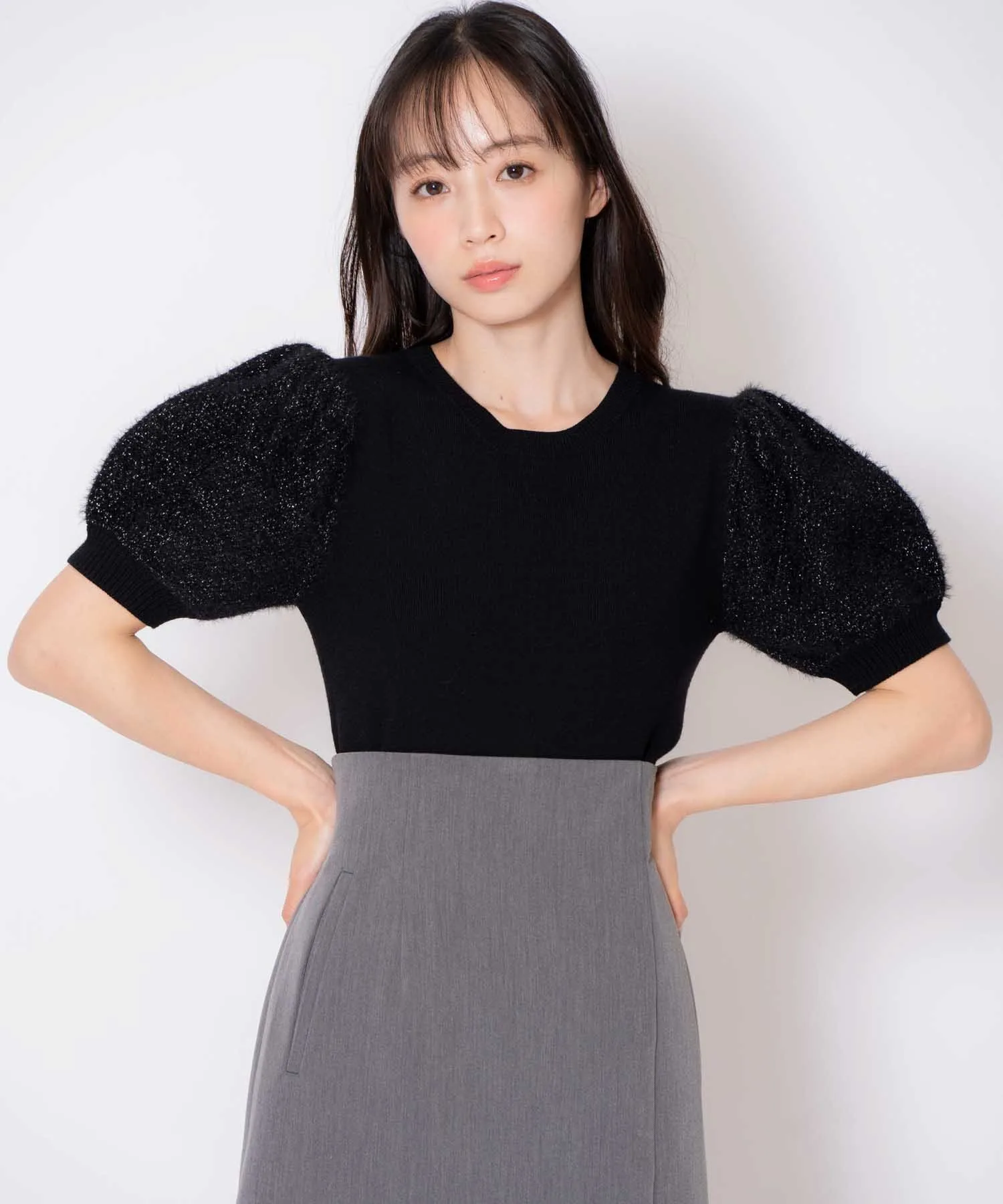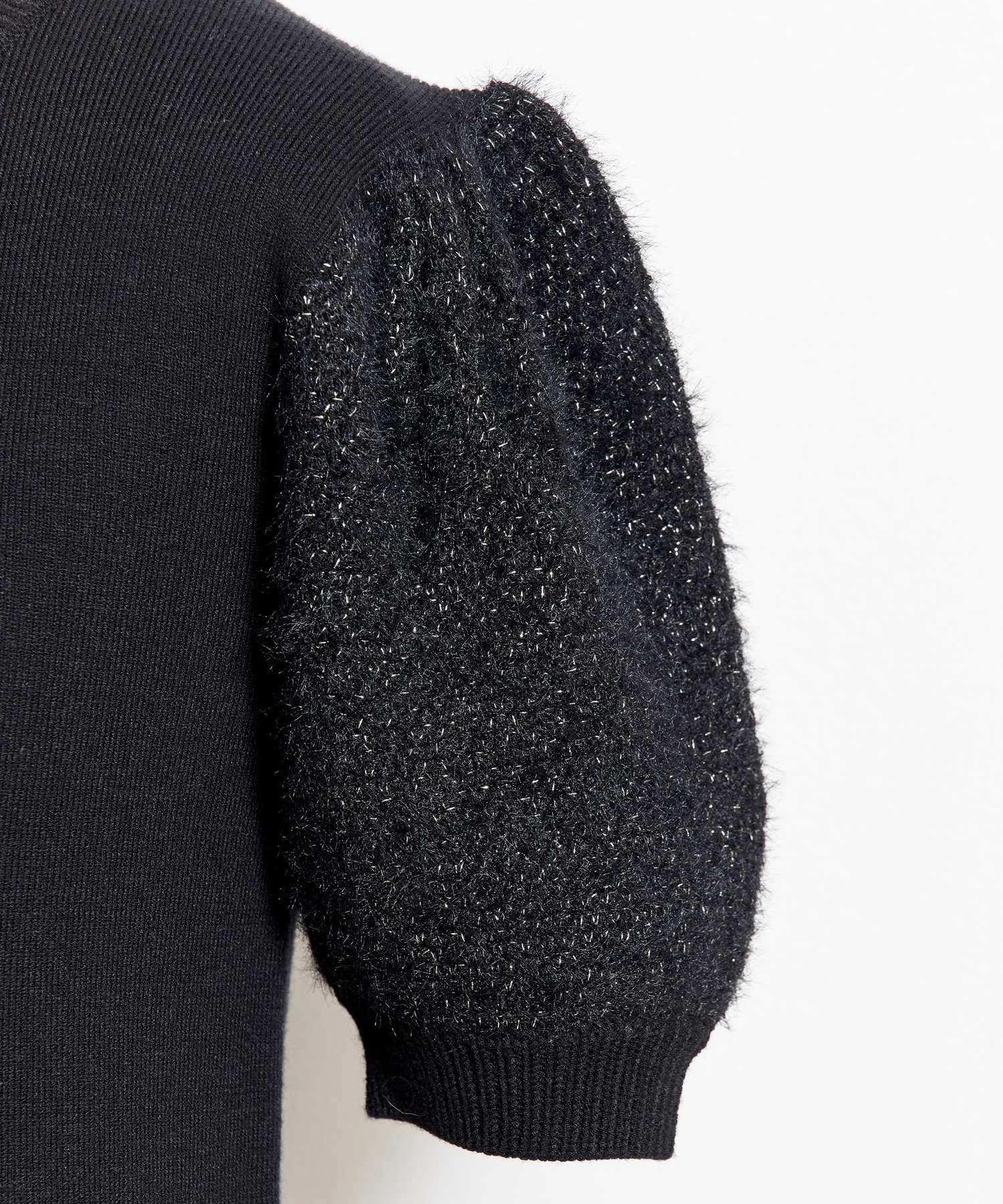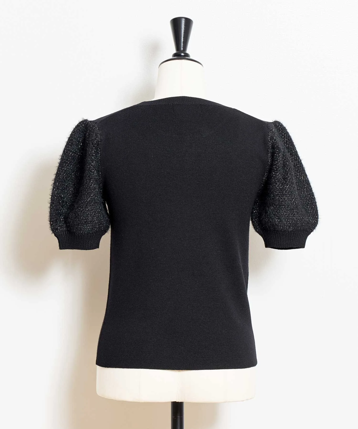 Этот трикотаж имеет слегка пышные рукава, создающие мягкий силуэт.