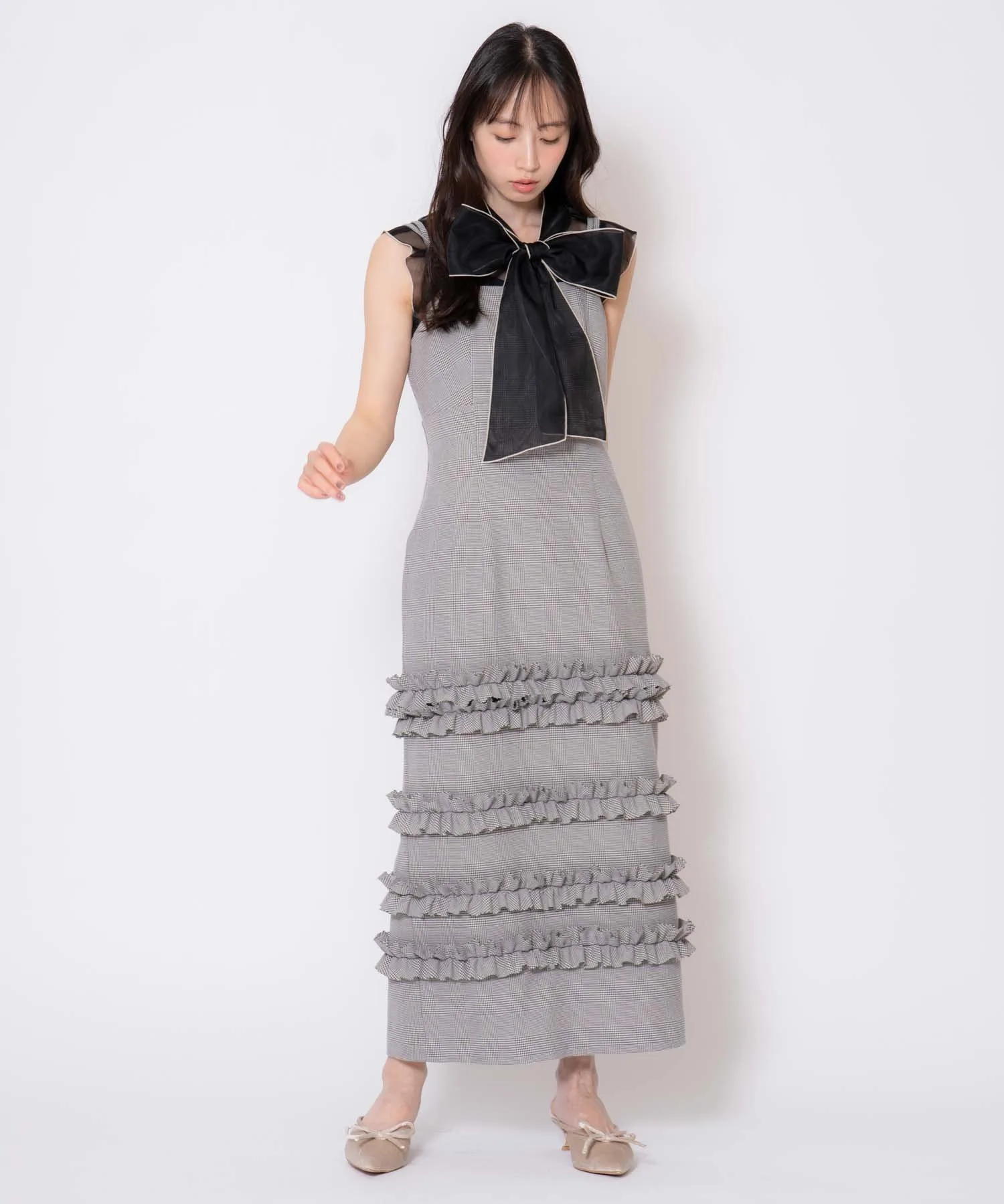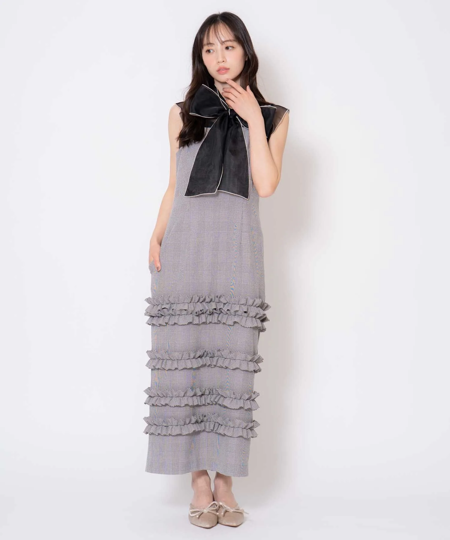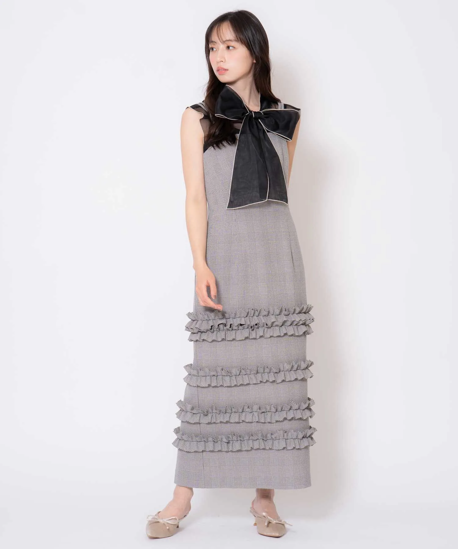 Клетчатое платье-свитер с оборками Noela, цвет Gray