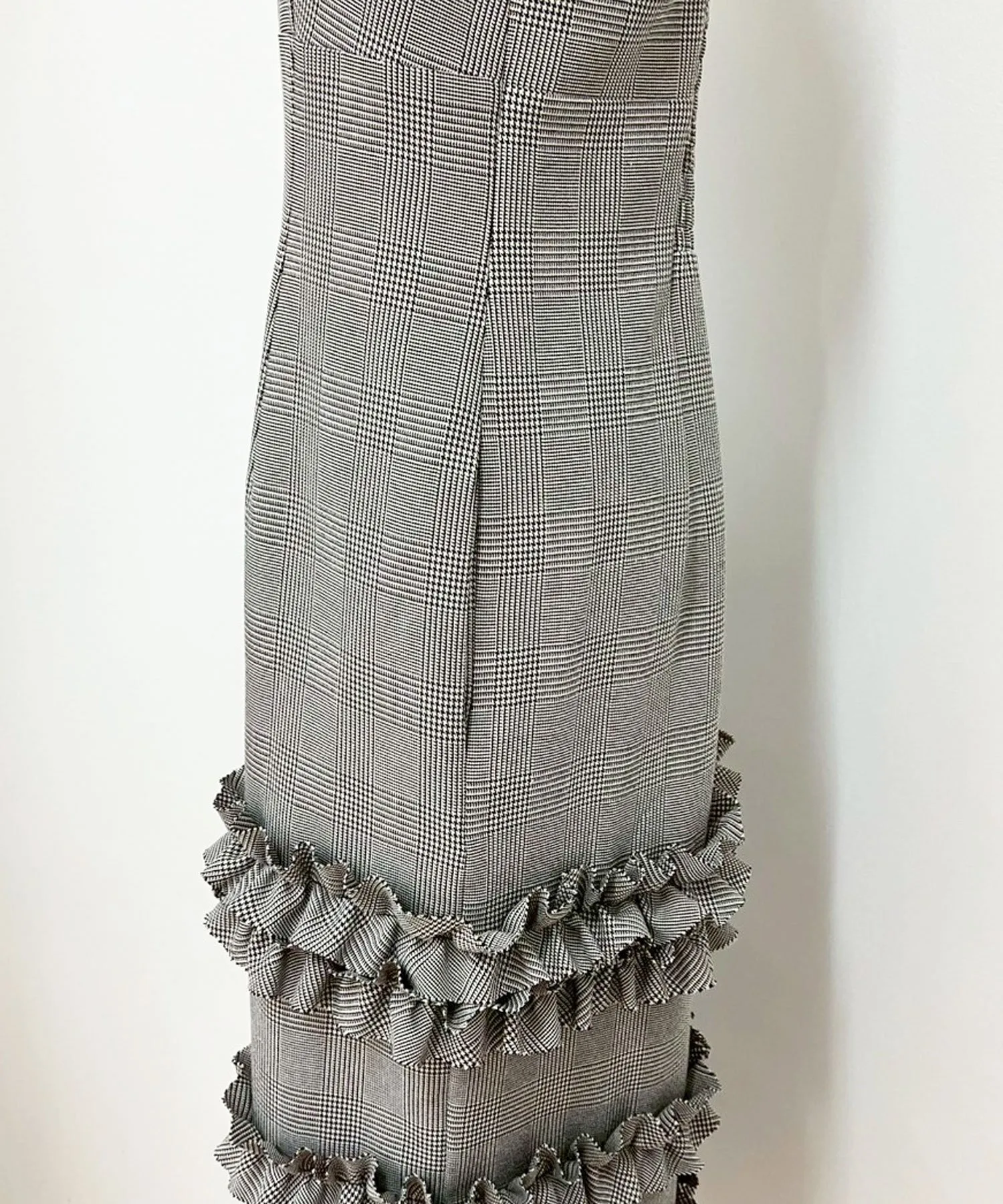 Эффектная юбка-свитер с классическим клетчатым узором и оборками.