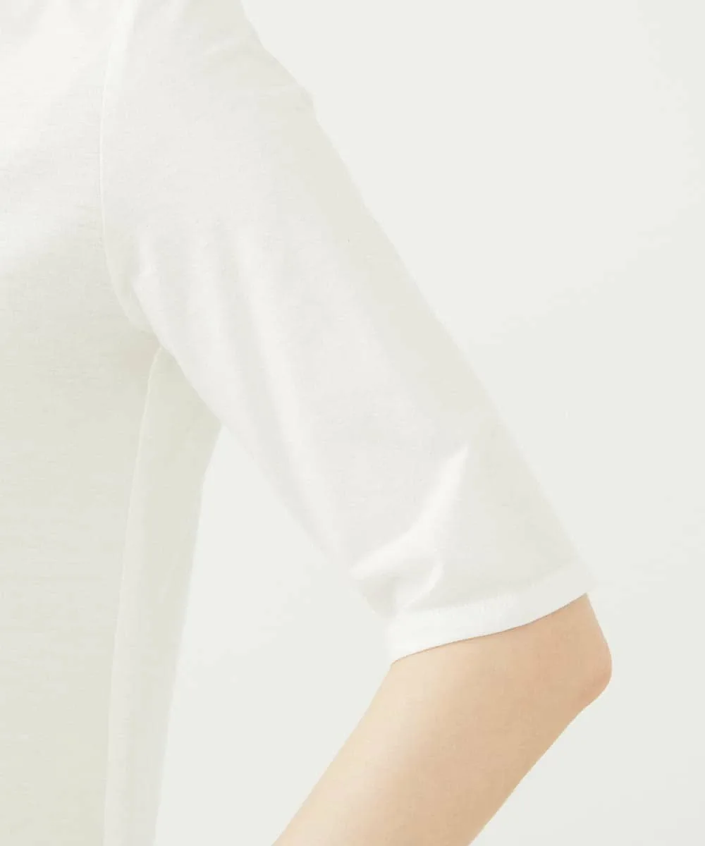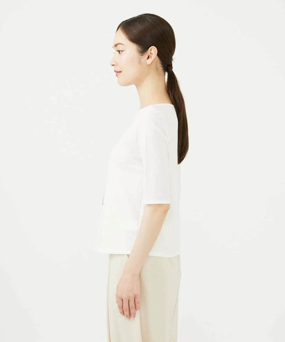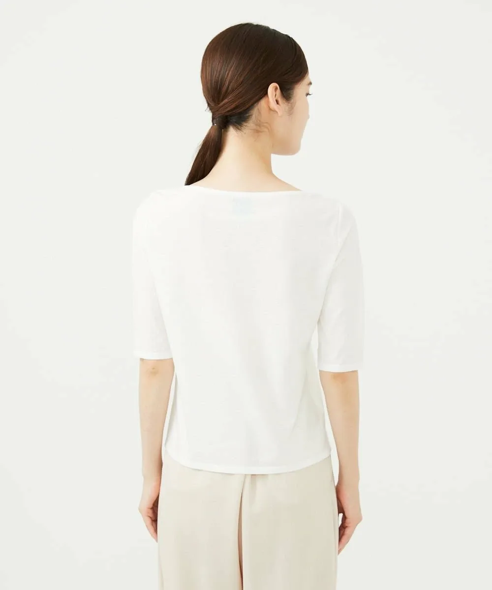 Благодаря вырезу-лодочке и рукавам три четверти этот топ, сшитый по индивидуальному заказу, не выглядит слишком повседневным.