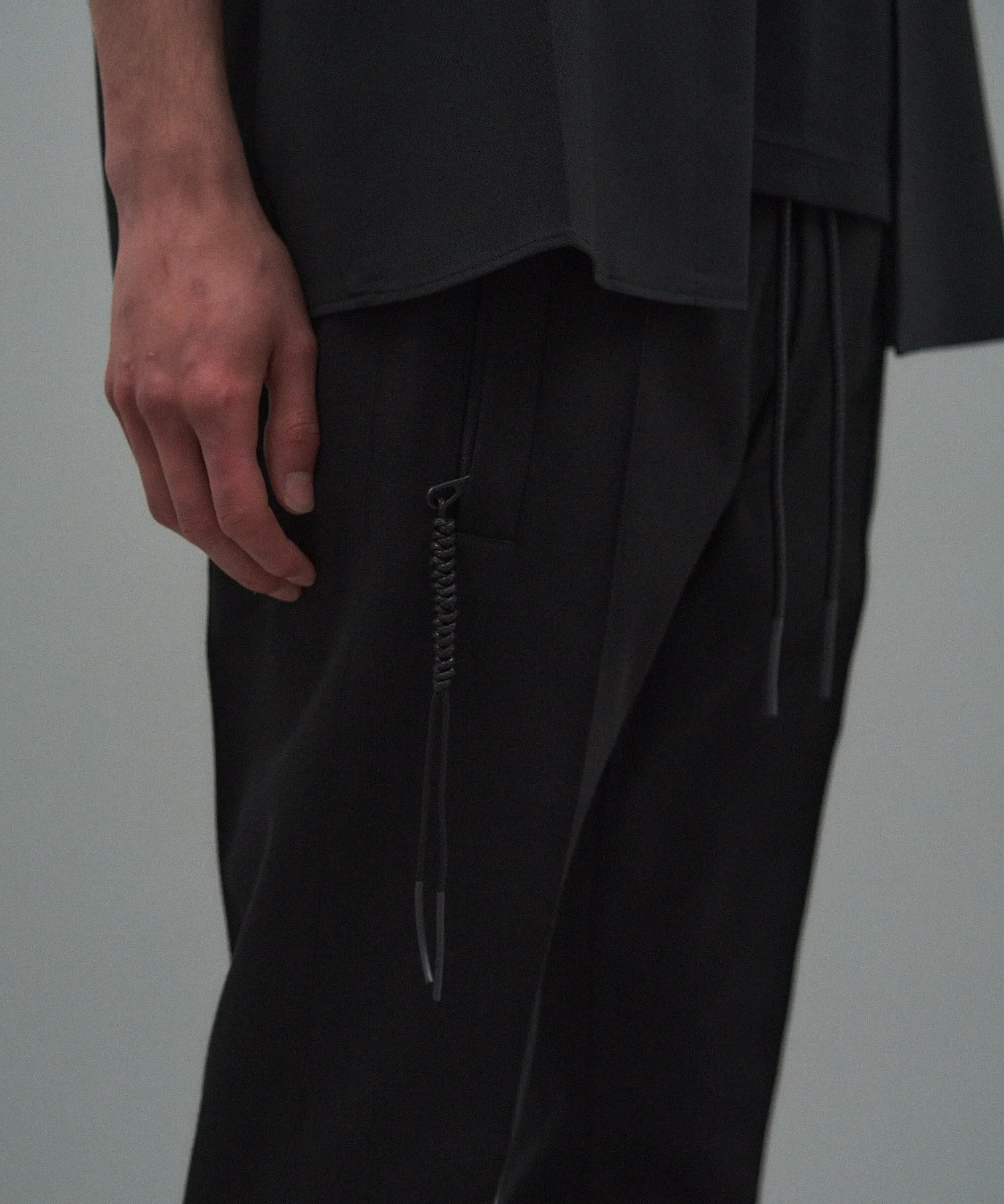 Дизайн включает в себя пояс с узором под змеиную кожу и застежку-молнию, сплетенную из того же материала, что и ткань, напоминающую свернутую змею.