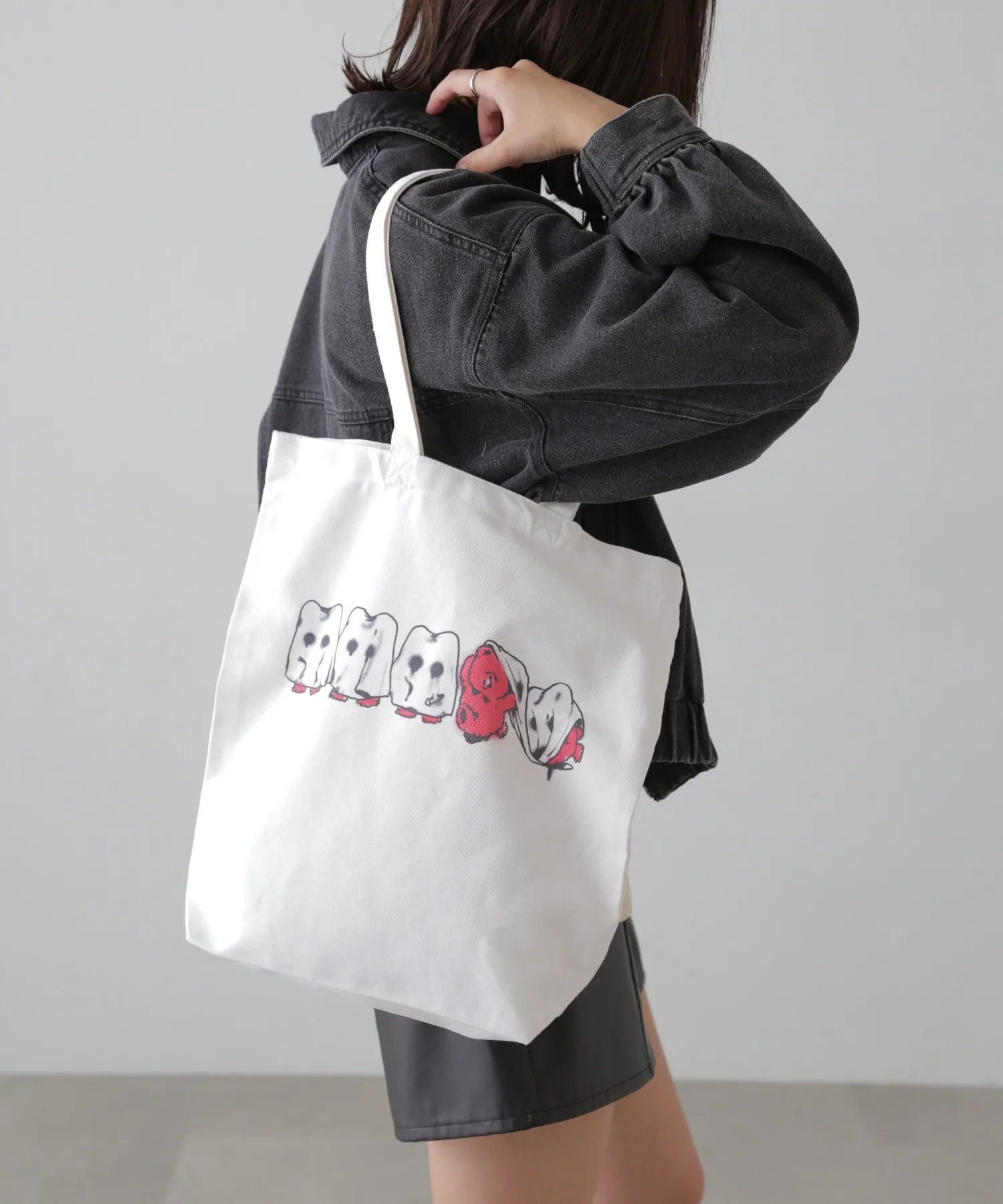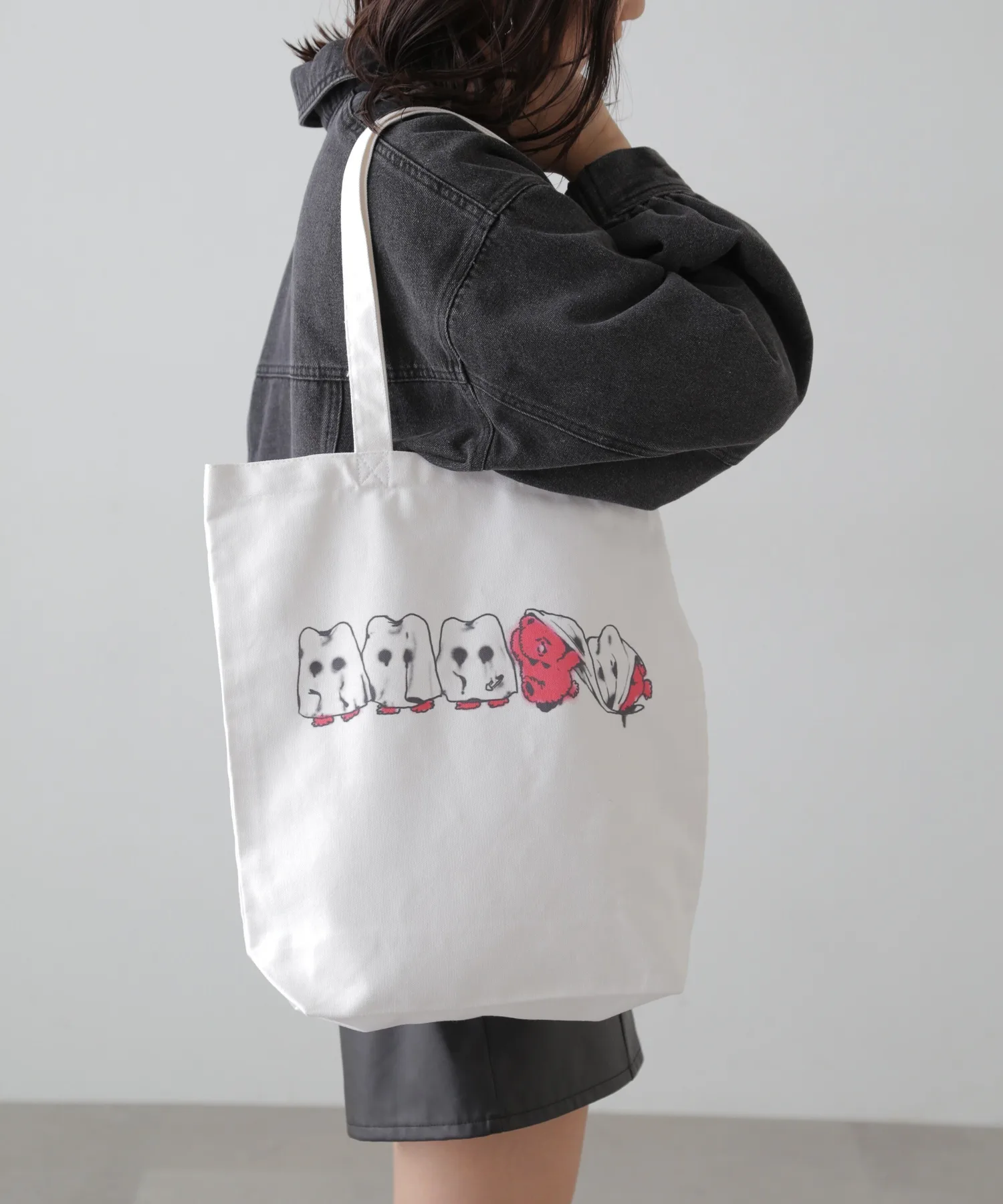 Это серия, созданная по специальному заказу совместно с иллюстратором Фурукадо. Эта сумка-шоппер "Кумабаке" украшена принтом с изображением медведя, созданным Фурукадо.