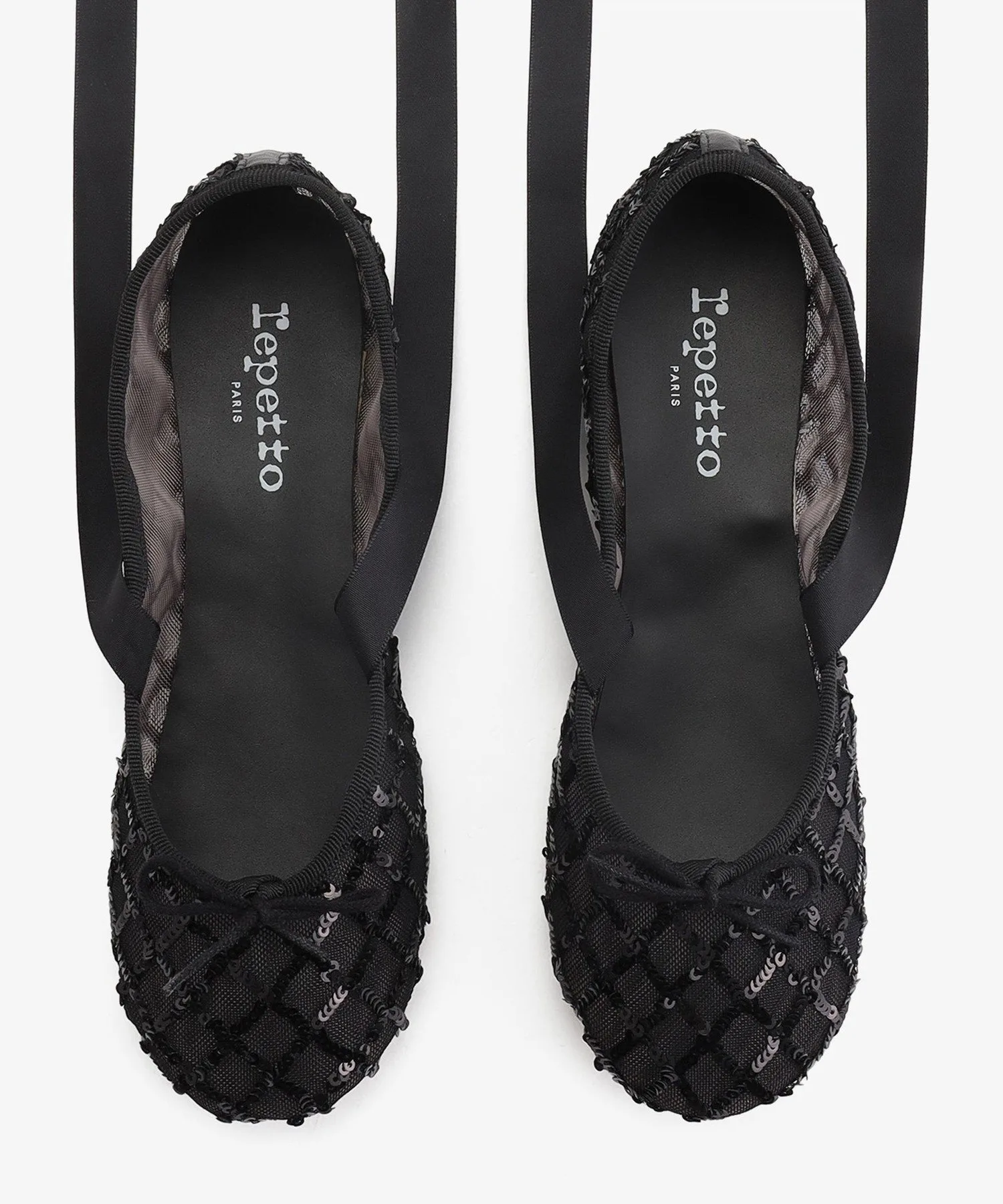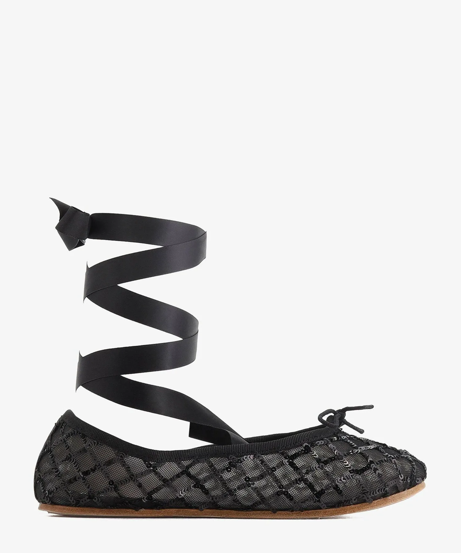 Эти балетки украшены атласными лентами, которые придают вашим ногам нотку гламура. Мелкие пайетки расположены в виде сетки, что придает им городской вид. Этот аутентичный дизайн воплощает дух балерины.