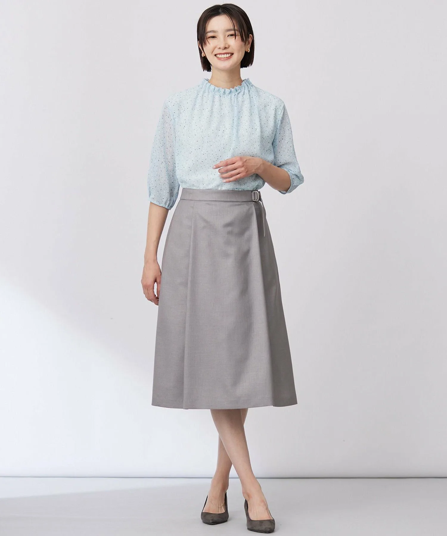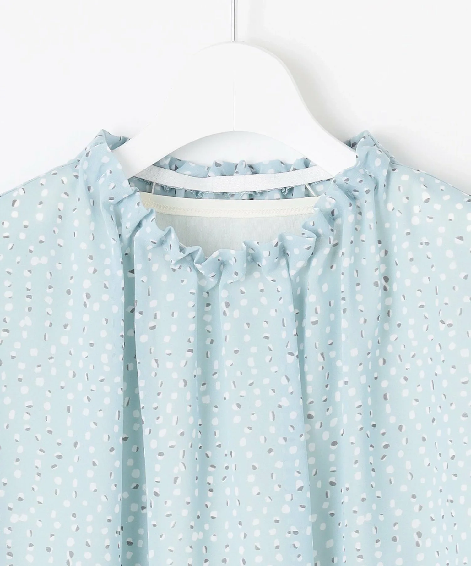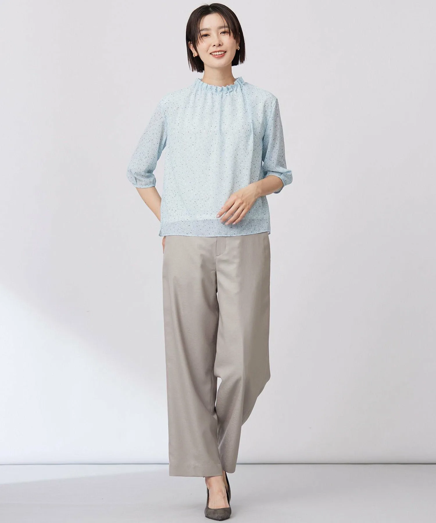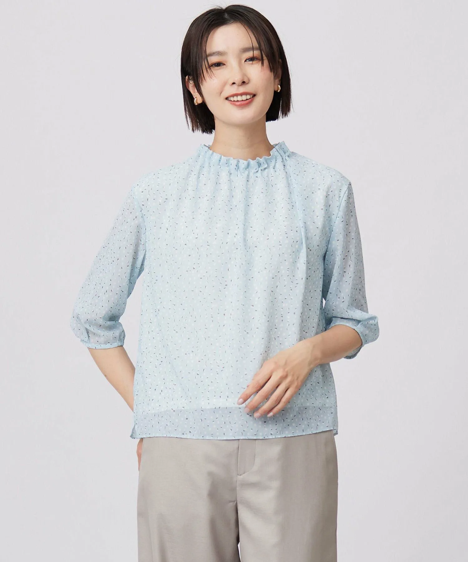 Дизайн: Пуловер с вырезом-бутылкой и складками на горловине. Верхняя ткань тканая, а основная часть выполнена из двойного трикотажа, поэтому его можно носить, не опасаясь просвечивания. Гладкая ткань создает ощущение свежести и привлекает внимание. Сочетайте его с простыми брюками или юбкой для изысканного и освежающего весеннего образа.