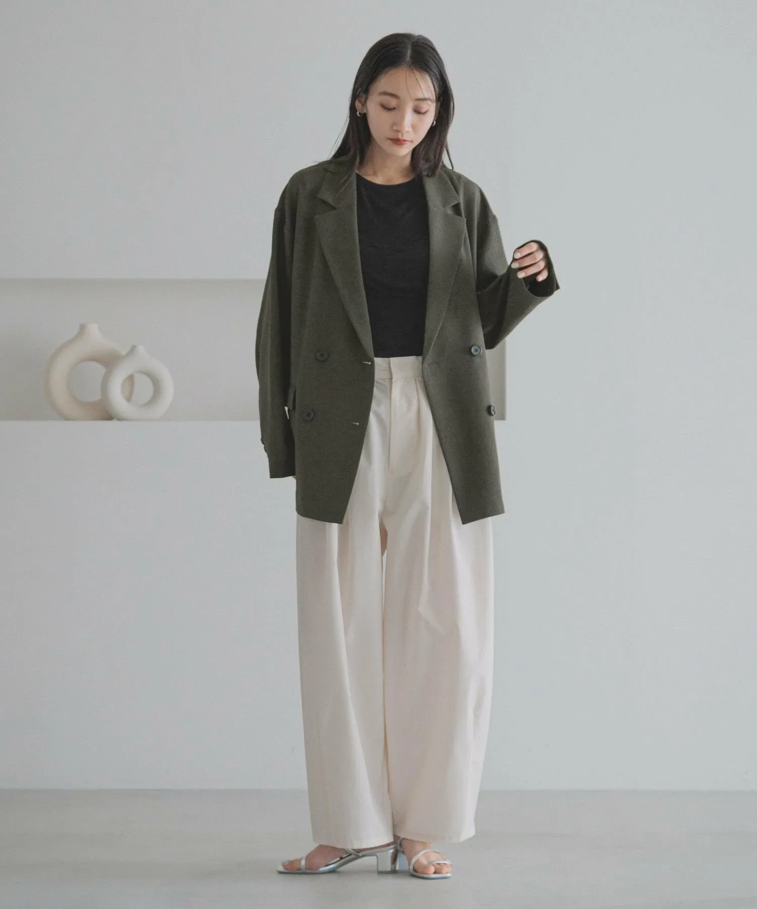 Компактный силуэт идеально подходит для сочетания с объемными широкими брюками или брюками-коконами.