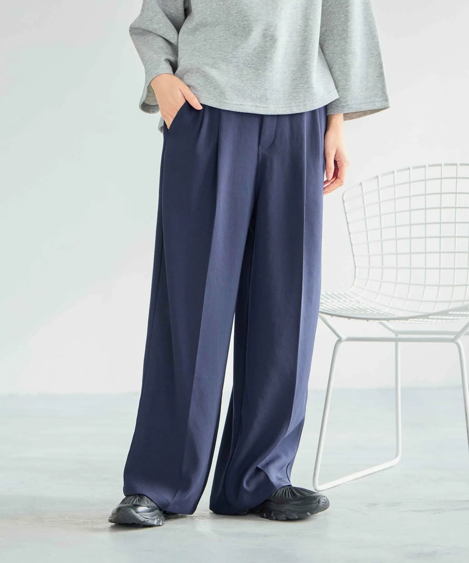 Слегка широкий силуэт с двумя складками, свободный крой, эластичная спинка и внутренний шнурок для регулировки.